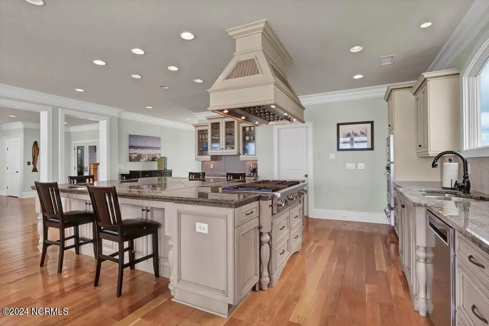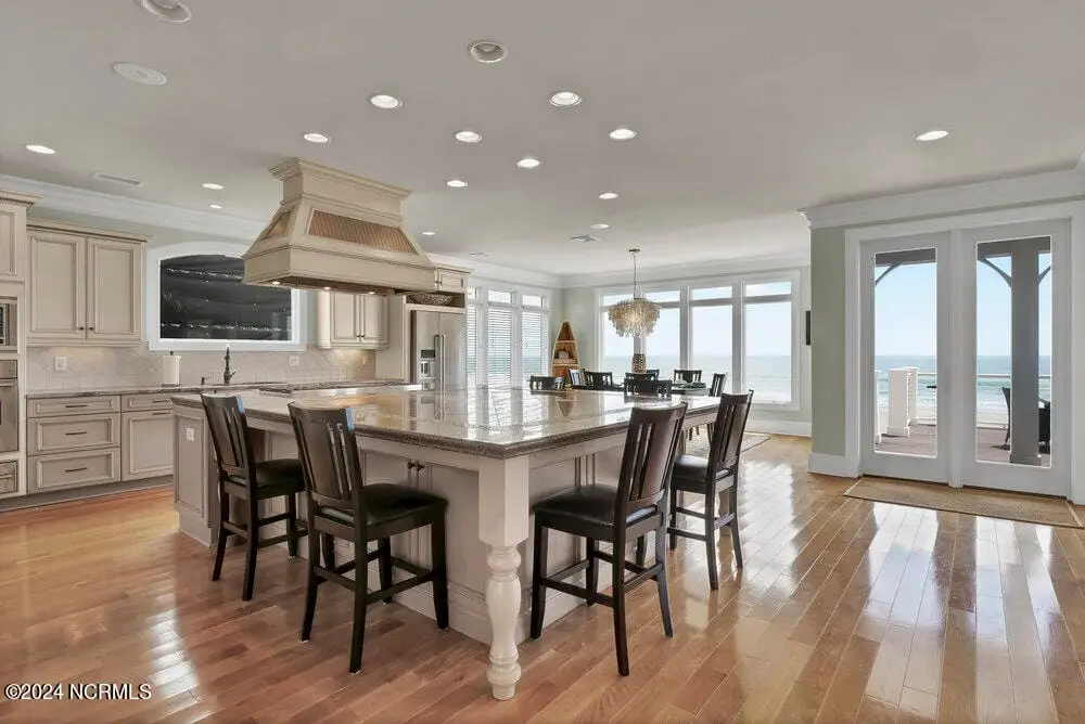 Located on the south end of Figure Eight Island, this stunning 5-bedroom, 4.5-bathroom home offers breathtaking views from every room. With its expansive windows, tall ceilings and spacious layout, you'll enjoy panoramic views of the ocean throughout. The gourmet kitchen features custom-built cabinetry, Viking appliances, and sleek granite countertops, perfect for preparing meals while soaking in the views. The luxurious primary suite offers its own private balcony, sitting area, and uninterrupted ocean views. With four garages, an elevator for easy access to all levels, and being offered fully furnished, this home is the epitome of coastal living. Experience the beauty of island life in a home that blends comfort, luxury, and unparalleled oceanfront views. Additionally, All hardwood floors recently refinished and a yacht club warrant is available, adding to the amenities of this exceptional property.