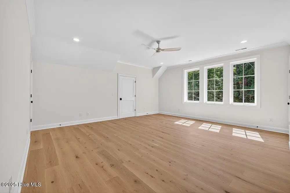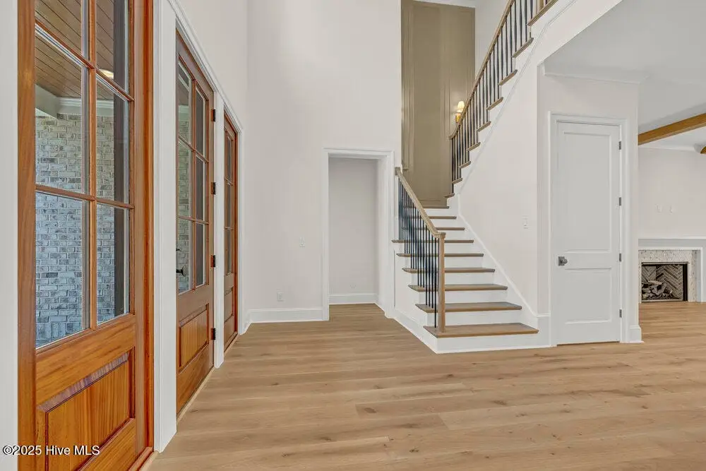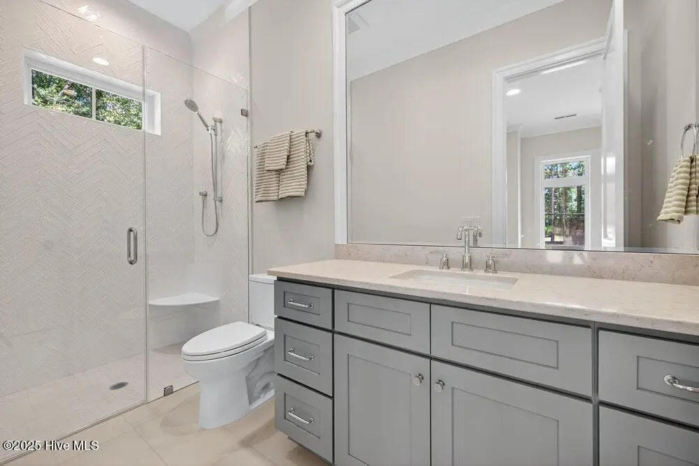 Welcome to this stunning 5-bedroom, 4.5-bathroom home, perfectly situated on a private, oversized lot spanning more than half an acre. Crafted with exceptional attention to detail, this custom home blends timeless elegance with modern functionality. From the mahogany front door to the elegant casement windows, every element reflects thoughtful design and quality craftsmanship. At the heart of the home lies a chef's kitchen featuring a 48'' gas range, wall oven, built-in refrigerator, and a generous island, ideal for both everyday living and entertaining. A stylish wet bar connects the kitchen to the dining area, creating a seamless flow for hosting. The open-concept layout offers bright, inviting living spaces, while a large screened porch overlooks the expansive backyard. On the main level, you'll find a private guest bedroom with a full en-suite bathroom, along with a spacious primary suite featuring a custom-designed closet and a luxurious bath retreat. Upstairs, discover three additional bedrooms, two full bathrooms, and a large bonus space, perfect for a media room, playroom, or home office. Additional highlights include a 3-car garage with two separate entryways, offering ample space for storage and convenience.