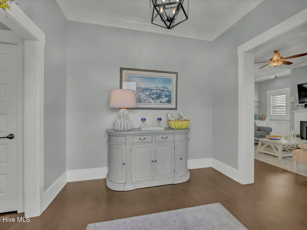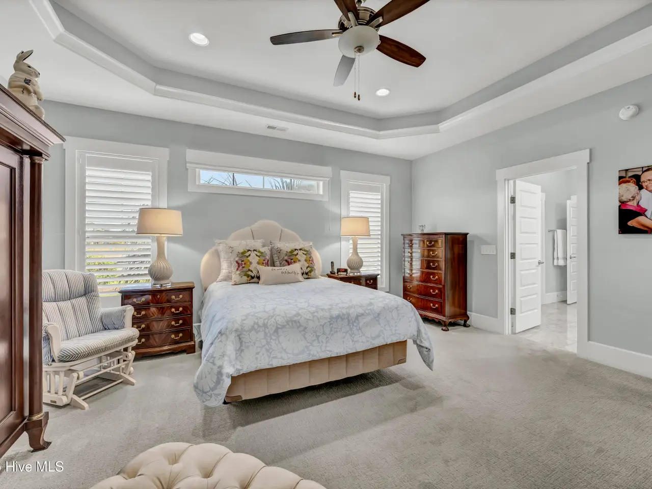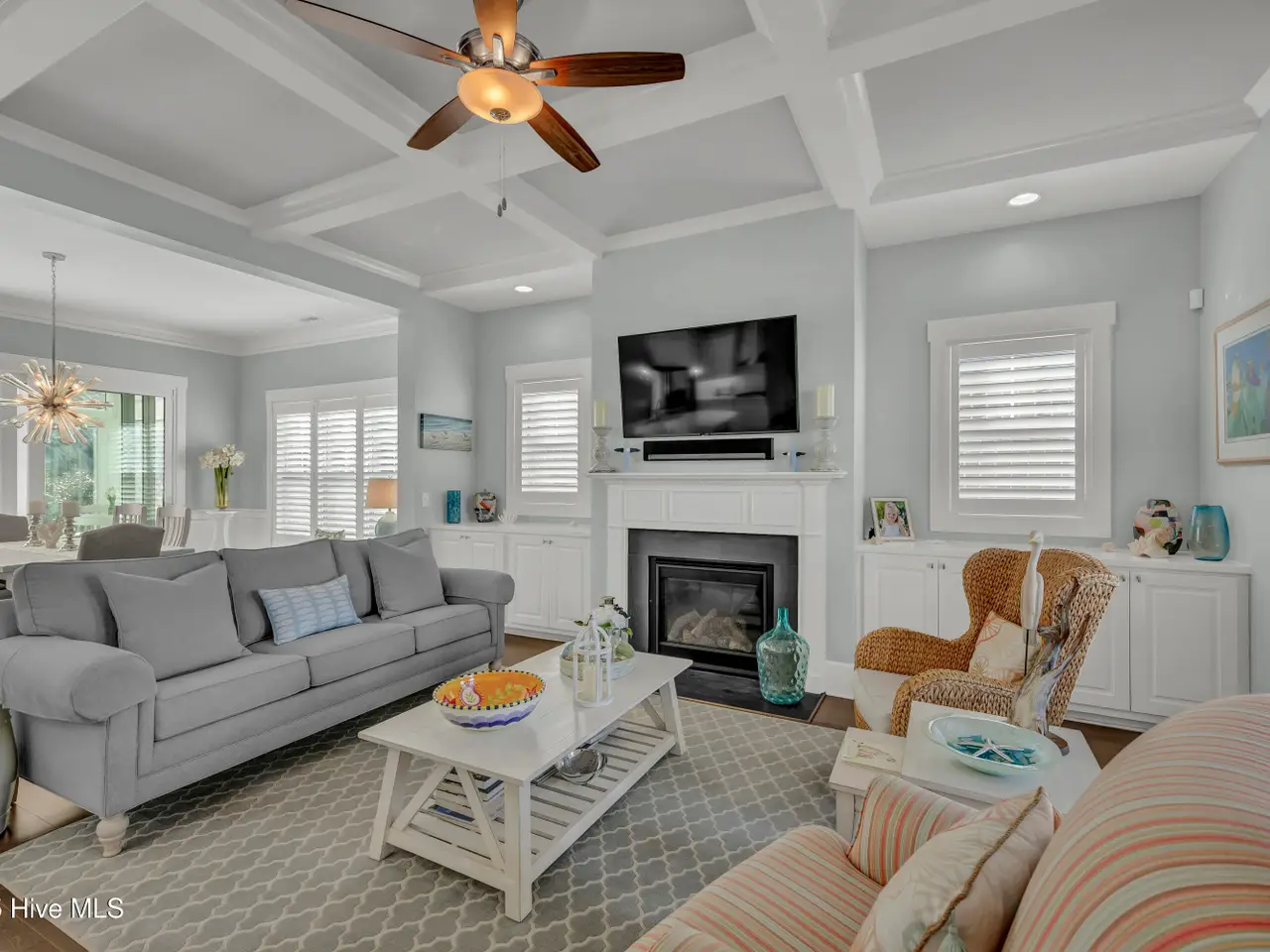 Welcome to a Southern Coastal Luxury home loaded with upgrades!! Located in the premier waterfront community of Helms Port, a family neighborhood with the finest amenities including a spacious clubhouse,a luxurious pool overlooking breathtaking views of the marina and beyond. Enjoy a white sandy beach to launch your kayak or paddle board and then store it afterwards. Here comes the sun, in this light and airy spacious home with 10 ft. ceilings, open floorplan with a beautiful sunroom overlooking an outdoor oasis of fun. Featuring a flagstone patio with a custom stone fireplace, gas grill, TV and outdoor shower makes for memorable family and friend time. The beautifully landscaped yard is fenced in and provides enough space for a future pool. This home is ideal with the primary suite downstairs and 2 bedrooms upstairs with large great room providing space for the children. Then, for guests, there is a 4th bedroom located discreetly over the garage with ensuite bath and separate thermostat. Upgrades are abounding with Plantation shutters throughout, premier sheer shades in the sun room, coffered ceiling, built ins and gas fireplace in living room. The kitchen is well appointed with a spacious island, double ovens, gas cooktop, reverse osmosis, and a separate beverage fridge. A dedicated office/study is tucked away from the rest of the home, providing a quite space for work. If that isn't enough, there is a whole house generator, abundant storage in the walk in attic, natural gas. This home has been meticulously maintained and the upstairs HVAC was replaced this year. Come enjoy this peaceful paradise with all the extras!