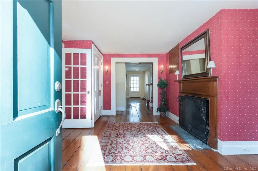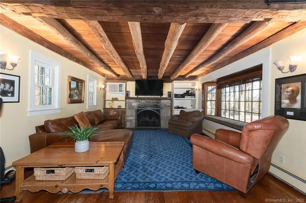 Step Back in Time with the ultimate charm of yesteryear blended with the modern comforts of today - The Samuel Middlebrook House, circa 1830. This beautifully preserved 5-bedroom antique residence offers timeless character and plenty of charm. Rich in period detail, the home features wide plank wood floors, exposed beams, original fireplaces with hand-carved mantels, and a charming bee-hive oven-classic hallmarks of 19th-century craftsmanship. A welcoming front foyer with fireplace sets the tone, while French doors from the cozy den open to a private flagstone terrace-ideal for relaxing or entertaining. The spacious kitchen is complemented by a sunny seating area plus large laundry/mudroom, adding everyday functionality. A true highlight is the attached authentic barn-style family room with fireplace, offering rustic warmth and extra room to gather. Upstairs there's a spacious primary en-suite bedroom plus four more bedrooms. The partially finished walk-up attic provides more bonus space for work, play, or storage. Set on a picturesque 2-acre lot framed by stone walls, a white picket gate, and possible pool sites; the home offers over 4,300 square feet of living space-an impressive scale for an antique. With a coveted location near town schools and train, this unique property blends historic charm with everyday convenience. Not your typical home-this one-of-a-kind treasure is waiting to welcome its next chapter. See attached information from the Wilton Historical Society.