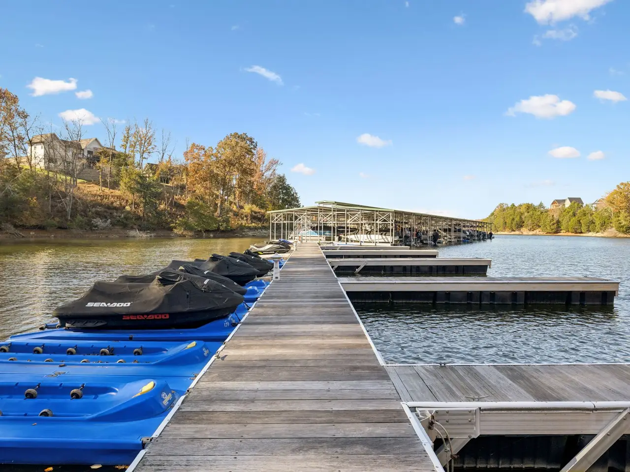 Lake Luxury Awaits in Fanning Bend! Discover the pinnacle of Tims Ford Lake living in this stunning, maintained 4 bedroom, 3 bath home located on one of the largest lots in Fanning Bend Subdivision. The heart of this home is the exceptional outdoor living space. Enjoy the screened back porch, unwinding in the hot tub, or host friends around the custom backyard firepit. Step inside to an open-concept floor plan designed for effortless entertaining. The kitchen boasts with an island, quartz countertops, and pantry. Enjoy cozy nights by the gas log fireplace in the spacious living room. One bedroom & full bath located on the main level. Upstairs the primary suite features an extra-large, spa-like tile shower. Storage is no longer a concern! In addition to the attached two car garage, this property features an oversized detached 2-car garage heated & cooled plus a separate water heater & epoxy floor. The property has a full irrigation system. A deeded boat slip with lift is included. This is more than a home; it's your lakeside sanctuary. Don't miss this rare opportunity for a full featured Tims Ford Lake Property.