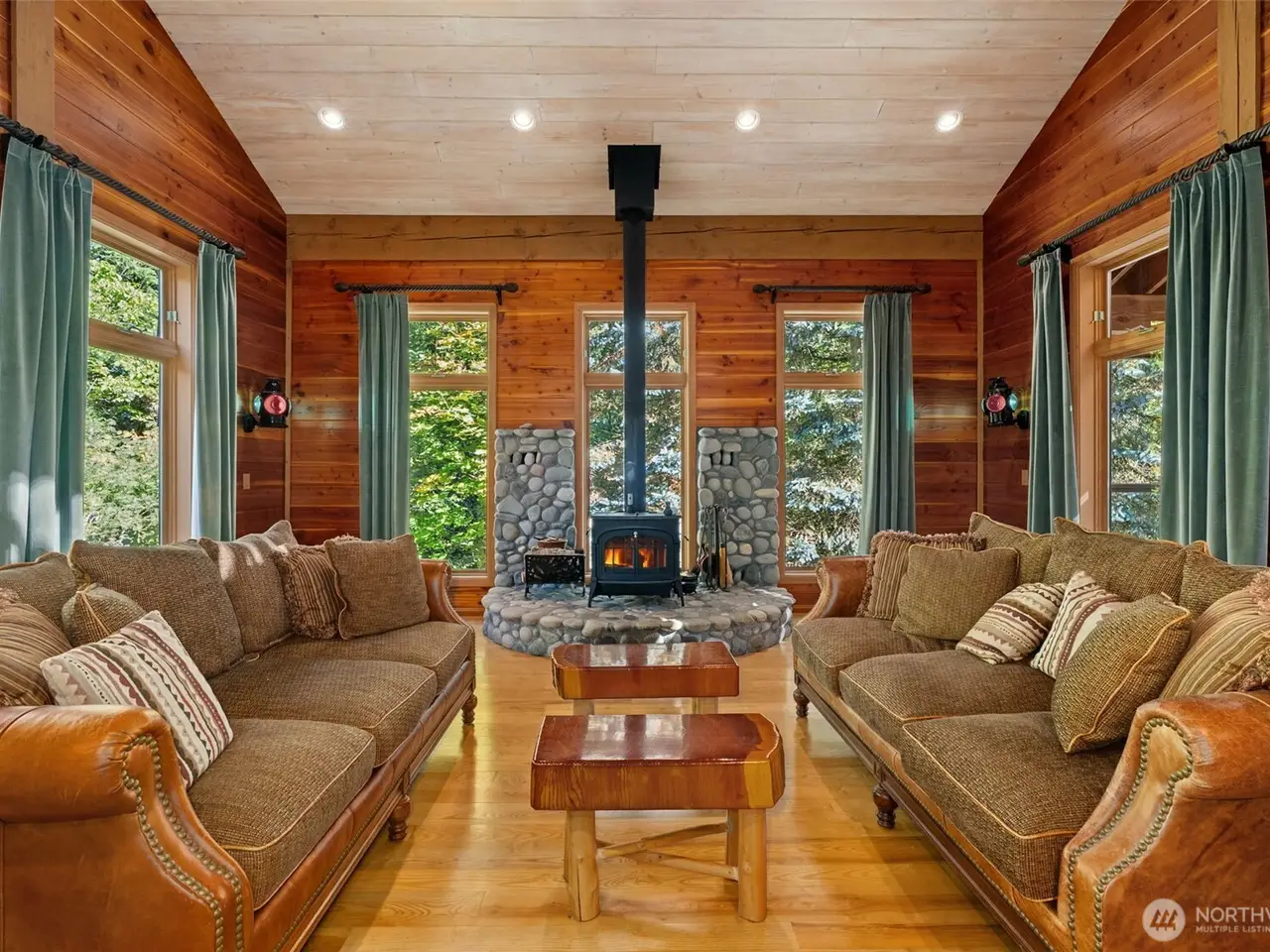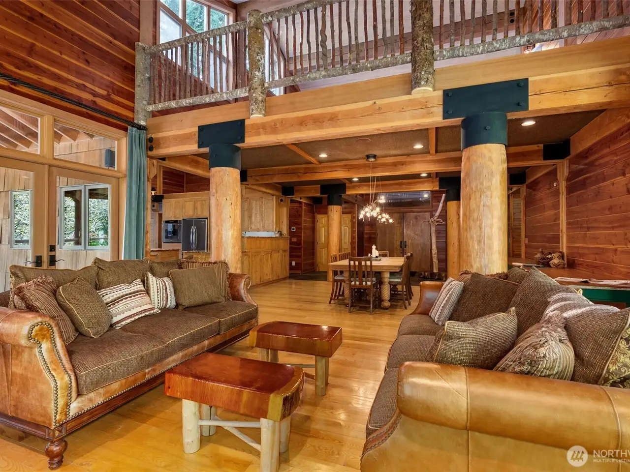 Experience luxury & tranquility in this stunning custom home just shy of 7000 sf w/exquisite old growth cedar & curly maple finishes. Main level features a dream kitchen w/dining area, private office, cozy library & primary suite w/spa inspired bathroom. Upper loft offers additional primary suite or extra living area. Lower level boasts an impressive workshop & expansive guest quarters, including a full kitchen & root cellar. On 86 breathtaking acres of timberland w/over $1M in marketable timber, the property has kept grounds, multiple outbuildings & a 5 acre hayfield. Enjoy a lg. orchard, serene ponds, abundant wildlife, & the ultimate peace & quiet that only a secluded estate can provide. This is more than a home, it's a private retreat.
