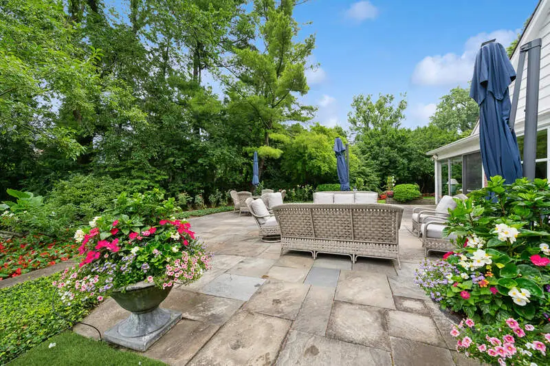 This incredible & expansive 4 bedroom, 3.2 bathroom home is situated on .654 acres of spectacular property in an idyllic & private location. Surrounded by mature trees and beautiful foliage, the fantastic gardens & outdoor area boast three bluestone patios. The home brings the outdoors inside with oversized windows throughout the home. When you walk into the home, you are welcomed in the large foyer and move into the 24 x 21 living room with marble surround fireplace that is sun-filled and bright. This leads you to the 22 x 14 enclosed porch area where you can bask in the sun with walls of windows & surrounded by private, beautiful and mature landscaping. This home truly brings the outdoors inside to you! The dining room is perfect for hosting events and leads to the 26 x 18 white eat-in kitchen with an island and double ovens that is very spacious for cooking and entertaining. The kitchen is conveniently located next to the first-floor laundry room. Down the hall from the kitchen is a huge wood beamed ceiling family room with patio doors that open to the outside, a fireplace with granite surround and built-in bookshelves where the media resides. The octagonal office with an oversized vaulted ceiling and is flanked with floor to ceiling windows and beautiful built-in bookshelves. Working from home has never been more relaxing in this serene setting. Take the steps off the family room up to the recreation room where you can play pool, games or watch tv in this amazing playroom area. The functionality of having a large first floor primary suite, with attached bathroom, closets galore, near your own outdoor oasis is spectacular. You are in your own bed and breakfast when sleeping in the first-floor primary suite retreat surrounded by gardens and a bluestone walkway. The second floor has three additional bedrooms and two full bathrooms. With an attached 3 car garage, circular driveway on the property and parking for guests in front of the home, you are ready to host any event at this incredible home. The lower level has storage galore and a wine cellar. This is a very special home that has been well loved for many years on the most incredible and expansive property.