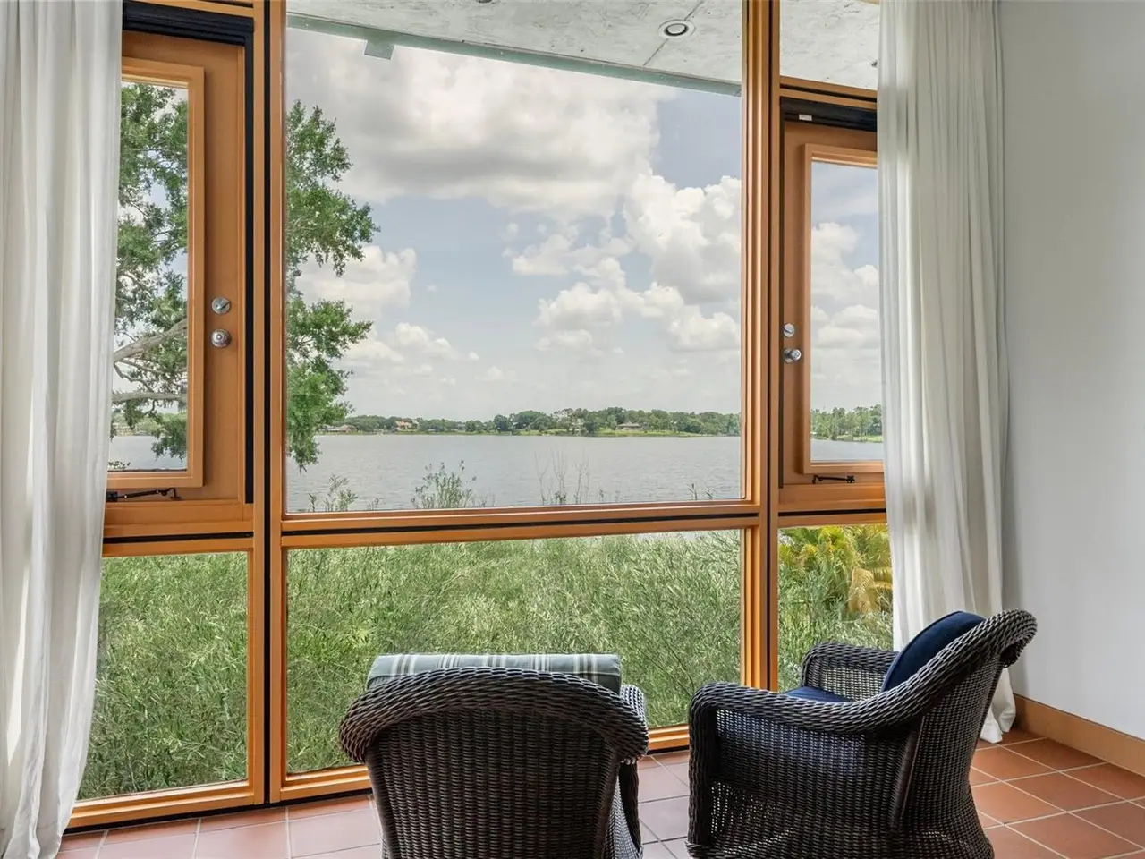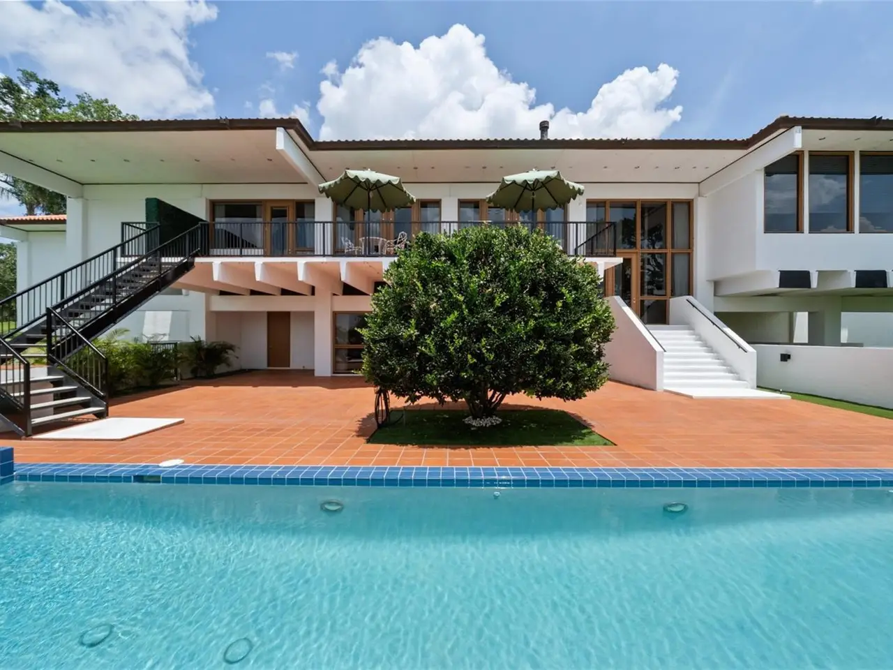 There was a time when homes were designed to last, and this is one of them. Designed by award-winning architect Gene Leedy, this south-facing lakefront residence embodies a legacy of modernism uniquely attuned to Florida's landscape and climate. As a founding voice of the Sarasota School of Architecture, Leedy's vision was ahead of its time, helping to shape a movement that left its mark on architecture around the world. Designed in 2006 for his daughter, this residence reflects decades of innovation; every detail considered, nothing spared. Step inside and you enter the mind of a true visionary, where nothing was done without purpose, and every detail was designed for modern living. From the soaring 15-foot ceilings to the graceful grain of custom woodwork, from ample storage to quietly integrated modern comforts, every detail speaks to Leedy's belief that beauty and function must coexist. Leedy's design masterfully merges indoors and out drawing Florida's natural beauty into the flow of daily life with floor-to-ceiling windows and abundant outdoor living, more than 5,700 square feet, allow light, sky, and greenery to infuse each space. Courtyards and balconies offer a sense of retreat from every main room and bedroom. Built with Gene Leedy's signature cantilevered style, the home is elevated by pre-stressed concrete beams, allowing it to float gracefully above Lake Otis.