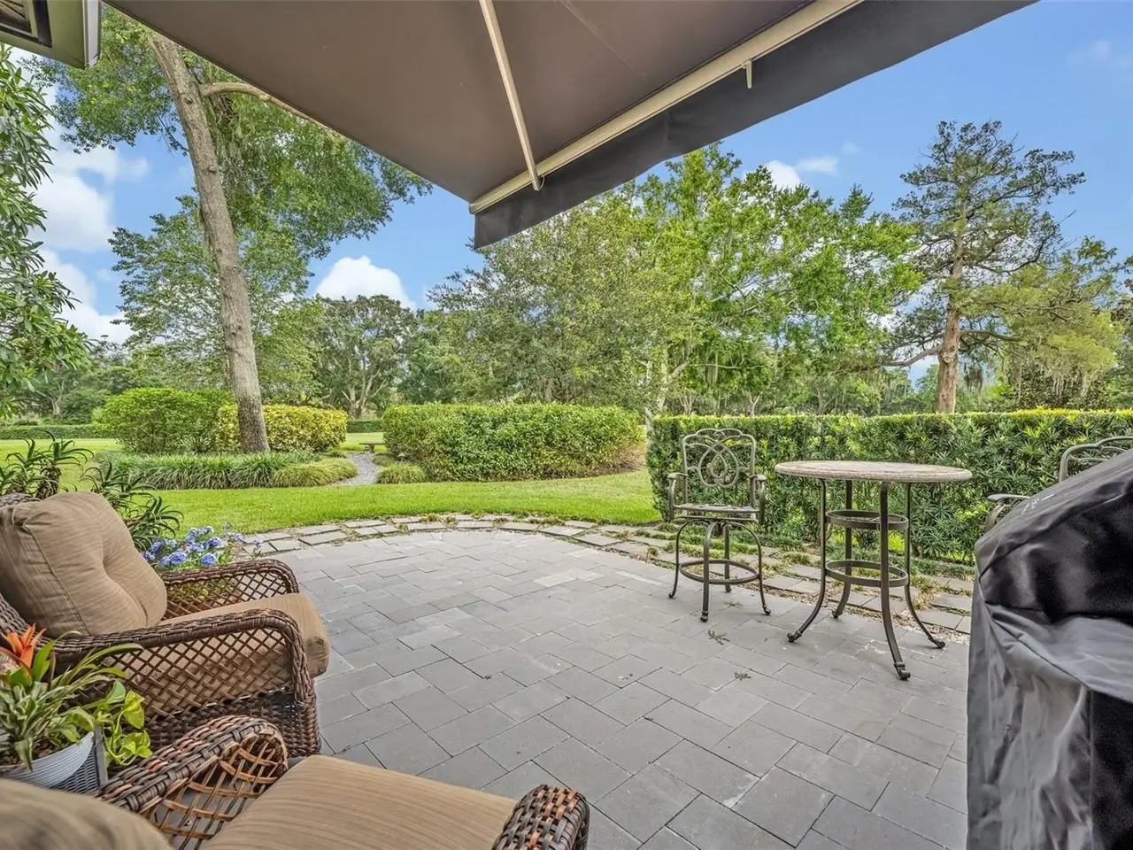 Experience timeless elegance and modern sophistication in this stunning 3 bedroom, 4 bath Mediterranean home, ideally situated on the 4th hole of the beautifully maintained Winter Park 9-hole golf course. Nestled on a 75 x 100 lot, this 3,440 sq ft residence was extensively renovated in 2017. From the moment you enter the welcoming foyer you'll notice the refined finishes and intentional design. A custom office just off the entry features built-in cabinetry, drawers, and integrated workspace solutions, including a printer and shredder, ideal for remote work or quiet study. The formal living room, anchored by a gas fireplace and flanked with custom shelving, opens up vi French doors to a side patio with sweeping views of the golf course. Entertain with ease in the gourmet kitchen, outfitted with Thermador appliances, a generous center island with cooktop, abundant cabinetry and a charming wet bar nook with wine refrigerator. The formal dining room also opens to the outdoors, with French doors leading to a screened-in patio perfect for enjoying cooler evenings. Upstairs, the serene primary suite features a private balcony overlooking the golf course, built-in closets and a spa-style bathroom with dual vanities, soaking tub, large shower and walk-in closet. A secondary bedroom offers its own en-suite bath with tub/shower combo. An attached in-law suite provides flexible living with a private entrance, family room, kitchenette, full bath and bedroom-ideal for guests, multi-generation living ore rental potential. Additional features include 10 ft ceilings, 2 car garage, 3 AC units, 2 hot water heaters ample storage space and security system. Just a short stroll or bike ride to the vibrant shops and dining of downtown Winter Park. This home offers tranquility and convenience. A rare gem in an unbeatable location!