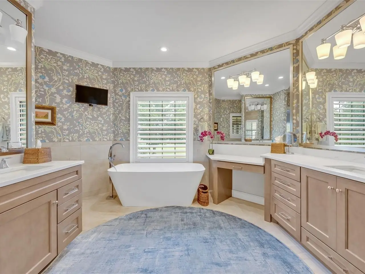 • Spa-style bathroom with dual vanities and soaking tub