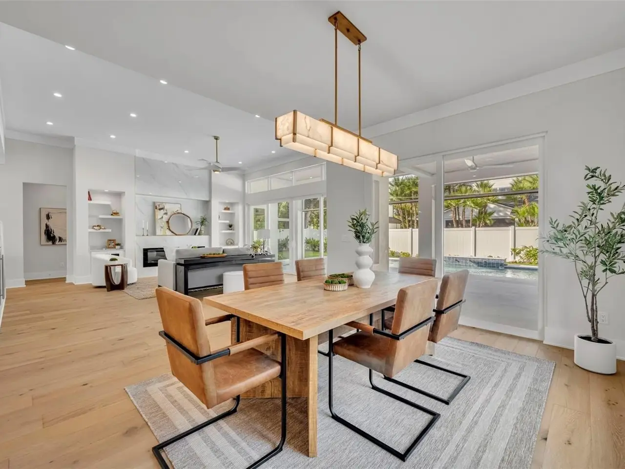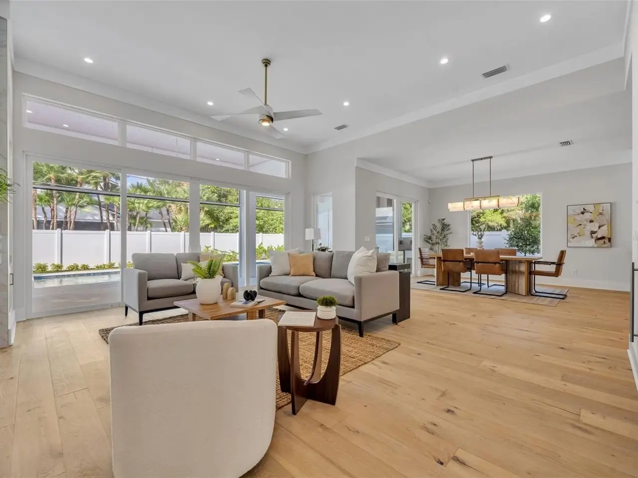 Introducing a stunning new custom home by Ellsworth Gallimore and Butler Ridge Development, ideally situated in a prime Winter Park neighborhood. This residence combines timeless elegance with modern luxury, showcasing exceptional design and craftsmanship throughout. The thoughtfully designed home features a marble front façade and professional landscaping. Inside, you’ll find an open, bright layout with high ceilings, wide-plank white oak floors, oversized picture windows, and refined crown molding. A welcoming flex space—perfect as a sitting room or den—greets you at the entry, across from another room ideal for a private office. The great room, at the center of the home, offers 12-foot ceilings, a sleek fireplace, and a full wall of sliding glass doors that open to the resort-style backyard. Designed for both entertaining and daily living, the open-concept kitchen, dining, and living areas flow seamlessly together. The chef’s kitchen impresses with a striking waterfall island, premium Thermador appliances, a dual-fuel range with a 6-burner gas cooktop, a third oven plus convection microwave, and an expansive custom pantry. A stylish mudroom and decorative laundry room complete the main level’s amenities. The primary suite on the first floor features direct access to the pool, a spa-inspired bath with a soaking tub, multi-spray shower, dual sinks with a large vanity, and a spacious custom walk-in closet. Upstairs, a loft-style bonus room connects to three additional bedroom suites, each with custom closets and ample storage. Outdoor living includes a saltwater pool with an elegant fountain feature, marble pavers, a summer kitchen with a built-in grill, sink, and beverage fridge, an outdoor bathroom, and a lush grassy area perfect for play or pets. Additional highlights include a two-car garage and zoning for top-rated schools—Lakemont Elementary, Maitland Middle, and Winter Park High. Walk to the Winter Park YMCA and Phelps Park, and enjoy being just minutes from vibrant downtown Winter Park. Elegant design, modern luxury, and a prime location—this exceptional new home offers the very best of Winter Park living.