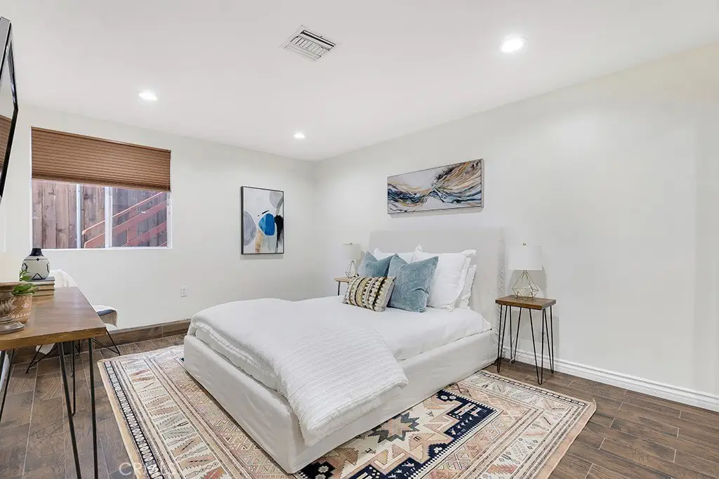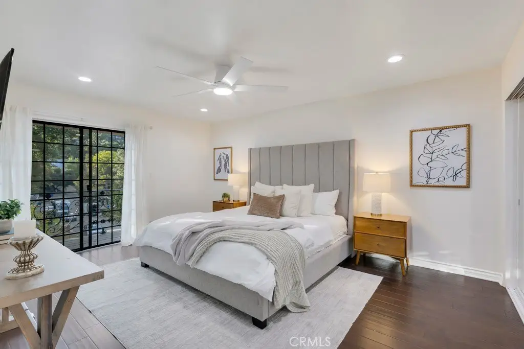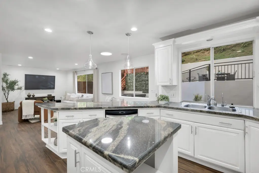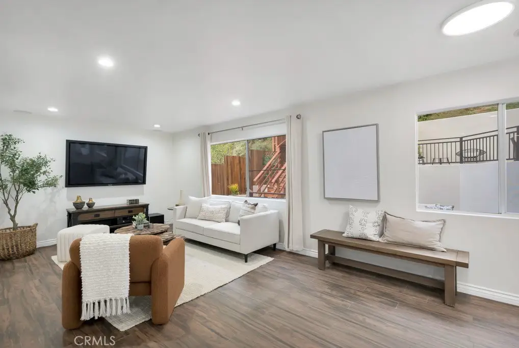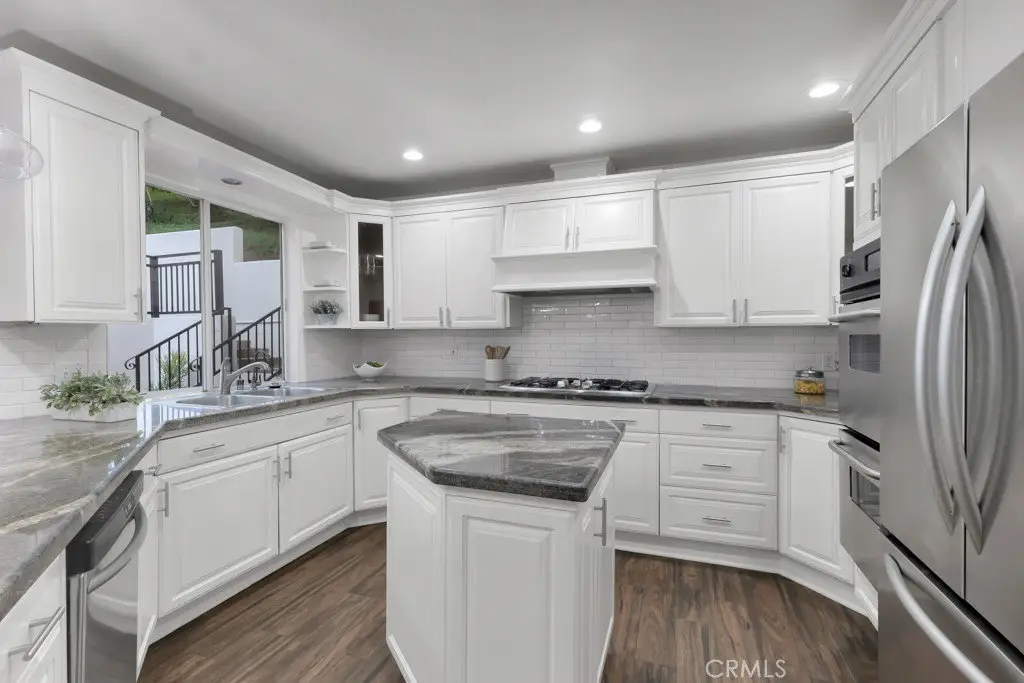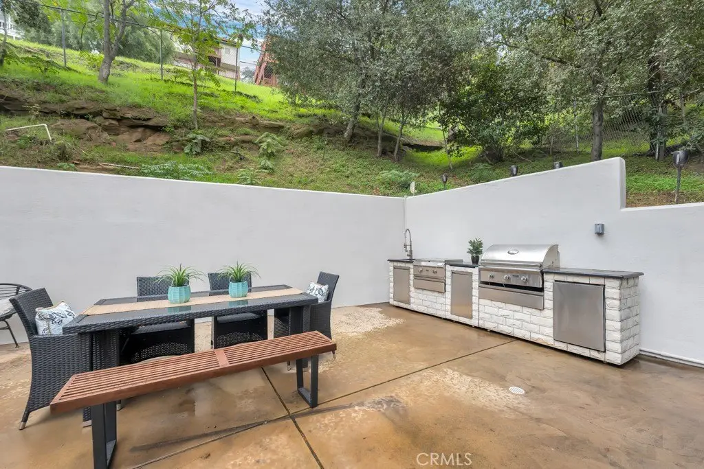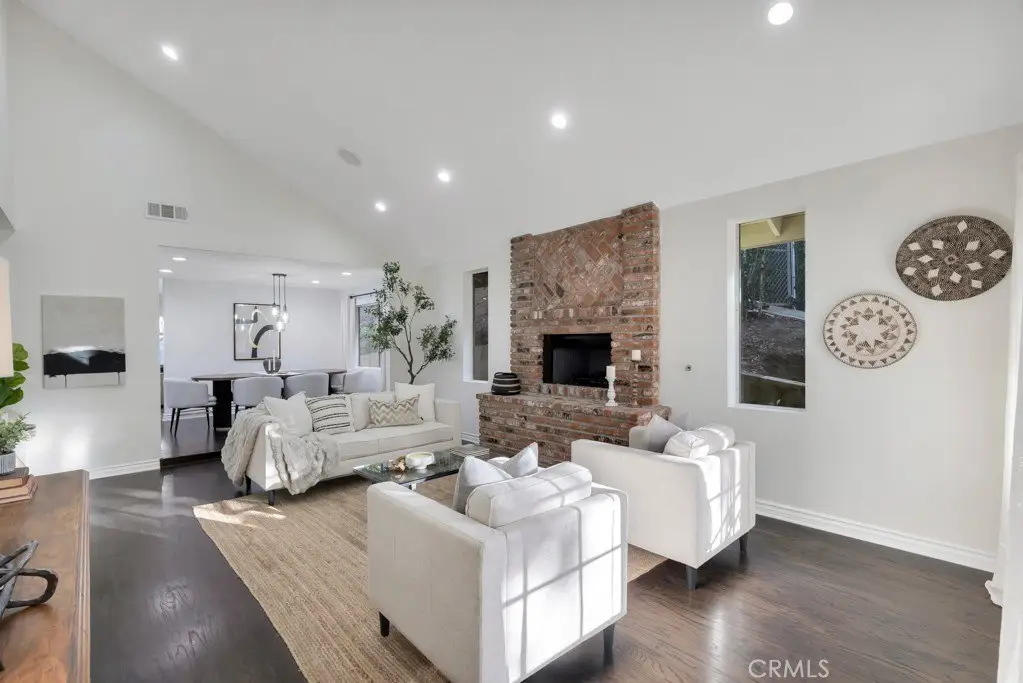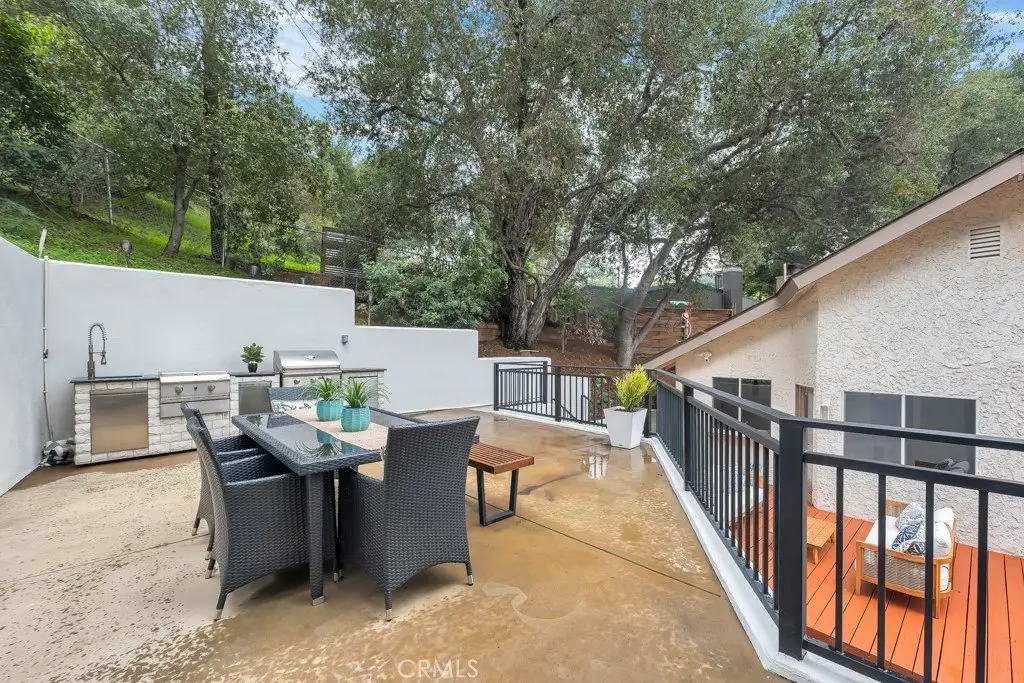 Tucked south of the Blvd on a tree-studded hillside, 4384 Saltillo Street is a two-story 4 bed 3 bath 1,994 sqft retreat designed for easy indoor-outdoor living. The main level features two bedrooms and two bathrooms, including a serene primary suite with leafy views from the front balcony. A sunlit living room with vaulted ceiling and a classic brick fireplace flows to a generous cook’s kitchen with stone counters, center island, white cabinetry, and stainless appliances that opens to an inviting family room. Downstairs offers two additional bedrooms and a full bath, ideal for guests, office, or gym. The multi-level backyard is an entertainer’s dream: the top deck captures tranquil views and fits a table and chairs for morning coffee, the middle patio sets the stage for outdoor dinners and hosts the built-in kitchen with grill, sink, and prep counters, and the lower deck is made for lounging beneath mature oaks features a relaxing jacuzzi. A rare Woodland Hills find in a highly desirable south-of-the-Boulevard location.