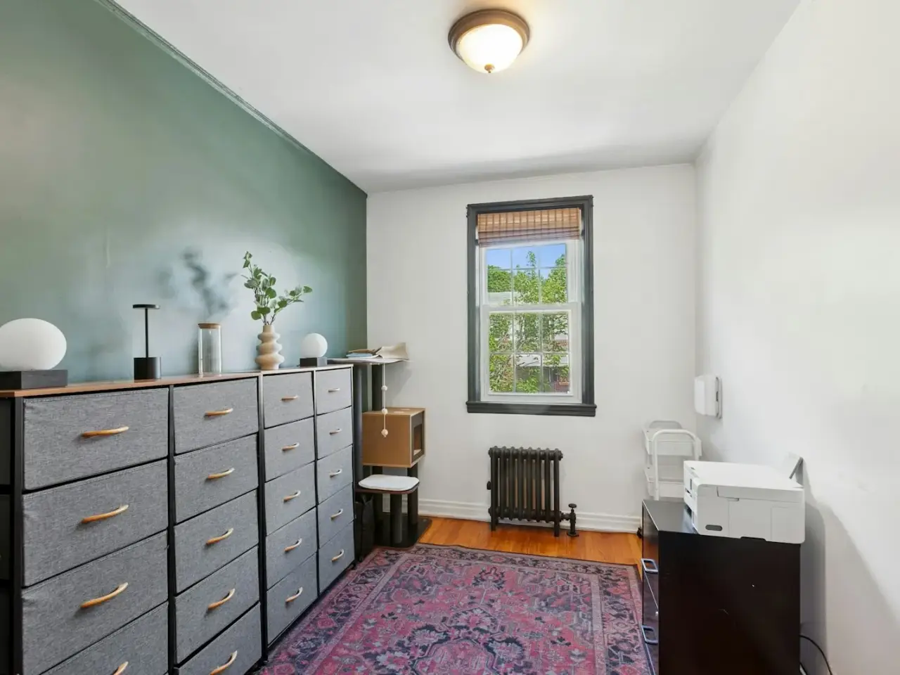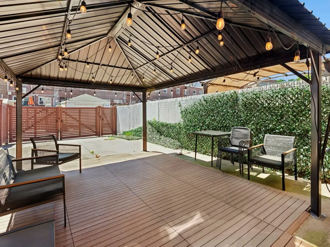This absolutely stunning and fully renovated three bed/two bath Woodside townhouse is available for purchase! Located on a charming and peaceful residential block in Woodside, and offering outdoor space as well as indoor parking, this move-in ready home truly has it all! At 1,292 sq.ft. interior, with an additional 485 sq.ft. finished basement, you have nearly 1,800 sq.ft. of interior space to call home. There is also over 1,000 sq.ft. of exterior space between the front yard and backyard. Additionally, the home offers a 161 sq.ft. garage, giving you the rare and luxurious private indoor parking. The layout flows perfectly as you enter this meticulously-maintained home to a spacious and welcoming living room and beautiful bay window. The formal dining room sits next to the renovated kitchen, with stainless steel appliances and a coveted window in the kitchen. Owner upgraded the kitchen cabinets, installed a beautiful farmhouse sink, and replaced the countertops and backsplash with quartz. Upstairs, all three bedrooms are bright and well-kept, and the owner installed a runner on the stairs. The primary bedroom is big enough for a king-sized bed, and it includes an upgraded and modernized ceiling fan. The owner also did a full renovation to the upstairs bathroom, including marble countertops, new tiling and tub, modern fixtures and lighting, and even a smart toilet with bidet. The open finished basement includes a Murphy bed; an LG washer/dryer; and a full bathroom, also with upgraded fixtures and lighting. The amount of space, storage and light in this house is a dream come true. This gem won't last. Schedule a showing today! Details: Lot: 19ft. x 95 ft.; Building: 19 ft. x 34 ft.; Zoning: R5; Floor Area Ratio: Facility FAR 2, Residential FAR 1.25 (FAR as built .72), Residential sq.ft. (not including the basement): 1,292 sq.ft. Usable floor area as built: 1,300 sq.ft.; Unused FAR: 957 sq.ft. Garage: 161 sq.ft. Annual Real Estate Taxes: $8,319.24.