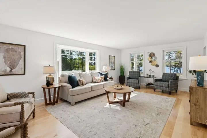 Set at the end of a half-mile private drive, this remarkable 5-acre property offers exceptional privacy, natural beauty, and an authentic coastal Maine lifestyle in one of Woolwich's most desirable settings. The 2,500± sq. ft. residence, built in 1977 and thoughtfully updated, includes 3 bedrooms, 2.5 baths, a dedicated office, and a versatile bonus room. Inside, sweeping west-facing views capture stunning sunsets, while granite countertops and a mix of slate and maple flooring highlight the home's timeless character. A spacious living room and large dining room provide inviting spaces for gatherings, and a classic farmer's porch offers a peaceful place to take in the serene surroundings. Outdoors, the property is equally captivating. With hundreds of feet of waterfront, enjoy direct access to Maine's coastal waters for paddling, fishing, or exploration. Eagles, osprey, and other native wildlife are frequent visitors. The land features mature red oaks, rare pines, and beautifully maintained open space surrounded by natural woodland. An existing barn offers possibilities for equestrian pursuits, hobby farming, or generous storage, while abutting conservation land ensures lasting privacy and natural beauty. With its setting, craftsmanship, and connection to nature, this Midcoast retreat presents a rare opportunity to enjoy the best of Maine's coastal lifestyle, just minutes from Wiscasset, Bath, and Brunswick. Also, see MLS 1639260 for property with additional acreage.