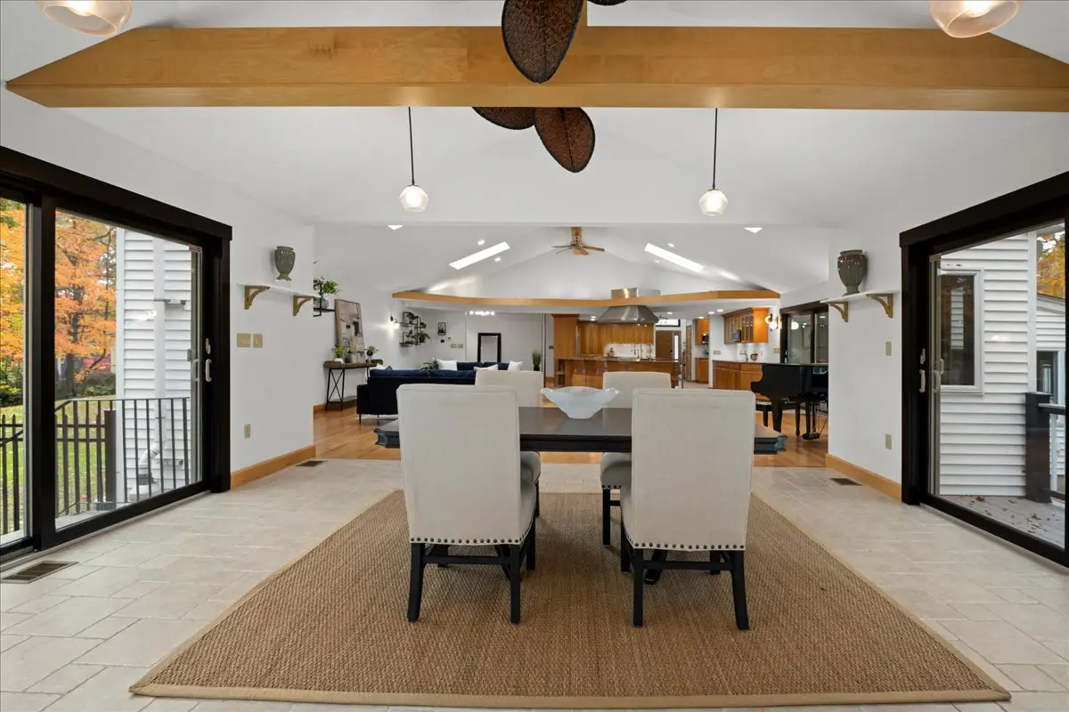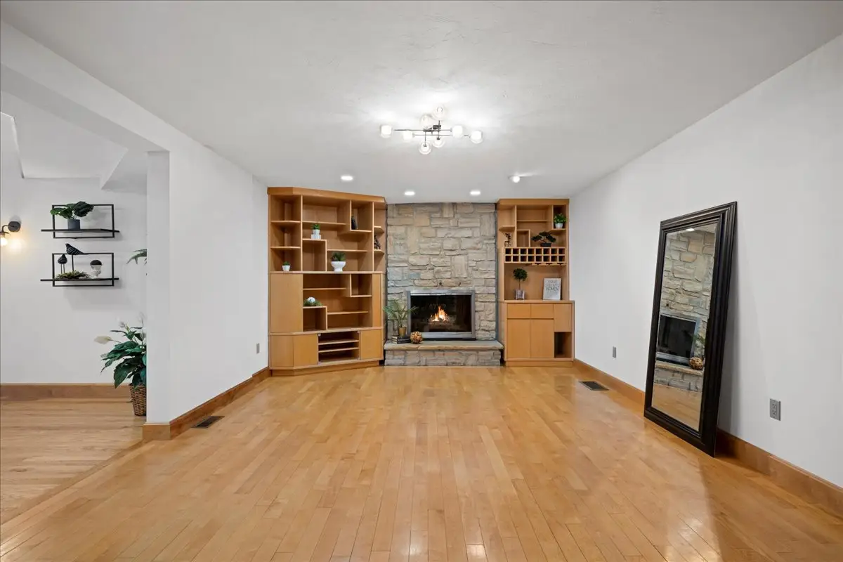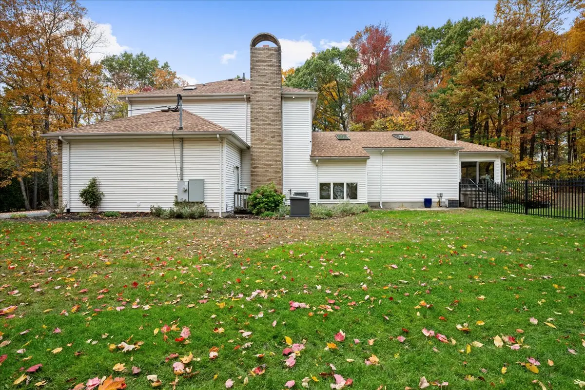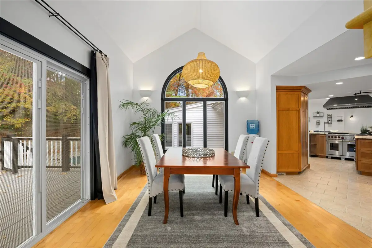 Set back for ultimate privacy - this stunning estate-style property is surrounded by mature trees and features a long, elegant driveway leading to an enchanting modern masterpiece. Inside, an impressive vaulted Great Room with skylights opens to a chef’s Kitchen with top-of-the-line appliances, while the vaulted Living and Dining area showcases beautiful maple floors. The Primary Suite offers hardwood floors, a bay window, and a spa-style bath with soaking tub, separate shower, and double sinks. Step outside to enjoy the heated in-ground pool, expansive patio, and outdoor entertainment area overlooking sweeping lawns. The finished lower level provides exceptional in-law potential with a bonus kitchen, full bath, media room, living room, den, and two additional flexible rooms ideal for offices, guest space, or a fitness area. A truly special property in a fantastic location—private yet convenient, with easy access to amenities.