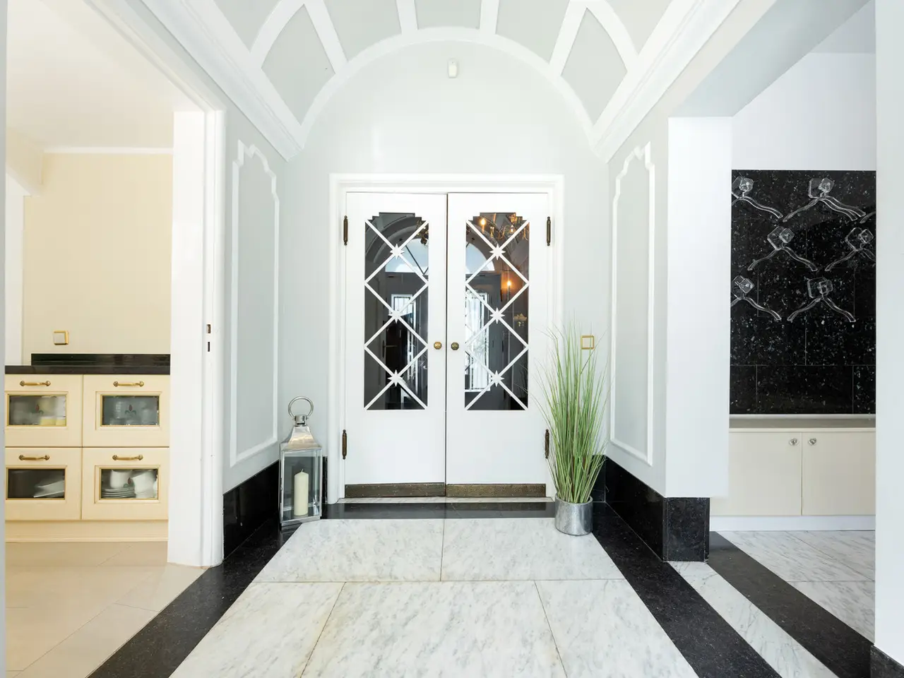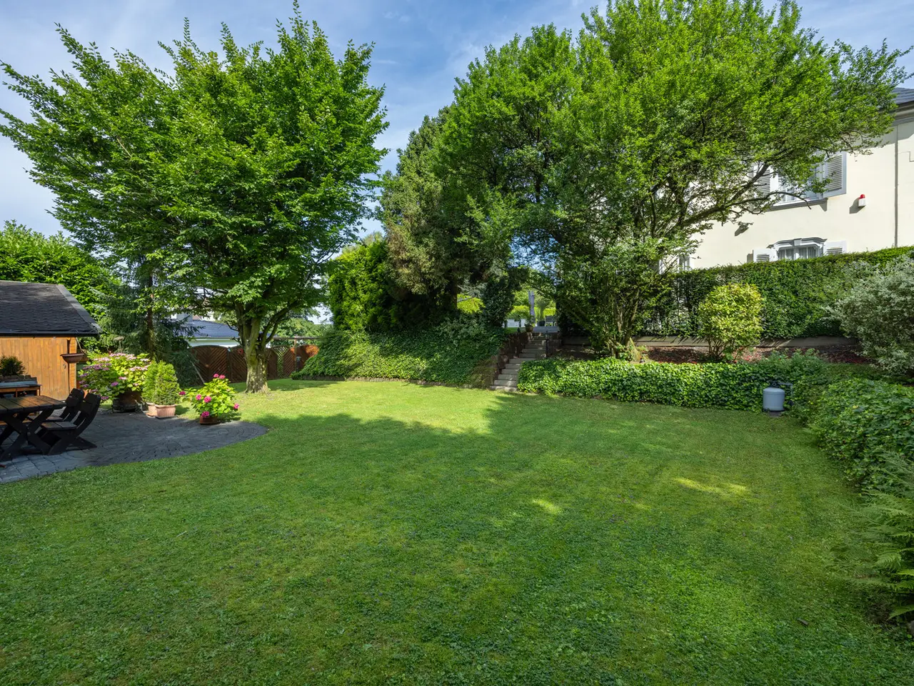 The historic old villa from 1924 extends over a plot of approximately 3,105 square meters and offers a living space of approx. 373 m² over three levels. The property was completely renovated from mid-2005 to 2006, including a new and historically inspired roof in old German slate covering, and is in a very lovingly modernized condition. During the refurbishment, the focus was on preserving or restoring the old building fabric. The villa's unique entrance impresses with an original wooden staircase, unique wood paneling and historic windows. The living and dining area extends over three open rooms with a total width of almost 18 meters. The kitchen and ancillary areas are also arranged on this level. The upper floor has four spacious rooms, two of which offer access to a balcony at the front and rear of the villa. A spacious and luxuriously equipped bathroom completes this level. The top floor offers you a modern and lovingly renovated and furnished separate apartment. A second kitchen was installed here about a year ago. There are also three further rooms on this level, which are currently used as living rooms and bedrooms. The building has a full basement and offers plenty of usable and ancillary space such as a refrigerated pantry, a wine cabinet and a room that was used for wellness purposes. The oil heating is approx. 13 years old and meets current standards. The restoration of old building elements during the renovation gives the villa a special charm. The outdoor area of the property is lovingly laid out and maintained and is second to none. Several outdoor areas and terraces as well as two different levels offer you varied and extensive relaxation and tranquillity. Large groups for celebrations and parties are very welcome in your garden. A prestigious driveway with a great traffic circle offers parking spaces for up to ten cars. A mature stand of trees and shrubs rounds off the outdoor area and provides a natural barrier as well as privacy and separation from the neighborhood and street. There is also a solid wall and fence system and an electric access gate with video intercom system. The location of the villa is quiet and yet well connected to the regional and national infrastructure. The unique historic old villa offers a wide range of possible uses and is ideal for families, couples or as a prestigious property. It could also be used as office space for consulting or as a law firm. Completely renovated, well-maintained and furnished with great attention to detail, this historic old villa offers a special home for discerning buyers looking for a unique property with character.