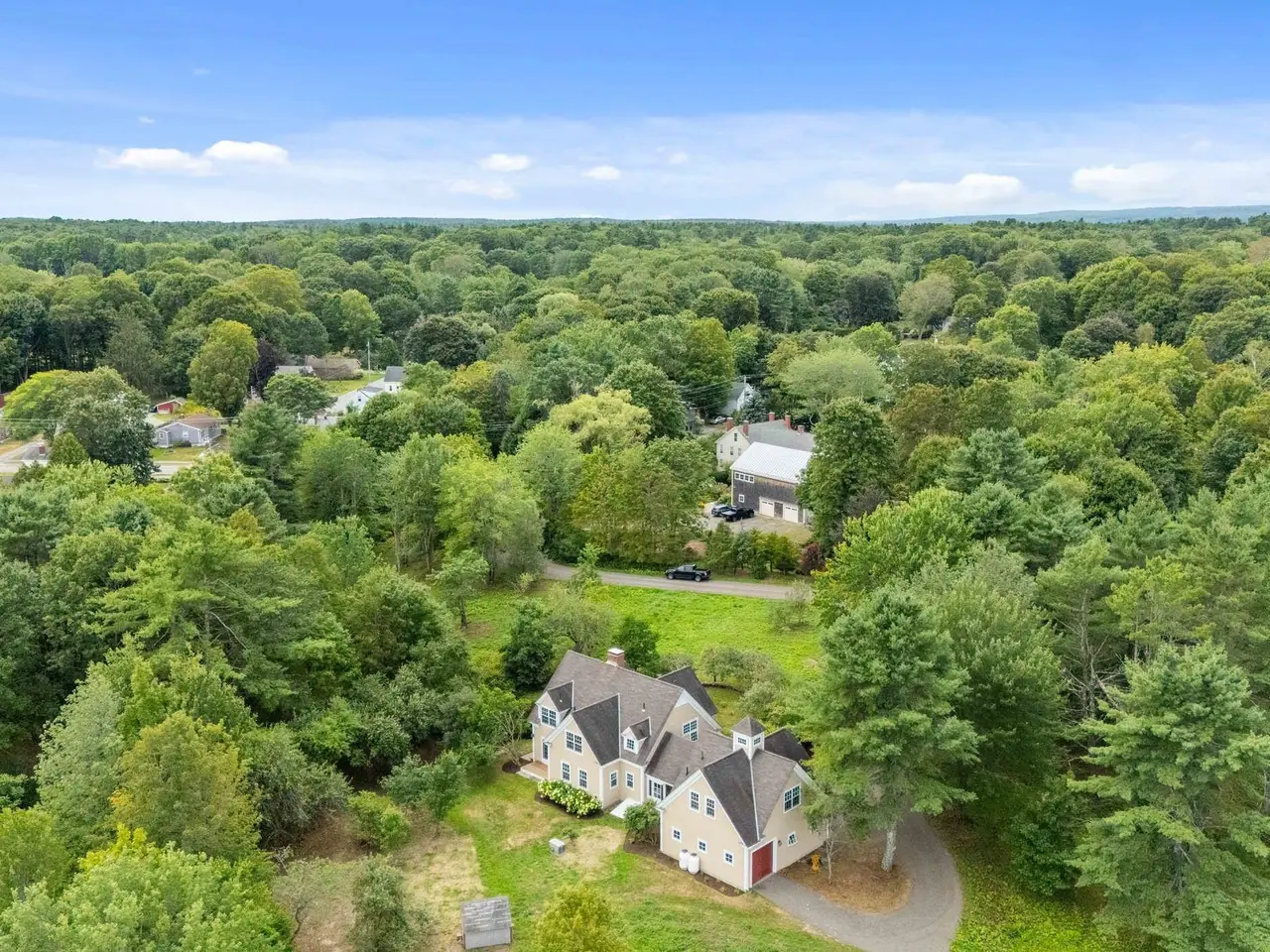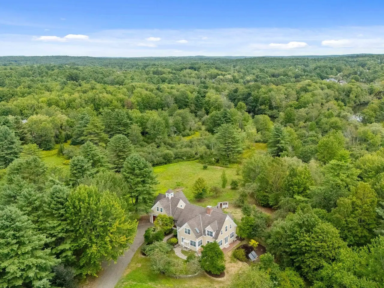 Enjoy the peaceful tranquility of living on 3.64 acres, surrounded by an additional 14-plus acres of pastoral views and walk to all the intown amenities offered in downtown Yarmouth. 25 Meadowbrook Lane was built in 2000 and offers 3800+/-sf of living space with 4 spacious bedrooms, 3 full baths, and a separate 832sf studio apartment located above the 3 car garage. The first floor includes a large eat-in kitchen with walk-in pantry, formal dining room and living room with working fireplace and a den with built-ins that could also be used as a first floor bedroom with direct access to a full bath. Upstairs, the architecturally designed stairway leads to a large open landing with 2 more generous sized bedrooms, full guest bathroom, laundry room as well as the primary suite with his & her walk-in closets and a private bath with double vanity, soaking tub & separate shower. Connected by a charming seasonal breezeway, the separate 832 sq ft studio apartment above the 3-car garage offers ideal space for guests, rental income, or multigenerational living. The apartment includes a full kitchen, full bath, and an open-concept living space with sweeping views of the apple trees in the front yard and rolling fields stretching toward the Royal River. This one-of-a-kind property has been recently split from a larger parcel that has been cherished by the family since 1976. Don't miss this rare opportunity to enjoy natural open space, privacy, and a walkable village lifestyle—all in one of Maine's most sought-after communities.