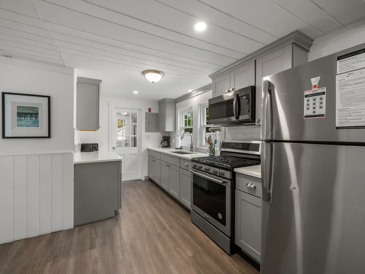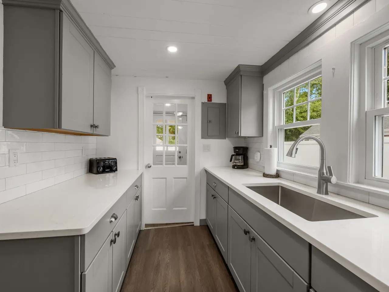 This quintessential Cape-style home just steps to Englewood Beach is ideal for year-round living or as an investment providing a strong rental history. Extensively renovated recently with new windows, roof, water heater, stone driveway, stainless appliance kitchen with quartz counters, C/A, and complete interior painting. See the attached full list of improvements. A formal fireplace dining/living room invites you into a cozy, renovated family room with custom built-ins that access the rear patio. A conveniently located first-floor primary bedroom with an adjacent newly tiled bath. The second floor provides two bedrooms and a full tiled bath. Oversized attached garage with extra storage space for all of your outdoor needs. Private fenced back yard with an outdoor shower for rinsing off after a sun-soaked day at the beach. -Whether you are relaxing in the yard or taking a quick stroll to Englewood Beach amongst multi-million-dollar estates, the coastal atmosphere is magnificent!