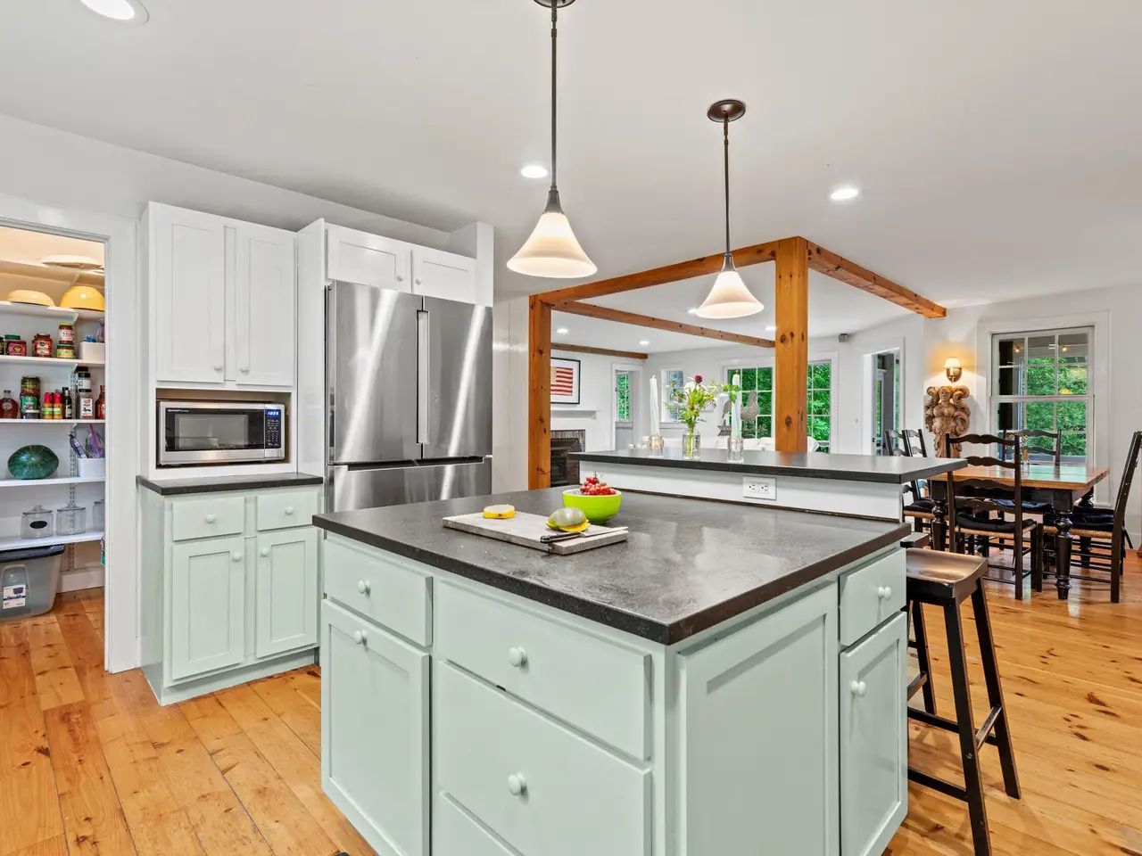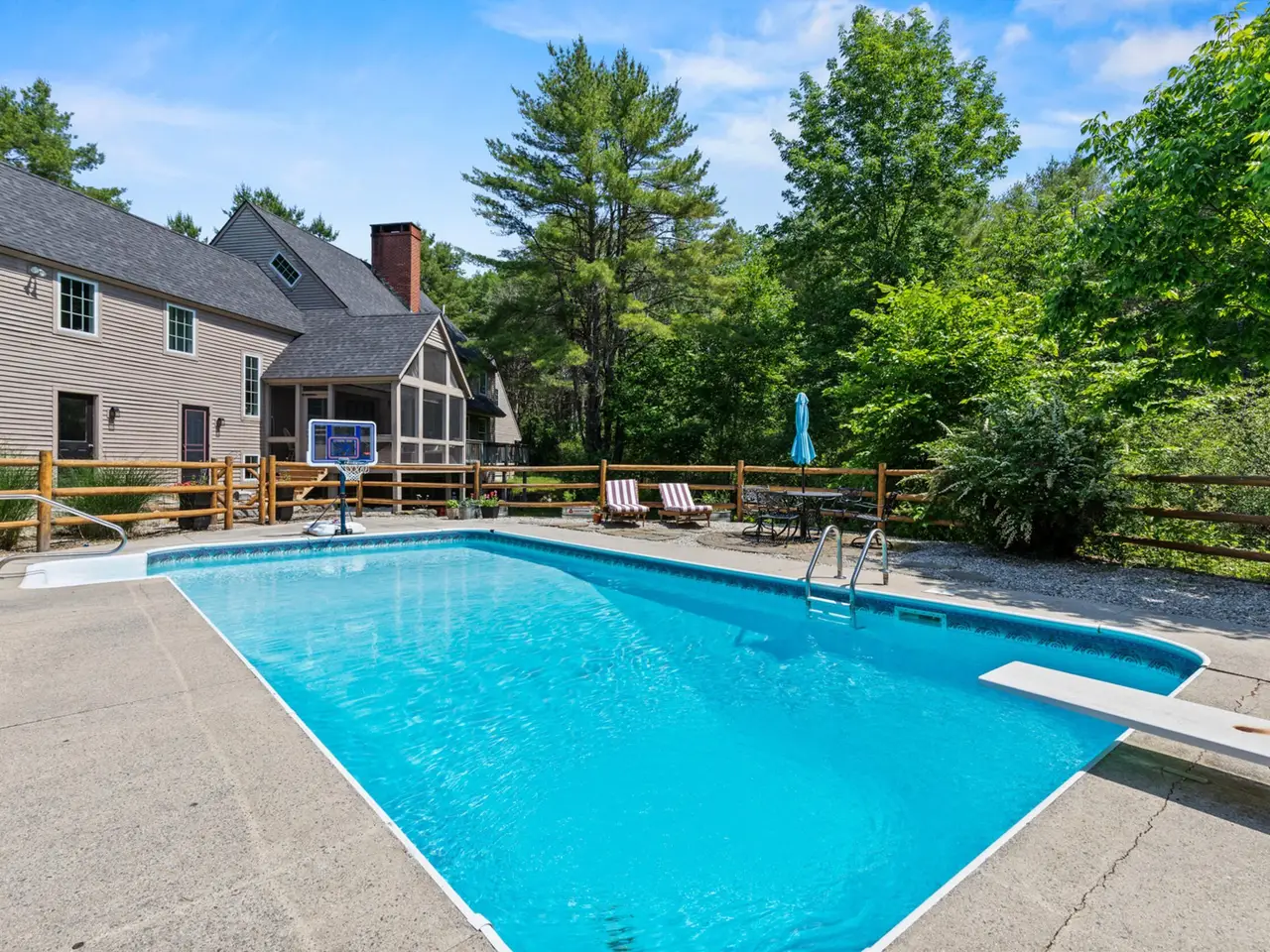 Nestled on 9.21 acres of wooded land, this beautiful property offers the perfect blend of privacy, comfort, and convenience - just a few minutes drive to Yarmouth Village and steps to Pratt's Brook Park, with its 220 acres and six miles of walking and cross-country skiing trails. A winding 600-foot driveway leads you from Ledge Road to a meticulously maintained farmhouse, architecturally designed and built in 2000. Encompassing over 3,800 square feet across three levels, this home provides generous living spaces and indoor parking for three vehicles. The first floor welcomes you with a relaxed, open-concept layout featuring a large kitchen with a center island and walk-in pantry, adjoining a spacious dining area and cozy family room with a wood stove. Just beyond, a screened three-season porch overlooks the backyard and the heated, in-ground pool-perfect for entertaining or quiet summer evenings. A separate living room with a wood-burning fireplace, mudroom entry, and half bath complete the main level. Upstairs, you'll find four spacious bedrooms, including a serene primary suite with a walk-in closet, renovated master bath, and a private adjoining office. Two additional fully updated bathrooms serve the other bedrooms, offering comfort and modern convenience for family or guests. The lower level consists of 550 square feet of finished gym/playroom and a full, separate workshop. The home also includes a central air conditioning system. An adjacent 3.12-acre parcel is also available for purchase at a reduced rate to the buyer of this property, providing the opportunity to expand or develop one or two additional lots. Located in the desirable Ledge Road neighborhood, this home offers a rare combination of seclusion, natural beauty, and community, just minutes from Yarmouth's award-winning public schools and charming village amenities.