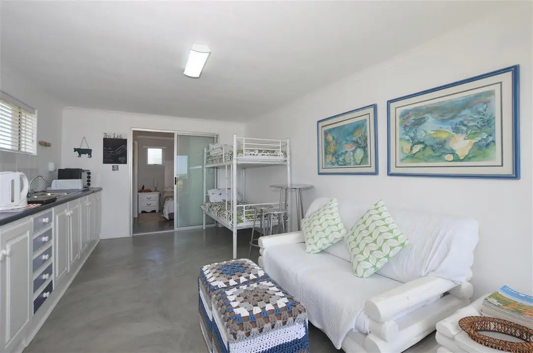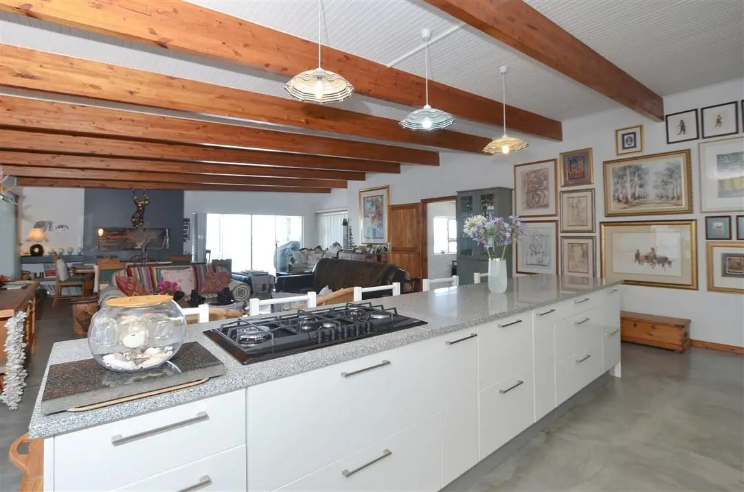 Exclusive Mandate: Welcome to your dream beach house, nestled in the charming seaside town of Yzerfontein. This exquisite property offers an unparalleled blend of luxury, comfort, and breathtaking ocean views, making it the perfect retreat for both personal enjoyment and income potential property. Entrance and Upper Level: As you step through the entrance, you are greeted by an impressive sense of openness and spacious interiors that create a seamless flow throughout the home. The upper level serves as the heart of this residence, featuring a generously sized open-plan living area that includes a modern kitchen equipped with a gas stove, a cozy lounge, and a dining area complete with a built-in braai (barbecue). Sliding doors open effortlessly to an expansive outdoor patio, where a second built-in braai awaits, providing an idyllic setting for entertaining friends and family while soaking in the stunning ocean vistas of the renowned Yzerfontein Main beach and Mile 16. The upper level also boasts a spacious guest bedroom with a full en-suite bathroom, ensuring comfort and privacy for your visitors. Lower level: Descending to the lower level, you will find the luxurious master bedroom, which offers spectacular views, an en-suite bathroom, and a walk-through closet. This level also features a dedicated study or office space, perfect for remote work, complete with high-speed fiber internet already installed. Additionally, there is convenient storage space under the stairs, ideal for use as a wine cellar. The lower level includes two additional bedrooms, each with en-suite bathrooms, which can be easily transformed into a self-contained guest unit. This versatile unit features an open-plan living area and kitchen that leads to a private braai area, a heated swimming pool, and a beautifully maintained garden, perfect for relaxation and outdoor enjoyment. Separate apartment: Enhancing the property's appeal is a separate apartment with its own private entrance. This self-contained unit comprises one bedroom, a bathroom, and an open-plan living area with a kitchenette, providing additional accommodation options and access to the heated swimming pool. Parking and Security: This property provides ample parking with a double boat garage that can accommodate up to six vehicles, in addition to three off-road parking spaces. For your peace of mind, the home is equipped with a state-of-the-art alarm system, along with exterior security beams and cameras that are connected via Hik-Connect, allowing you to monitor your property from your phone, no matter where you are. This meticulously designed beach house combines luxury, functionality, and breathtaking views, making it an exceptional choice for discerning homeowners or savvy investors. Don't miss the opportunity to own a piece of paradise in Yzerfontein - schedule your viewing today
