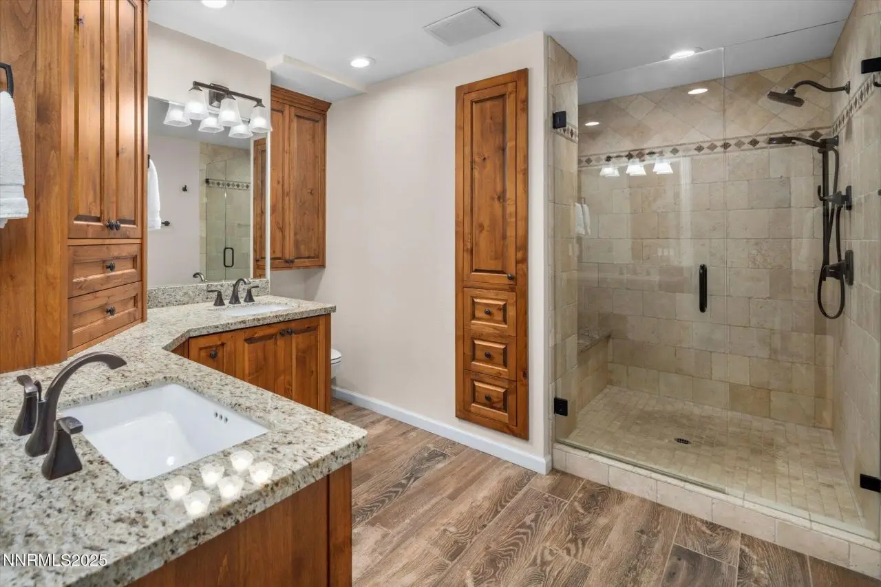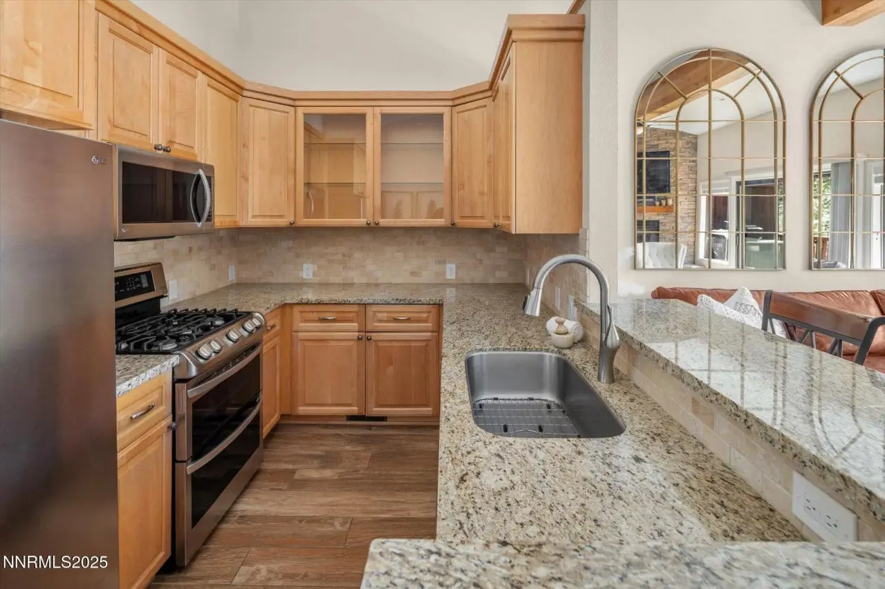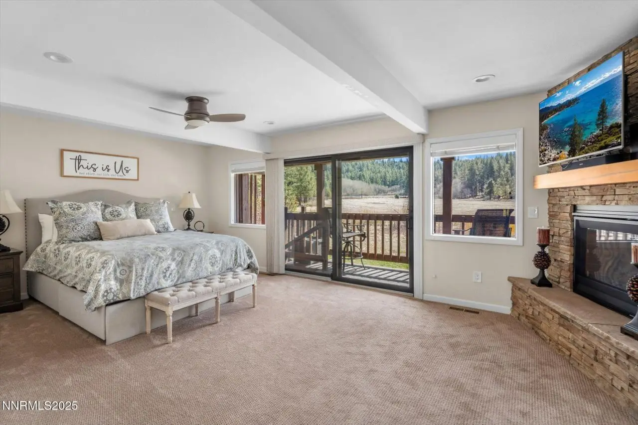 Welcome to Pinewild #43, a fully renovated mountain retreat offering over 1,800 square feet of modern living in one of Lake Tahoe's most sought-after gated lakefront communities. This bright, spacious townhome captures panoramic views of the pristine Bourne Meadow and brings the outdoors in with its abundance of natural light, vaulted ceilings, and expansive windows.From the moment you step inside, you're greeted by a seamless blend of contemporary comfort and timeless Tahoe charm. The open-concept living area features a stylish fireplace, wide-plank flooring, and thoughtful finishes throughout. A wall of glass leads to a large private deck-perfect for morning coffee, evening cocktails, or simply taking in the unobstructed meadow and Heavenly Valley ski resort views.The fully renovated kitchen boasts quartz countertops, stainless steel appliances, custom cabinetry, and a breakfast bar ideal for entertaining. Adjacent is a spacious dining area that flows effortlessly into the living room, making gatherings with family and friends easy and memorable.Upstairs, the generous primary suite offers peaceful treetop and meadow views, a spa-inspired en-suite bath with double vanity, and a walk-in closet. Two additional bedrooms and a second full bathroom provide ample space for guests, a home office, or a growing family. Every room is bathed in natural light, creating a welcoming and serene environment year-round.Enjoy the best of Tahoe living with Pinewild's private amenities, including tennis courts, a clubhouse, and a private sandy beach with pier access and a buoy field-an incredibly rare offering on the Nevada side of the lake. Whether you're looking for a primary residence, a second home, or an investment property, this home has everything you need for four-season enjoyment.