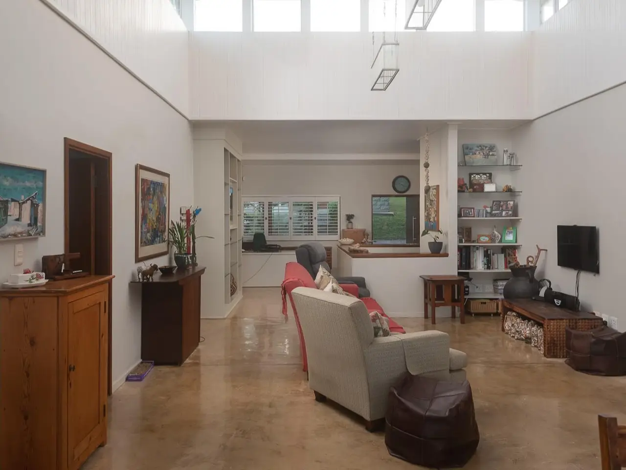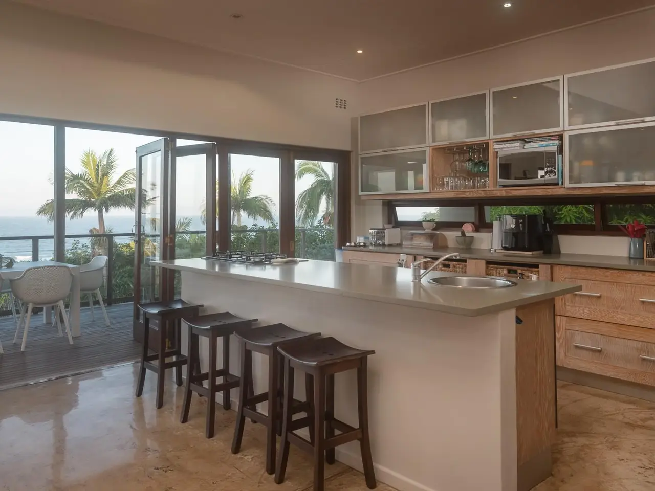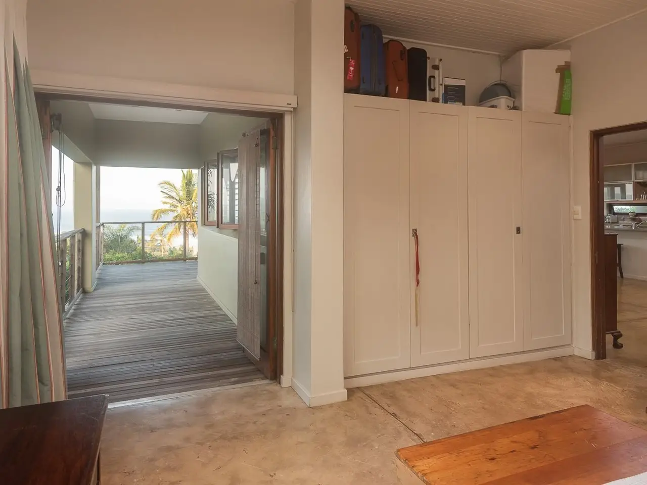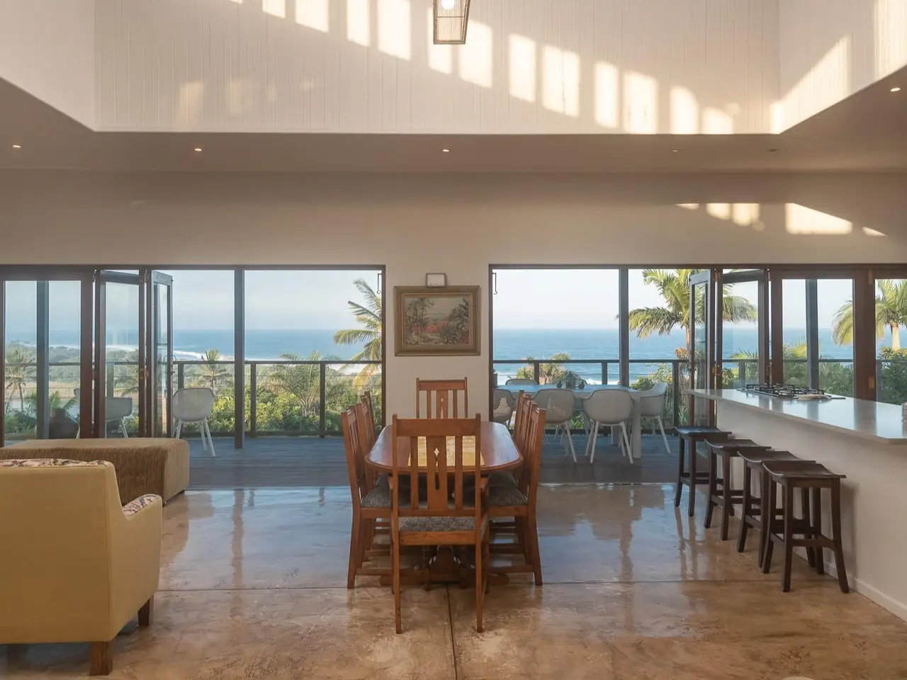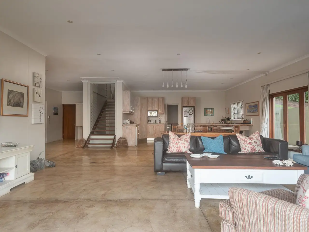 Open-plan living area with large balcony