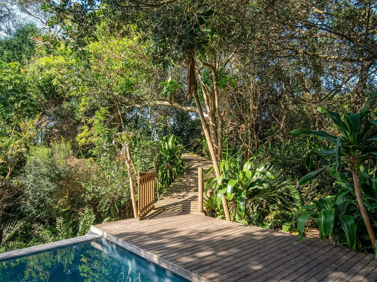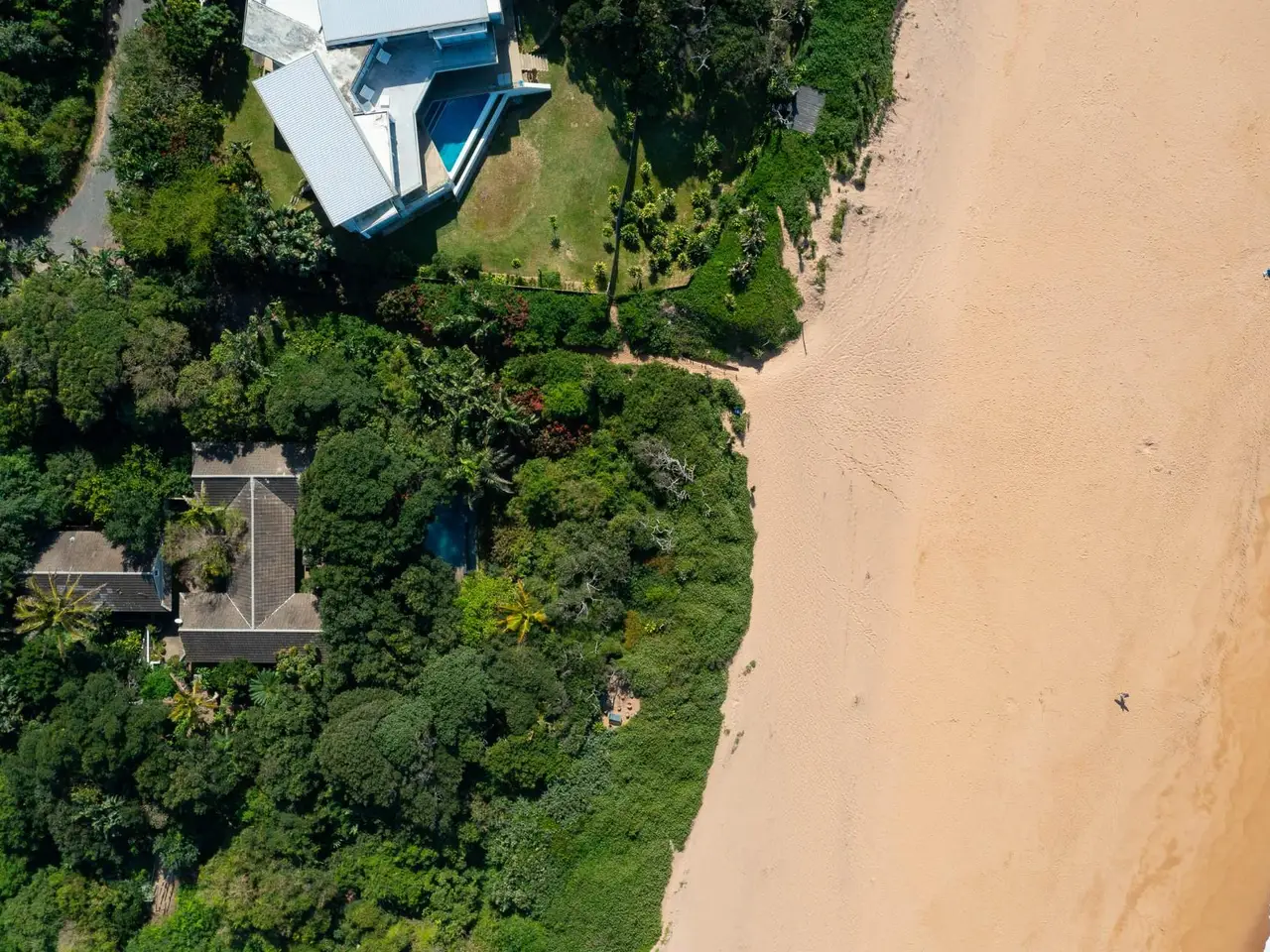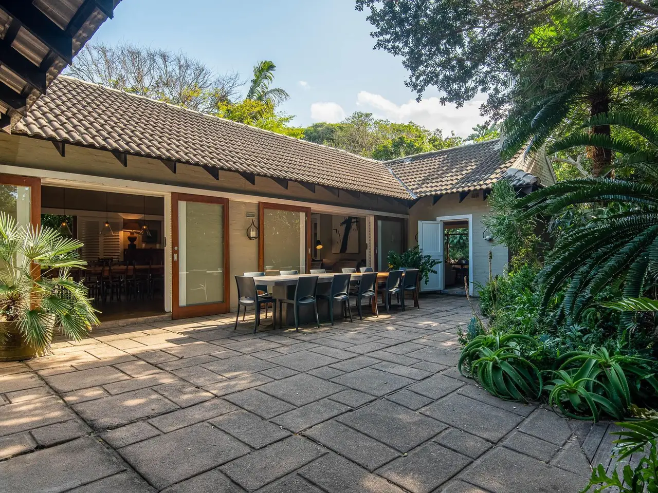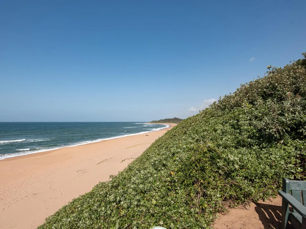 Exclusive to Chas Everitt - A fairytale property where old-world, colonial charm meets tropical island bliss. This is, without a doubt, the most unique home within the village, where nature's embrace is felt at every turn. Nestled amidst a tapestry of dense vegetation, this property, like a hidden treasure, offers the ultimate retreat, shrouded in a cloak of complete privacy. As you approach, the captivating allure of the beachfront location beckons you closer, promising a sanctuary unlike any other. The main house exudes an air of grandeur, with its magnificent formal lounge, adorned with a crackling fireplace that casts a warm glow, creating an inviting ambience. The open-plan living area seamlessly combines a cosy TV room and an elegant dining area, where cherished memories are destined to be made. Wooden sliding doors and shutters flank both sides of this space, revealing enchanting patios that present two different worlds. One leads you to the awe-inspiring pool area, where sparkling waters invite you to immerse yourself in blissful serenity. And just when you think this masterpiece couldn't offer more, a breathtaking surprise awaits. From the pool area, an elevated walkway invites you to embark on a journey to a private viewing area, where the quieter beaches of Zinkwazi unveil themselves in all their glory. The kitchen, thoughtfully positioned off the dining area, boasts modern concrete countertops and a sliding window that effortlessly connects to the protected courtyard, which is ideally located adjacent to the dining area, ensuring seamless entertaining. The main bedroom, nestled within this section of the home, offers a panoramic vista of the lush gardens, visible through the sliding door and windows. A full en-suite bathroom, adorned with generous windows, reveals breathtaking views of the sub-tropical gardens and the duck pond that graces the rear of the property. To complete this haven of tranquillity, a massive walk-in wardrobe awaits, ready to house your cherished possessions. Venturing further, four additional bedrooms unfold, nestled beyond the protected courtyard. Two bedrooms overlook the driveway area, sharing an interleading bathroom that effortlessly combines functionality and elegance. On the opposite side, two more bedrooms await, each offering sweeping views of the magnificent gardens that surround them. These bedrooms boast their own ensuite bathrooms, ensuring comfort and convenience for all who reside within. The property also boasts spacious staff quarters and three garages, catering to every need. This home, a true masterpiece, is not merely a property, but an oasis that promises to awaken your soul and captivate your every sense.