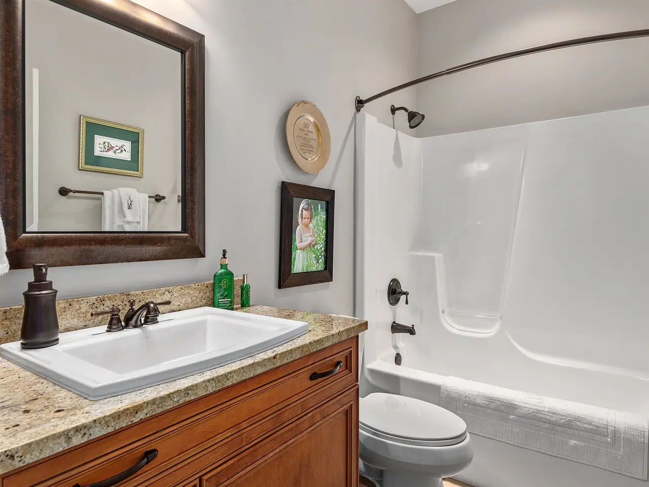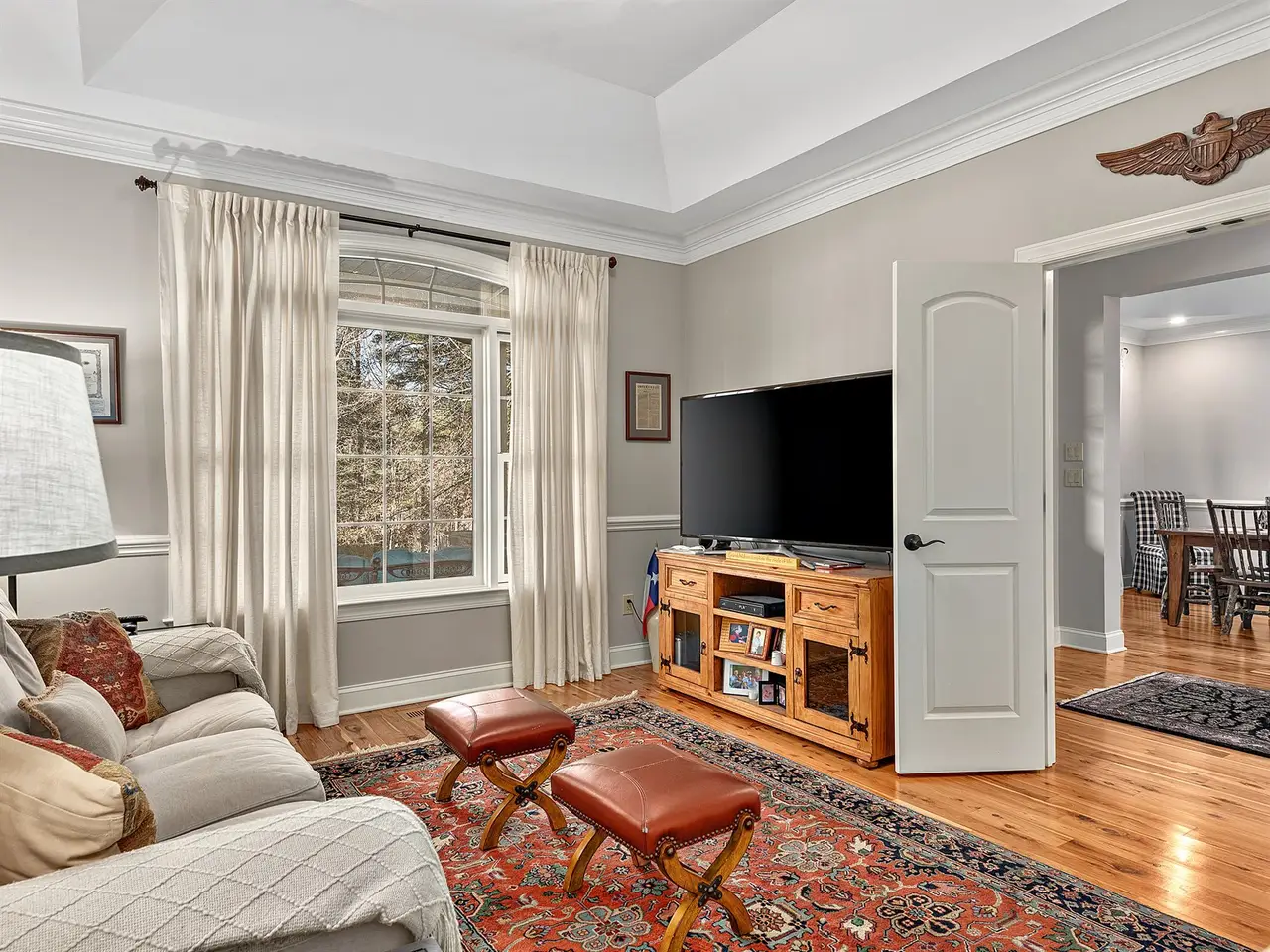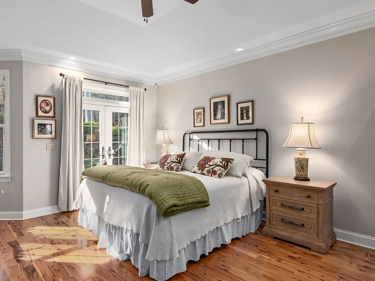 Don't miss out on this beautiful home situated on a cul-de-sac in a quiet, serene neighborhood! It boasts amazing Australian Cypress hardwood flooring throughout, including the primary bedroom. The primary bath has his and hers walk-in closets for your enjoyment. The shower in the primary bath is a large, walk-in shower and is beautifully tiled. Granite countertops throughout. The other two bedrooms on the main level have just had new carpeting installed The upstairs bedroom is spacious and is equipped with a wet bar, refrigerator, microwave and a full bath. There is a room adjoining for use as a crafts room, work-out area, or whatever needs you have. From this room, there is access to a large unfinished attic area which has endless possibilities. In the back yard, there is a 100 year old fireplace and chimney which was part of the of the original homesite. This amazing fireplace is just steps away from a patio off the back of the house for incredible outdoor entertaining.