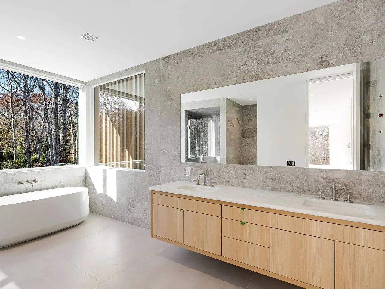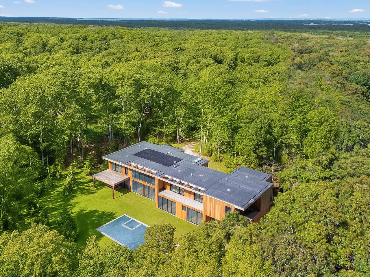 This refined modern is unparalleled. Set on 1.67 acres within the coveted Bell Estate in Amagansett and bordering over 50 acres of reserve, the setting affords exceptional privacy and a locational advantage you will love. A perfectly positioned residence just minutes to Amagansett's Main Street, the ocean, and the bay. Meticulous execution, thoughtful design, and noticeable attention to detail throughout this new construction, the results showcase natural light, embrace the surroundings, and seamlessly blur the lines between indoor/outdoor living. The minimal exterior offers clean lines and texture, beginning with its vertical grain clear cedar siding, custom-milled cedar screens and floor-to-ceiling windows and doors. A dramatic architectural overhang at the rear elevation filters the light and adds rhythm to terraces and balconies below. A stunning custom 50' gunite pool with lap lane, spa, and sun shelf anchors the backyard along with a pergola-covered lounge offering welcoming shade on a hot summer's day. Mature native landscaping enhances and surrounds the abundance of exterior living space with over 3,000 square feet of terraces including a covered outdoor kitchen and dining area, bluestone patios, Ipe balconies, and an upper sundeck. Inside, clean lines meet sumptuous and enduring materials. From the second-floor mezzanine one can fully appreciate the impressive main living area. A 20' vertical clear cedar wall defines the dining area, while a double-height window wall brings the outdoors in. A STUV wood-burning fireplace encased in statuary marble is the perfect transition from the great room to the spacious den. Features include 7' wide white oak flooring, 9' interior doors, recessed silo lighting, and a striking steel-and-oak mono-stringer staircase. The home spans approximately 10,000 square feet across three finished levels. Eight ensuite bedrooms include a first-floor primary suite, second-floor primary, and junior primary. All feature walk-in closets, floor-to-ceiling glass sliding doors, and access to private or semi-private outdoor spaces. Spa-caliber bathrooms, with full-height natural stone and marble tile, cedar accents, floating white oak vanities, brushed nickel fixtures, Robern medicine cabinets, freestanding tubs, and integrated custom mirrors with vertical lighting. Natural light continues all day in the fully finished lower level with an east and west facing sliders, plus oversized windows. Here indulge in your own private wellness suite including a mirrored fitness studio with ballet barre, cedar-walled sauna with glass panel, separate steam room, and custom stainless steel Reiki soaking tub. Additional amenities on this level include a modern wine room, wet bar, media space, and expansive recreation lounge. Back on the main level, the kitchen is a work of art and is made to entertain. The Henrybuilt kitchen offers refined aesthetics with exceptional function; an oversized fluted white oak island, statuary marble countertops and backsplash, and integrated Gaggenau appliances, including wine column, induction cooktop, wall ovens, and fridge. A discreet auxiliary kitchen offers matching finishes, Miele and Gaggenau appliances, a gas range with custom steel hood, coffee bar, and utility island. Adjacent mudroom, side entrance, and laundry room add everyday convenience. Engineered and fully equipped for longevity and efficiency, the home features a Lutron RadioRA smart system for app-controlled HVAC, lighting, AV, and pool. All bedrooms and living spaces are AV/media ready. Additional green features include spray foam insulation, whole-home water filtration, a 10kw solar array, and a HERS-rated energy performance build. Set for completion late fall 2025 within Bell Estate in Amagansett. Listing ID: 923878