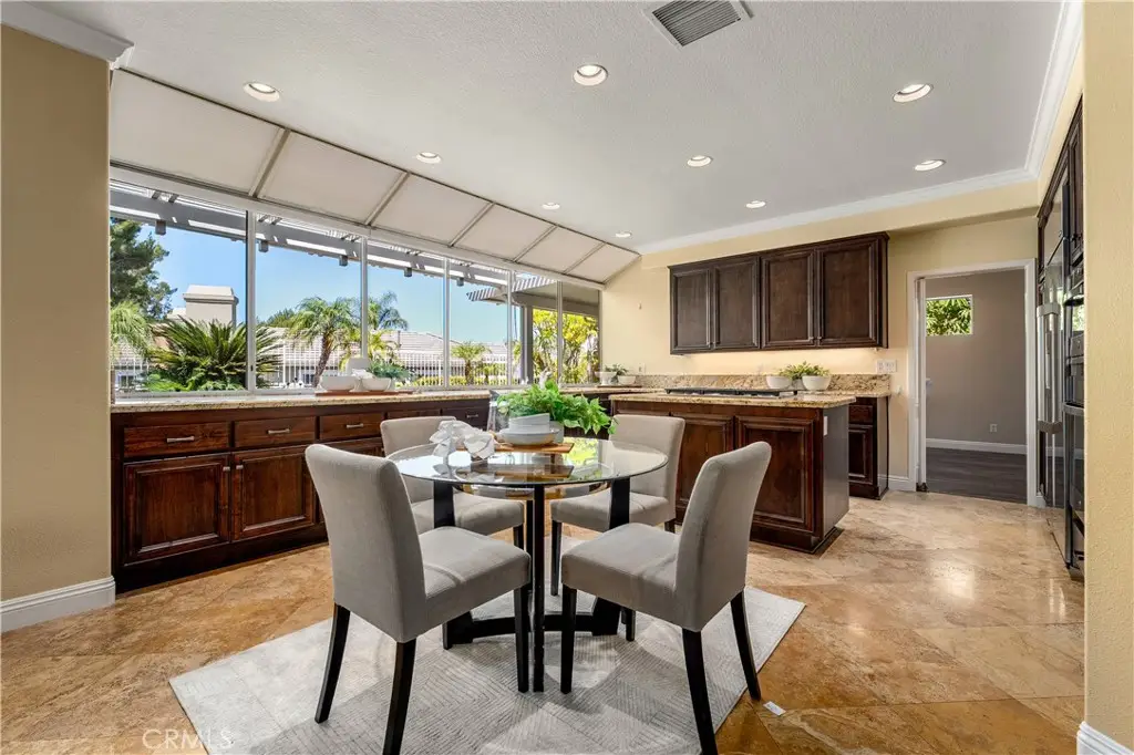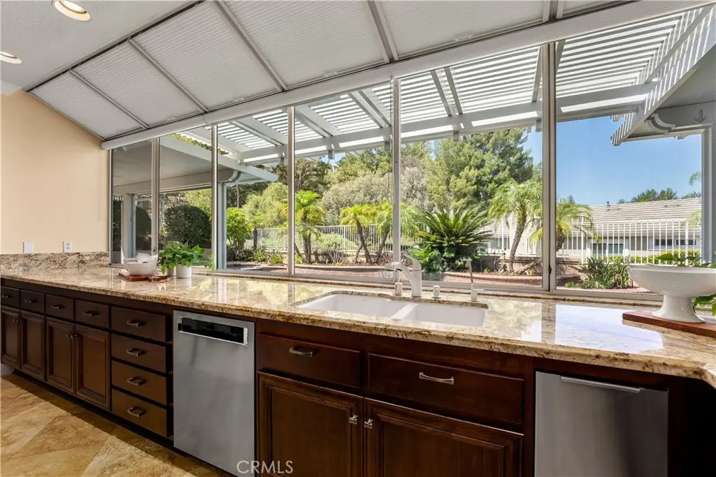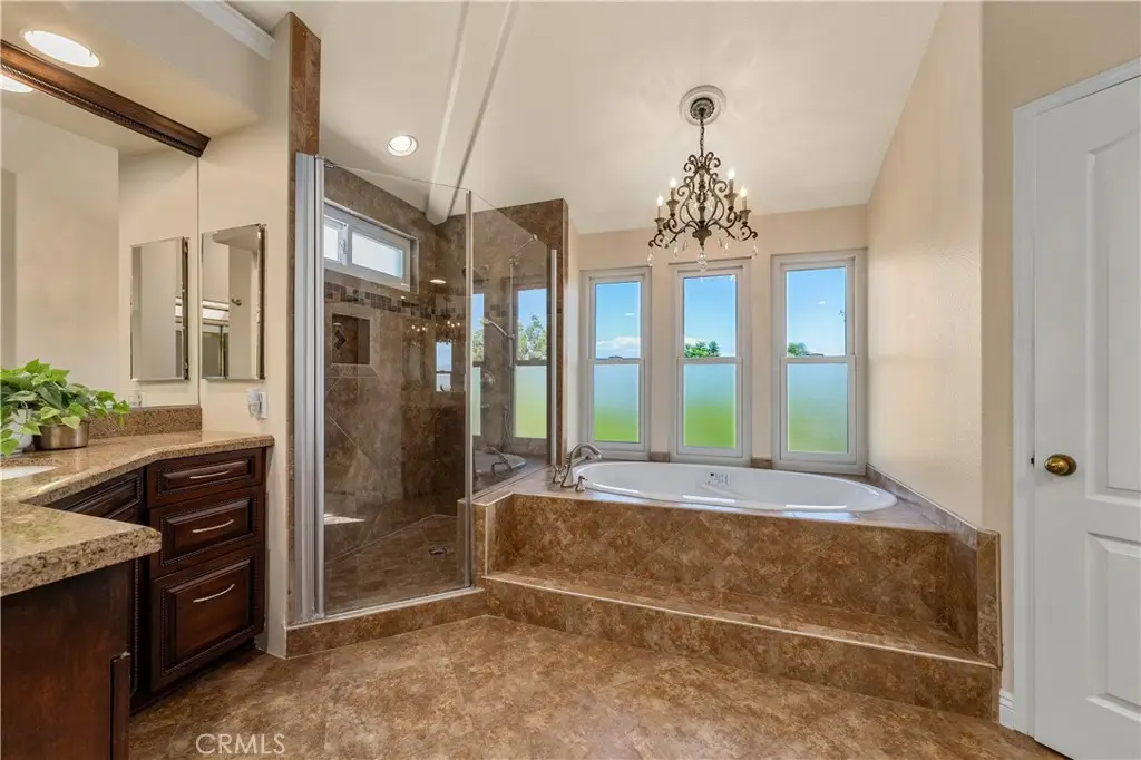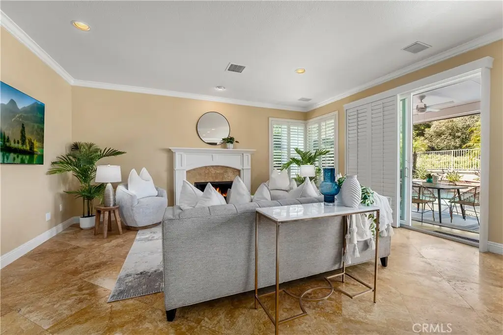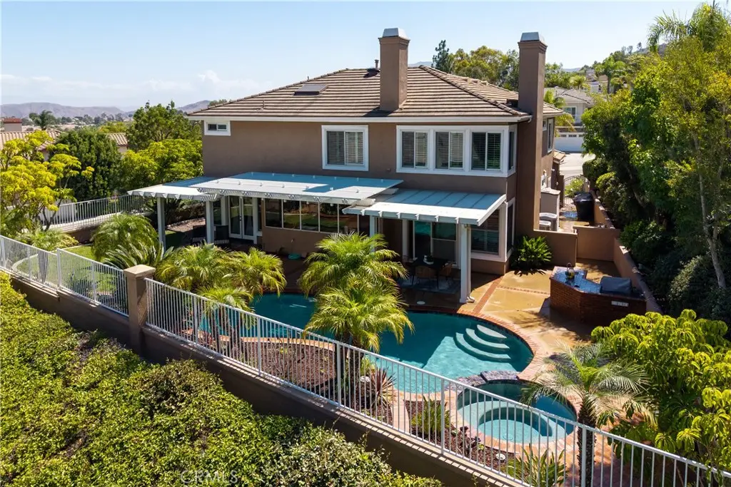 Step into a world of elegance and comfort at this stunning 5-bedroom, 4.5-bathroom pool home with partial views, perfectly located in the heart of Anaheim Hills. From the moment you enter through the double doors into the grand foyer beneath a sparkling chandelier, this home makes a lasting impression. To your right, the formal living room sets the tone with rich wood floors that flow seamlessly into the dining room, where French doors invite you to step outside and enjoy the beauty of the backyard. Wood shutters, crown moldings, and timeless design details add warmth and sophistication throughout. At the heart of the home, the expansive kitchen is designed for both daily living and entertaining. Granite countertops, stainless steel appliances, built-in refrigerator, 5-burner cooktop, and walk-in pantry provide everything a chef could want. The oversized bay window floods the space with natural light while overlooking the sparkling pool. Just beyond, the inviting family room with fireplace offers the perfect place to gather, with sliding glass doors leading to the backyard oasis. A main floor bedroom with en-suite bath offers flexibility for guests or a home office, while a separate powder room adds convenience. Upstairs, the primary suite is a private retreat all its own. Double doors open to a spacious sanctuary with fireplace, sitting area, infrared sauna, dual walk-in closets, and spa-inspired bath with dual sinks, walk-in shower, and jetted tub. Three additional bedrooms complete the upper level--two connected by a Jack & Jill bath, one with a balcony to enjoy evening breezes, and another with a large walk-in closet and mirrored wardrobe doors. The backyard is truly the soul of this home--a resort-style haven where every detail is designed for entertaining and relaxation. Multiple Alumawood patio covers with ceiling fans and lighting create the perfect setting for outdoor dining. A built-in BBQ makes weekend gatherings effortless, while the pebble tek and salt water pool and spa invite endless hours of fun and tranquility. Additional features include updated stair railings, plantation shutters throughout, water softener and purifier, whole-house fan, crown molding and so much more. This home is more than a place to live--it's a lifestyle. With its perfect blend of luxury and warmth, it's ready to welcome you home.
