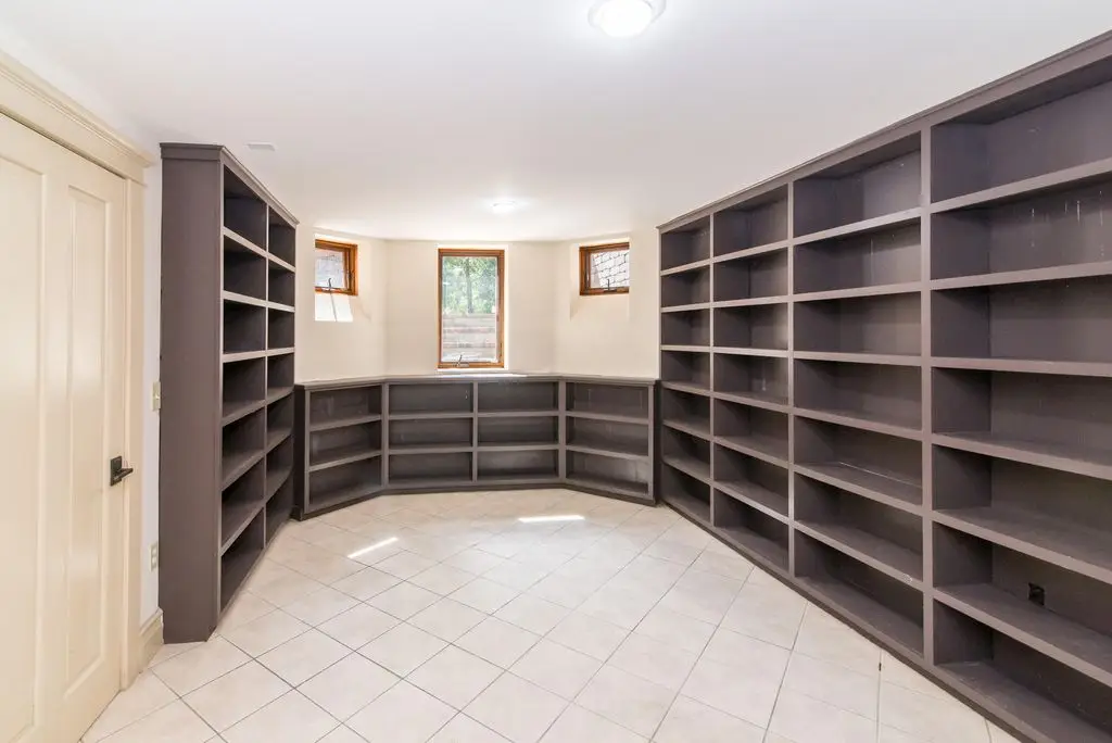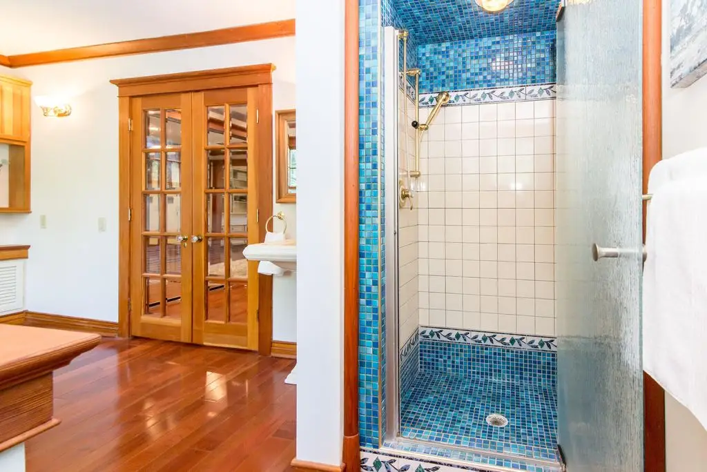 • Custom-built cabinets with beveled glass