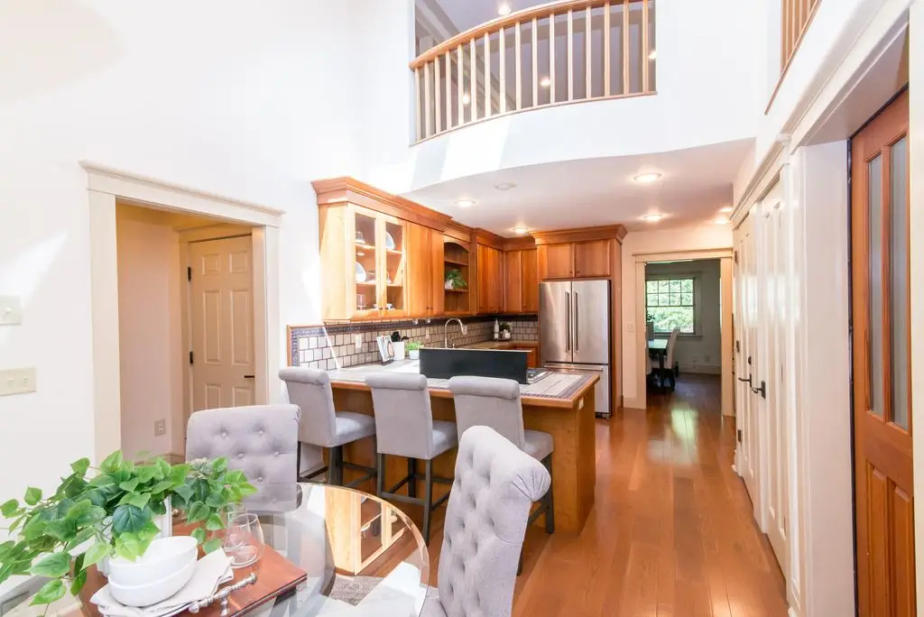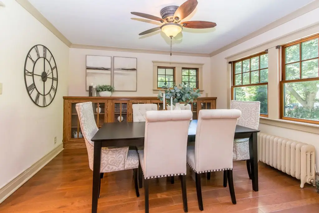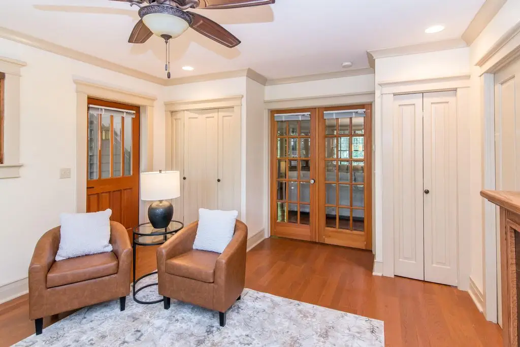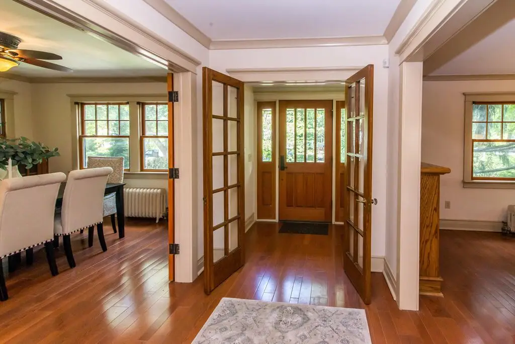 Step into this home, featuring unique architectural details. French doors and custom-built cabinets with beveled glass. Hardwood floors throughout. This three-story home has 3300 sq. ft. of living space. Four bedrooms and six bathrooms. The kitchen features tile counters and backsplash, warm oak cabinets, recessed lighting, and stainless-steel appliances, including two ovens. The cathedral ceiling eating area overlooks a covered porch and brick patio. Both the third floor and the basement have a full bath and a kitchenette. The primary bedroom suite features a cathedral ceiling and a spacious dressing room with ample closet space. Located on a lovely tree-lined street near the University. HERD Score: 3.OPEN HOUSE Sunday, September 28.