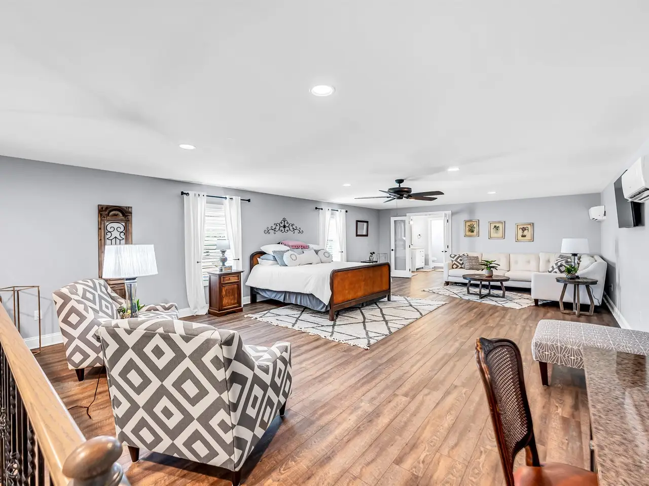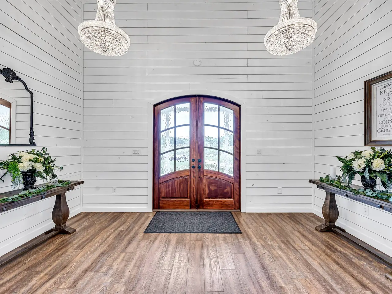 Nestled on 23 acres of picturesque land, this venue offers a blend of luxury, functionality and charm. At the heart of this estate sits a grand 8,500 square foot home with a two-story living room, two kitchens and dining areas, multiple decks, balconies and a patio. Outside discover all the possibilities for entertainment and celebration. A charming barn, wedding chapel and multiple outdoor areas provide surroundings for unforgettable events. Three income producing rental homes are also located on the property along with a working cattle/hay barn and a pond. Whether you envision a serene family retreat, a bustling farm or lucrative income producing venue, this property offers endless potential.