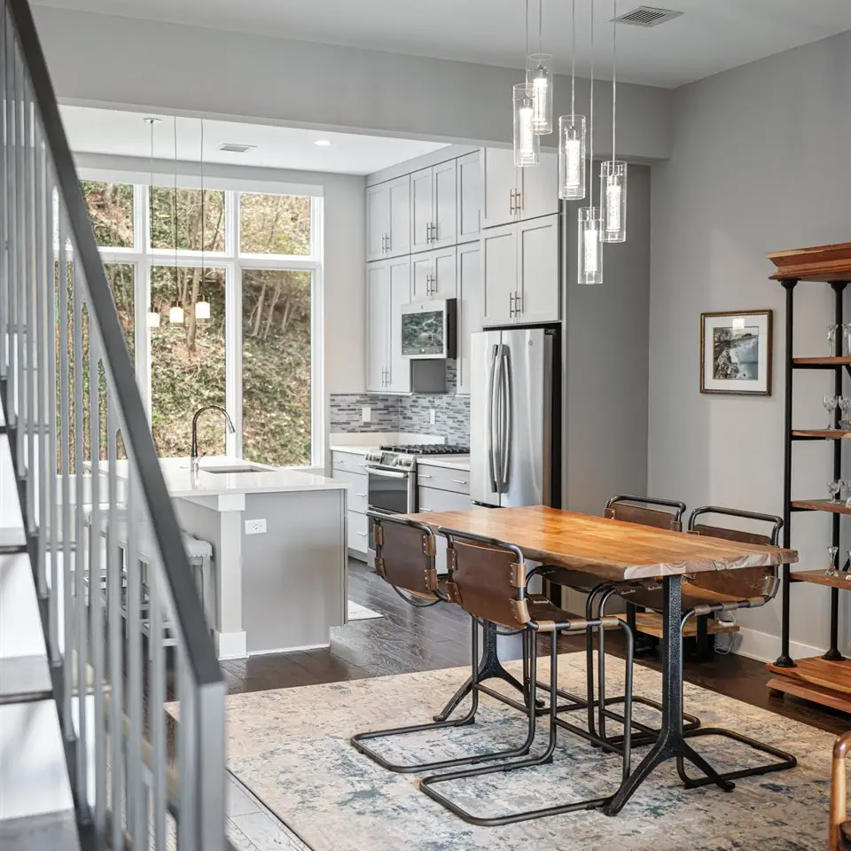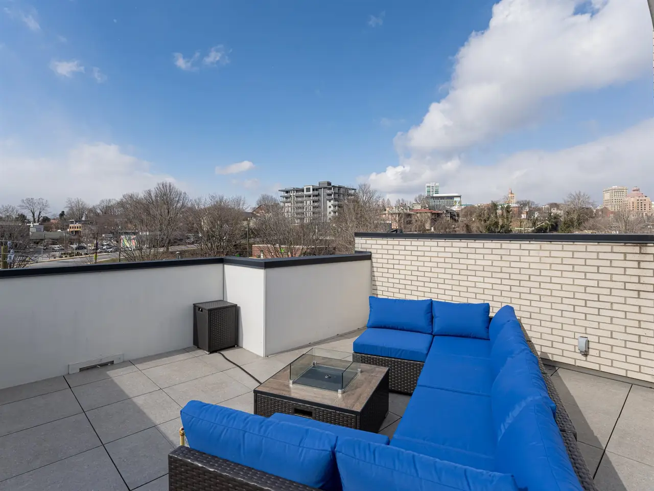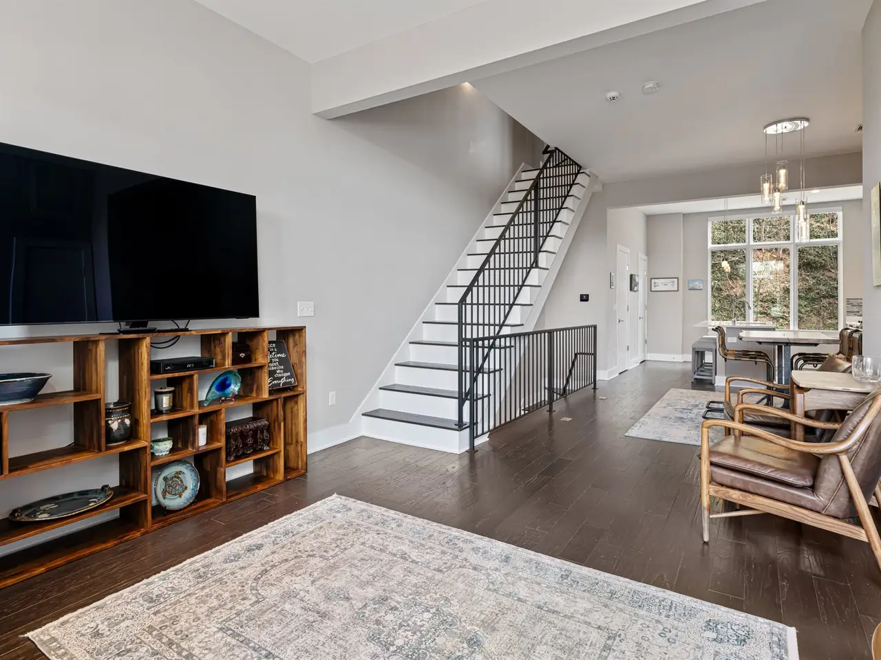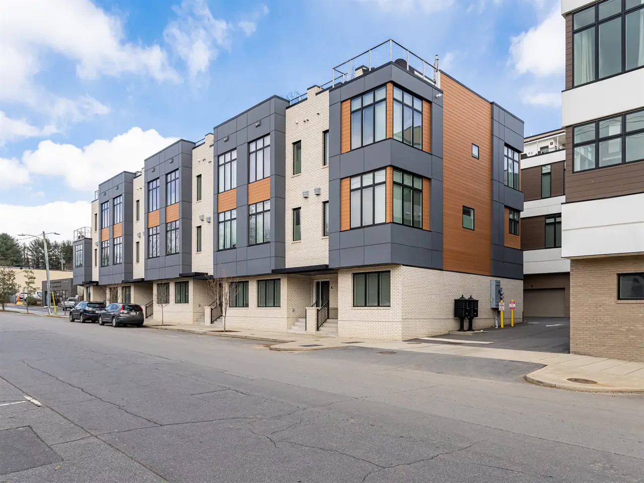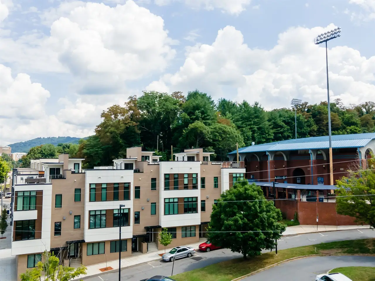 Experience the epitome of modern urban living in this stunning 3-bedroom, 3.5-bathroom townhome in the heart of downtown Asheville. Designed with sleek contemporary architecture, this exquisite residence features expansive windows that flood the space with natural light, soaring 10-foot ceilings, and a thoughtfully designed open-concept main living area. Every bedroom is a private retreat, complete with en-suite bathrooms, offering both luxury and comfort. The three-level interior is complemented by a huge, private rooftop terrace, perfect for entertaining or unwinding under the stars, with gas hookups for grill and firepit. For ultimate convenience, enjoy the attached two-car garage and the option for a private elevator. Nestled in an unbeatable location, just one block from the vibrant Brewery District, McCormick Field, and mere moments away from the charm & culture of downtown Asheville. (not in a flood zone)