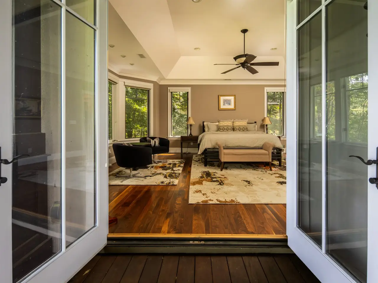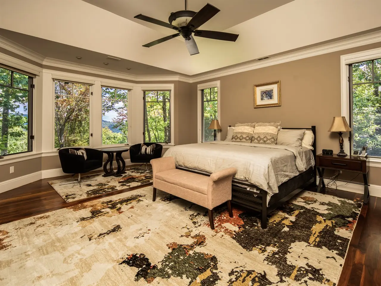 Tucked within the prestigious gated community of Poplar Ridge, this stunning custom-built home offers the perfect blend of privacy, comfort, and convenience. Surrounded by nature, enjoy peaceful mountain views from not one, but two expansive covered decks or enjoy your evening meal on the screened porch. Step inside to a spacious great room featuring a soaring cathedral ceiling and a dramatic stacked stone fireplace. The gourmet kitchen is a chef's dream, complete with custom cabinetry, an oversized center island, and abundant built-ins for stylish functionality. Gleaming walnut hardwood floors span the entire main level. Expansive primary suite on the main level and three bedrooms on the lower level?one very spacious with a kitchenette. A level driveway leads to a generous 3-car garage, and the beautifully designed outdoor areas are ideal for entertaining. Community amenities include a gated entrance, highspeed internet, cable, playground, and a scenic overlook/recreation area. Ideally located to downtown Asheville and even closer to South Asheville's top-rated dining, shopping and the regional airport.