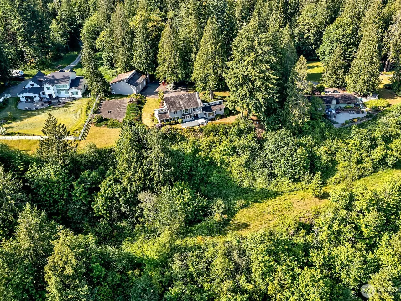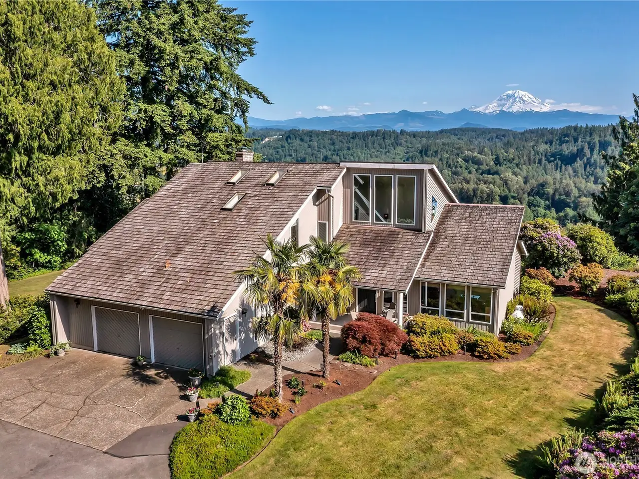 Experience Serene Luxury with Unparalleled Mt. Rainier Views. Nestled on a private 2.62-acre lot, 4-bedroom, 2.75-bath custom home. Vaulted ceilings welcome you into the formal living and dining areas. Expansive kitchen, complete with a cozy breakfast nook, provides ample space for culinary creations and entertaining. Adjacent to the spacious family room are two dedicated offices, perfect for remote work. The primary bedroom features an en-suite bath and a private deck on the second level with breathtaking views of Mt. Rainier. Step outside to the main-level deck with hot tub and meticulously maintained nature-inspired landscaping. Sport court with basketball hoop. Oversized 40'x40' shop for all your toys. Make this your next home!!