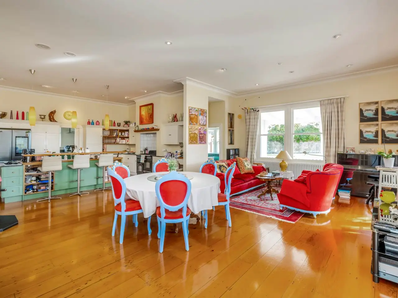 Open-plan dining area with courtyard access