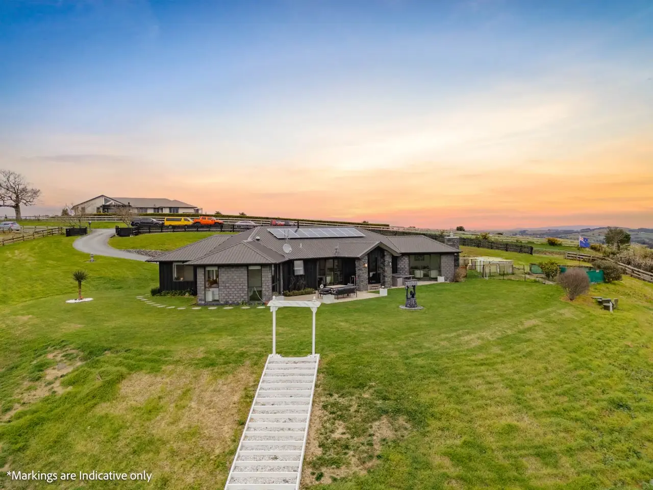 Perched on a superb hilltop location, this modern 259sqm home captures sweeping views of the city, harbour and surrounding countryside—all just 2.7km from the motorway for easy access. Built in 2016 and set on 1.20 hectares of prime Ramarama land, this property perfectly balances modern efficiency with a relaxed rural lifestyle. Constructed in brick, board and batten with striking Schist features, double glazing, a colour steel roof and solar power system (currently contracted to SolarCity), this home is designed for sustainability, durability and low maintenance. Zoned for Ramarama School, and only a short drive to Drury, Pukekohe and ACG Strathallan, the location combines convenience with lifestyle appeal. Step inside and be welcomed by an entry hall with a versatile bedroom (or home office) before flowing into the sun-filled open plan living areas. The designer kitchen impresses with granite benchtops, a large oven with gas hobs, steam oven, pizza oven, butler’s pantry, and adjoining laundry with excellent storage. The spacious dining and family living seamlessly connect to covered and open-air entertaining areas, while the formal lounge with a feature Schist fireplace creates the perfect cosy retreat. Accommodation includes 5 well-appointed bedrooms with built-in robes, a family bathroom with bath and shower, plus a powder room. The master suite is a private sanctuary with patio access, a walk-in wardrobe and a luxurious ensuite with double vanities. One bedroom has its own desk the kids can use for study and a single bedroom provides an option of working from home. A triple internal-access garage and a carport provides ample parking and workspace, while expansive patios set the scene for entertaining or quiet relaxation amid picturesque surrounds. This thoughtfully designed home delivers sophistication, space and scenic beauty in one of Franklin’s most desirable lifestyle locations. Early inspection is highly recommended—homes of this calibre are seldom available. FEATURES: · Elevated setting capturing sweeping City, Harbour, and serene rural views · Grand double-door entry with study/home office off the foyer · Light-filled, open plan living flowing seamlessly to outdoor entertaining areas · Designer kitchen with island bench, breakfast bar, and butler’s pantry. · Spacious dining and family living opening to sun-soaked outdoor spaces · Covered and open patios wrapping around living areas and master suite · Separate formal lounge with schist feature fireplace and slider doors to outdoors · Year-round comfort with heat pump · Generous linen cupboard for added storage · Three oversized bedrooms, each with built-in wardrobes · Expansive master retreat with patio access, walk-in robe, and double vanity ensuite · Large dedicated laundry with excellent built-in storage · solar power system with conditions · Triple car garage with internal access plus 2 x 22,500L water tanks · Convenient location: 2.9km to Ramarama School, 4.4km to Ararimu School, 14.7km to ACG Strathallan · Easy access to Drury (8.6km) and Pukekohe Township (15.9km) for all amenities Auction: 62 Highbrook Drive, East Tamaki on Wednesday 17 September 2025 at 1:00PM (unless sold prior)