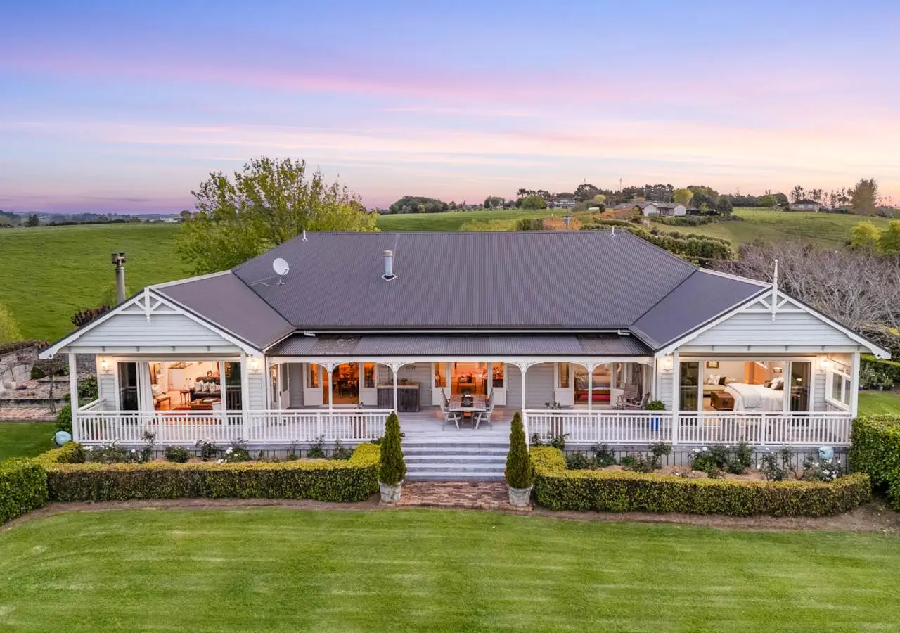 Whether it is cattle / horses / calf rearing / orchading / children rearing / you choose! Or come up with your own idea! Welcome to a premier piece of land offering the best of rural living, just 40 minutes from Auckland. Nestled in the picturesque Karaka countryside, this expansive property offers breathtaking views of the Manukau Harbour and the iconic Sky Tower, all within an elevated setting that exudes tranquillity and privacy. The stunning 330m2 replica Villa is artfully designed for entertaining with style and is surrounded by beautiful mature gardens. The open plan kitchen (with large scullery) and family room flow into formal dining and lounge, all with sweeping north facing views. Step out to the sunny full-length classic verandah to enjoy entertaining outdoors with views out to the Manukau Harbour and beyond. A real sun trap and a special spot to entertain family and friends anytime of the day. Authentic recycled kauri floors and a gentle elegance blend easily with all the modern amenities you expect from a solid new home, including double glazing in areas, insulation, heat transfer system, and quality fixtures. Beautifully presented with four bedrooms plus study/storage room, the light-filled master suite includes a walk-in-wardrobe, spacious ensuite, and doors opening out to the verandah, another favourite spot for a morning coffee. A separate laundry and large garage with storage and mudroom complete the package. Offering all the space and functionality needed for any type of farming, (19.86ha), this thoughtfully designed layout includes well-raced paddocks, covered yards, 70 x 70m grass arena, 4 bay shed. The 174 sqm barn/stable complex includes a tack room/tool shed, tie up stalls, a self-contained accommodation, ideal for extended family or farm workers. There is a 2 x bay hay shed at the end of the race for easy access to hay in the winter, and good water supply. The arable soil is ideal for cropping, and there has been an avocado farm on site in the past. With its gracious villa charm alongside all the reassurance that comes from living in a meticulously maintained modern home, this unique property is immersed in peaceful country ambiance at the end of a tree-lined drive. • Replica villa home, 4 bedrooms, 3 bathrooms, separate WC • Stunning polished kauri floors, 3m stud • Country kitchen, with great scullery • Open plan living, separate dining & formal lounge • Expansive north facing verandah, great views • Views to the Manukau Harbour and city lights • Mostly flat to easy contour, well fenced into approx 20 paddocks • A barn / stable complex with a self-contained 2 bedroom accommodation • 245 sqm structure with 8 large covered yards, great parking area • 4 bay shed with high stud, bore & tank water supply • Approx 16 kms to m/way at Drury & Karaka • Approx 38 kms to the Auckland Airport NOTE: while this property is being marketed GST inclusive this Vendor is registered for GST so any registered person would purchase Plus GST if any. Properties of this calibre in popular Karaka are rare and the owners who developed the property are ready to down-size - make your appointment today to view, you won’t regret it! Tender: Closes on Thursday 21 November 2024 at 4:00PM (unless sold prior)