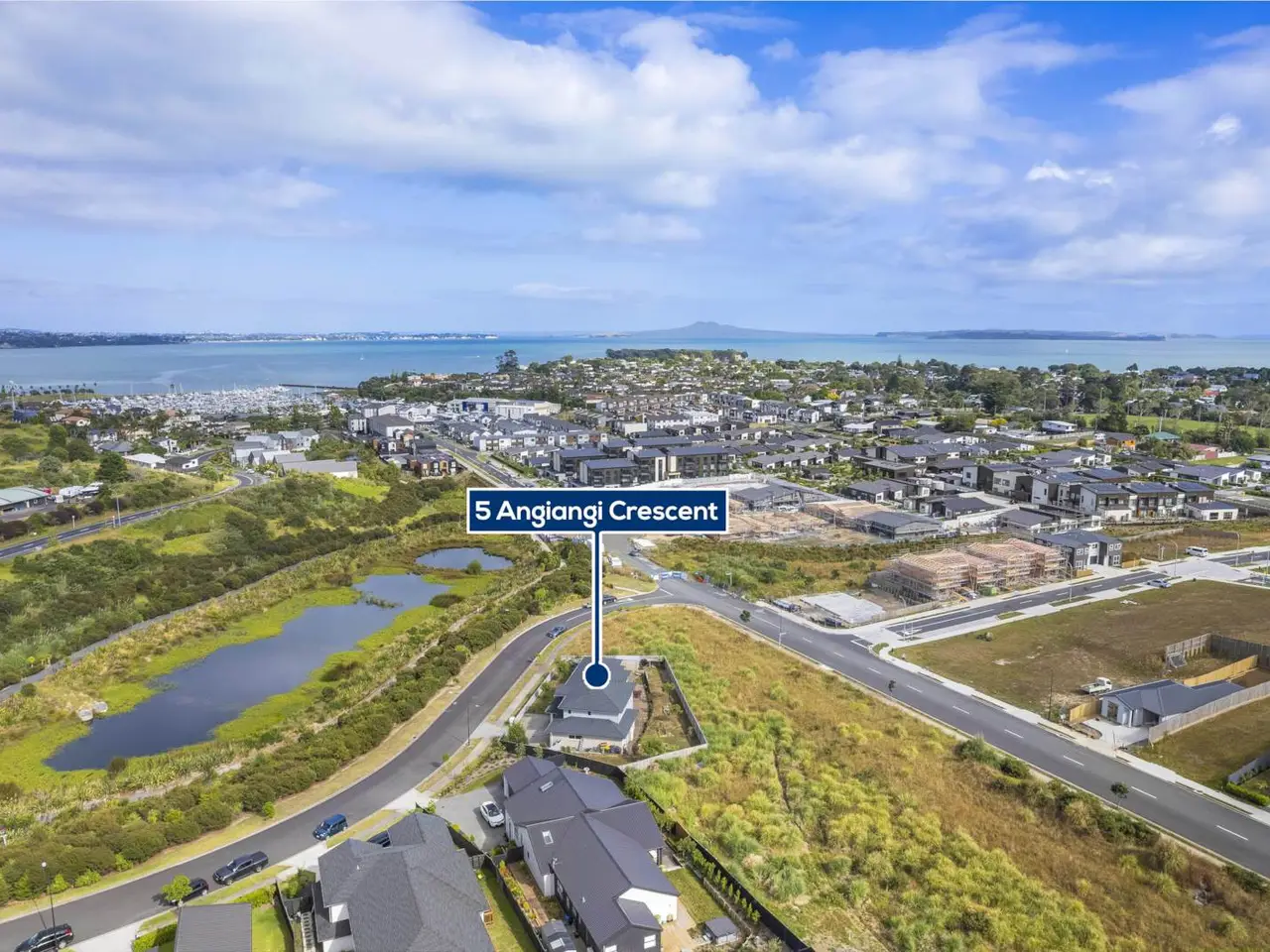 Welcome to 5 Angiangi Crescent, a remarkable 5-bedroom, 3-bathroom home that redefines family living. With 357m² of floor space and a 944m² section, this residence delivers an exceptional blend of expansive living and has the added bonus of 3 car garaging.The lower level features a large open-plan kitchen, dining, and lounge area, seamlessly connected to a second living room. Both spaces open to a north-facing deck through bi-folding doors, providing the perfect environment for outdoor entertaining. The modern kitchen is a chef’s dream, with a double oven, gas cooktop, and a cleverly concealed scullery, ensuring both style and practicality. A bedroom, bathroom, and internal garage access, along with a separate laundry, complete this level.Upstairs, the master suite is an expansive retreat, complete with its own ensuite and walk-in wardrobe. The four additional bedrooms are all generously sized, while a large void area at the top of the stairs offers a versatile space that could easily serve as a third living room or study.Comfort is guaranteed year-round, with central air conditioning across three zones and a ventilation system throughout. The striking wooden flooring, combining rosewood and vitex on the lower level, adds warmth and sophistication to the modern aesthetic.Located in a peaceful street with a reserve opposite, this home is just a 10-minute walk to Pine Harbour Marina, where you’ll find cafés, restaurants, and a convenient ferry service that takes you to downtown Auckland in just 35 minutes.A "5 out of 5" home that delivers on every level - spacious and meticulously designed for modern family living.