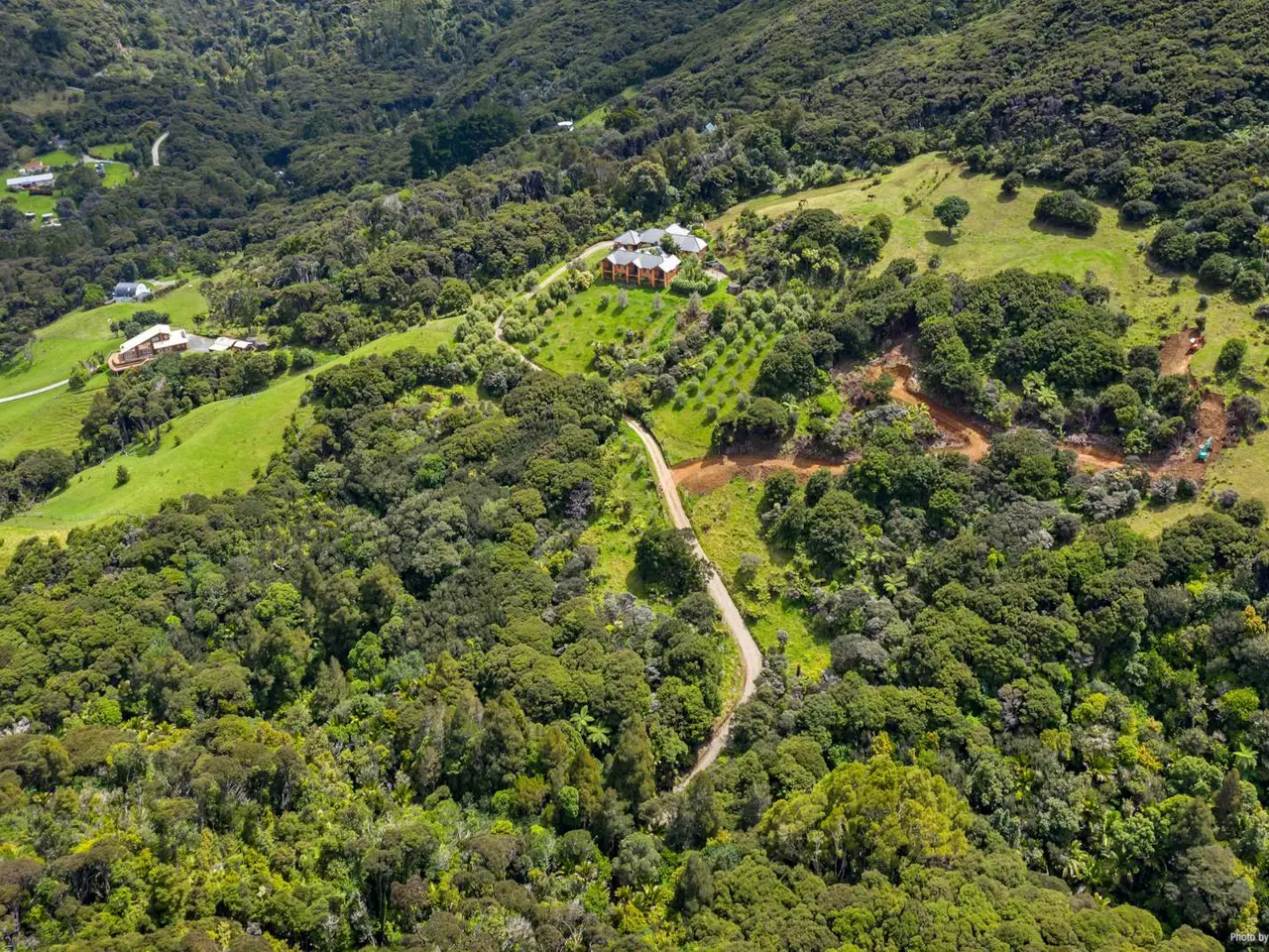 This luxurious family retreat is situated on 5 hectares featuring panoramic vistas over lush native bush, Tryphena Harbour, the Coromandel and Rangitoto Island in the background. Impressive in its substantial lodgings and surrounding natural beauty.The main building consists of a spacious and relaxing lounge that showcases the stunning view, a large kitchen, entrance foyer, basement wine cellar and sumptuous master bedroom with ensuite.Connected via covered walkways and beautiful landscaping are three units each with their own bathroom and tea/coffee making facilities that can be utilised by friends and family. Each of the three double rooms open onto their own private balcony where guests can enjoy the spectacular water and valley views - a place to relax in the sun and listen to the birds symphony.Whether you're seeking a tranquil escape or entertaining friends and family, this property offers a truly idyllic island experience. With a helicopter pad at the top of the site or a short drive to the Stonewall Store, Currach Irish Pub and Tryphena village, convenience meets luxury in this exclusive retreat.This is an exceptional property in an exceptional location, the vendors have reduced their price to sell! Call now!