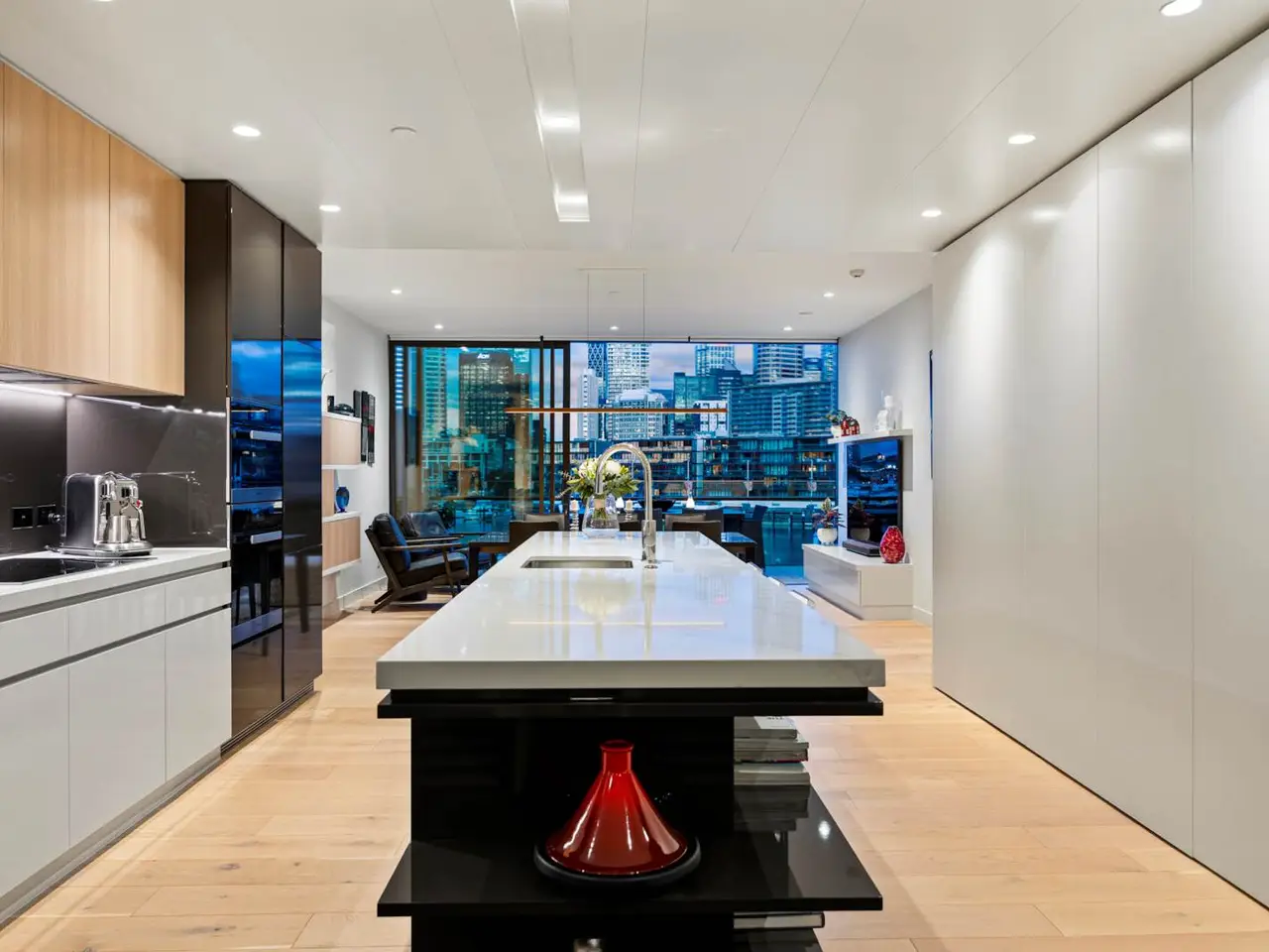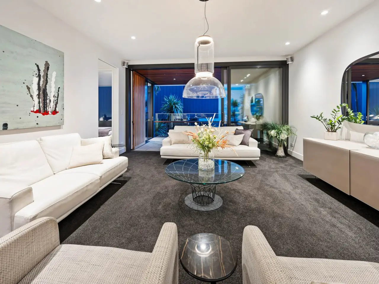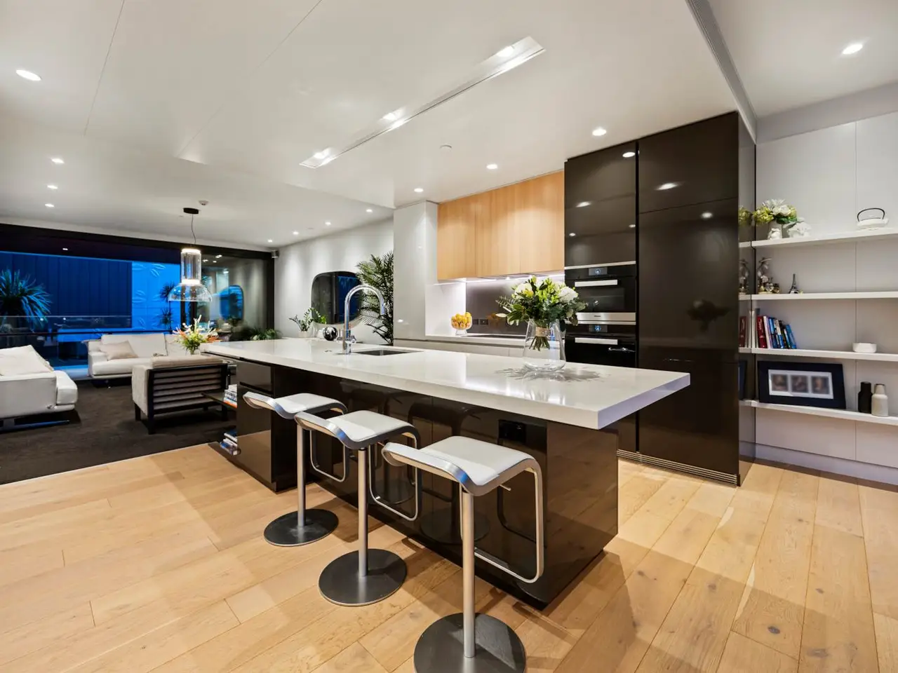 This sumptuous two bedroom apartment in the acclaimed 132 Halsey Residences aside the Viaduct Harbour in the heart of the vibrant Wynyard Quarter is simply stunning. With the CBD, the harbour, an array of celebrated cafés, restaurants, the ASB Waterfront Theatre, Events Centre, and the five-star Park Hyatt Hotel at your doorstep, where else would you want to be. Designed for luxurious city living with uncompromising quality, the apartment encompasses 134m² of living plus 33m² of balconies, the open-plan layout, running east to west, flows seamlessly to two generous balconies, perfect for morning coffee or evening entertaining whilst soaking up the captivating Viaduct Harbour vista and glittering city skyline. This sophisticated home has so many stunning features, a bespoke kitchen fitted with premium Miele appliances, high-gloss lacquer cabinetry, intelligent storage and a striking benchtop. The deluxe, fully tiled bathroom showcases European fittings, while the master suite indulges with its own private balcony access, a walk-in wardrobe, and a sumptuous ensuite. High-quality finishes throughout include porcelain stoneware and warm timber accents, recessed and feature lighting and automatic blinds, along with luxurious plush pile carpet. Add to this a dedicated lobby area to just one other apartment, secure car parking, a storage unit and access to premium residents’ first-class amenities, including a gym, boutique 16-seat cinema, and business centre. This is an opportunity for the most discerning buyer seeking the very best in location, luxury, and lifestyle.