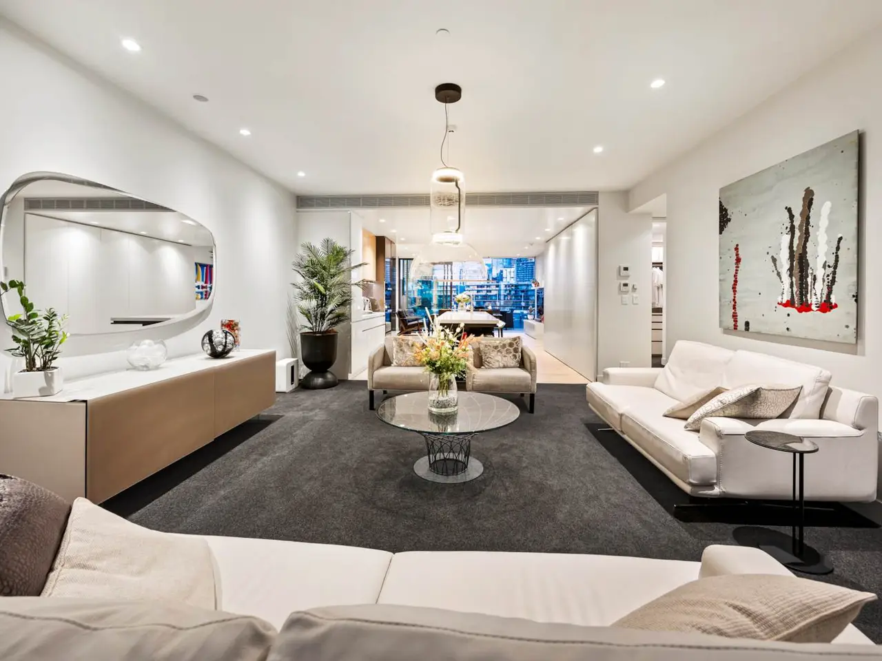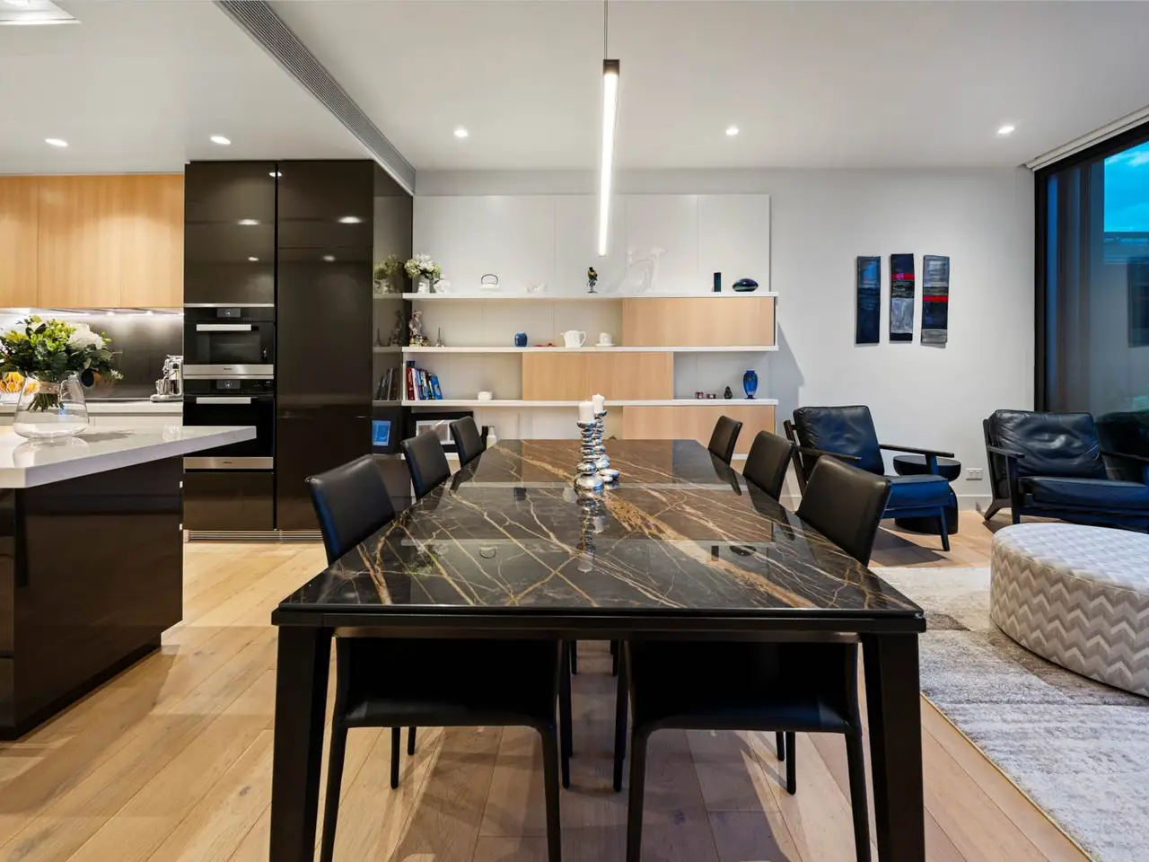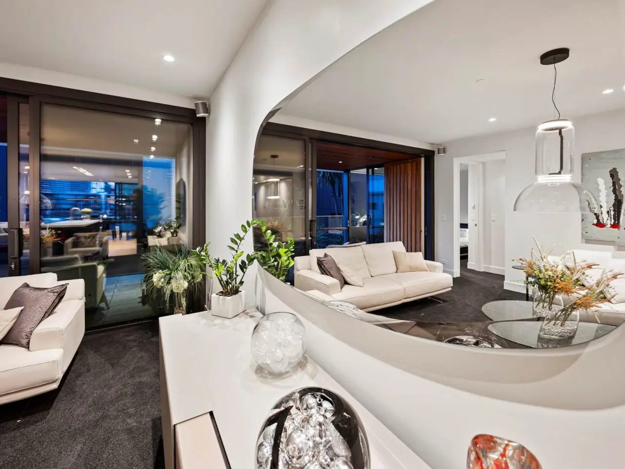 This sumptuous two bedroom apartment in the acclaimed 132 Halsey Residences aside the Viaduct Harbour in the heart of the vibrant Wynyard Quarter is simply stunning. With the CBD, the harbour, an array of celebrated cafés, restaurants, the ASB Waterfront Theatre, Events Centre, and the five-star Park Hyatt Hotel at your doorstep, where else would you want to be. Designed for luxurious city living with uncompromising quality, the apartment encompasses 134m² of living plus 33m² of balconies, the open-plan layout, running east to west, flows seamlessly to two generous balconies, perfect for morning coffee or evening entertaining whilst soaking up the captivating Viaduct Harbour vista and glittering city skyline. This sophisticated home has so many stunning features, a bespoke kitchen fitted with premium Miele appliances, high-gloss lacquer cabinetry, intelligent storage and a striking benchtop. The deluxe, fully tiled bathroom showcases European fittings, while the master suite indulges with its own private balcony access, a walk-in wardrobe, and a sumptuous ensuite. High-quality finishes throughout include porcelain stoneware and warm timber accents, recessed and feature lighting and automatic blinds, along with luxurious plush pile carpet. Add to this a dedicated lobby area to just one other apartment, secure car parking, a storage unit and access to premium residents’ first-class amenities, including a gym, boutique 16-seat cinema, and business centre. This is an opportunity for the most discerning buyer seeking the very best in location, luxury, and lifestyle.