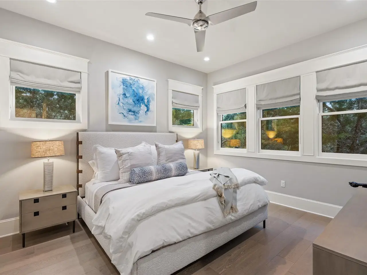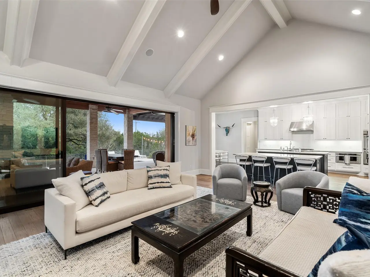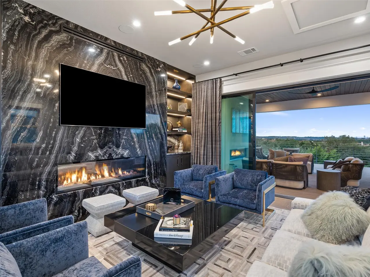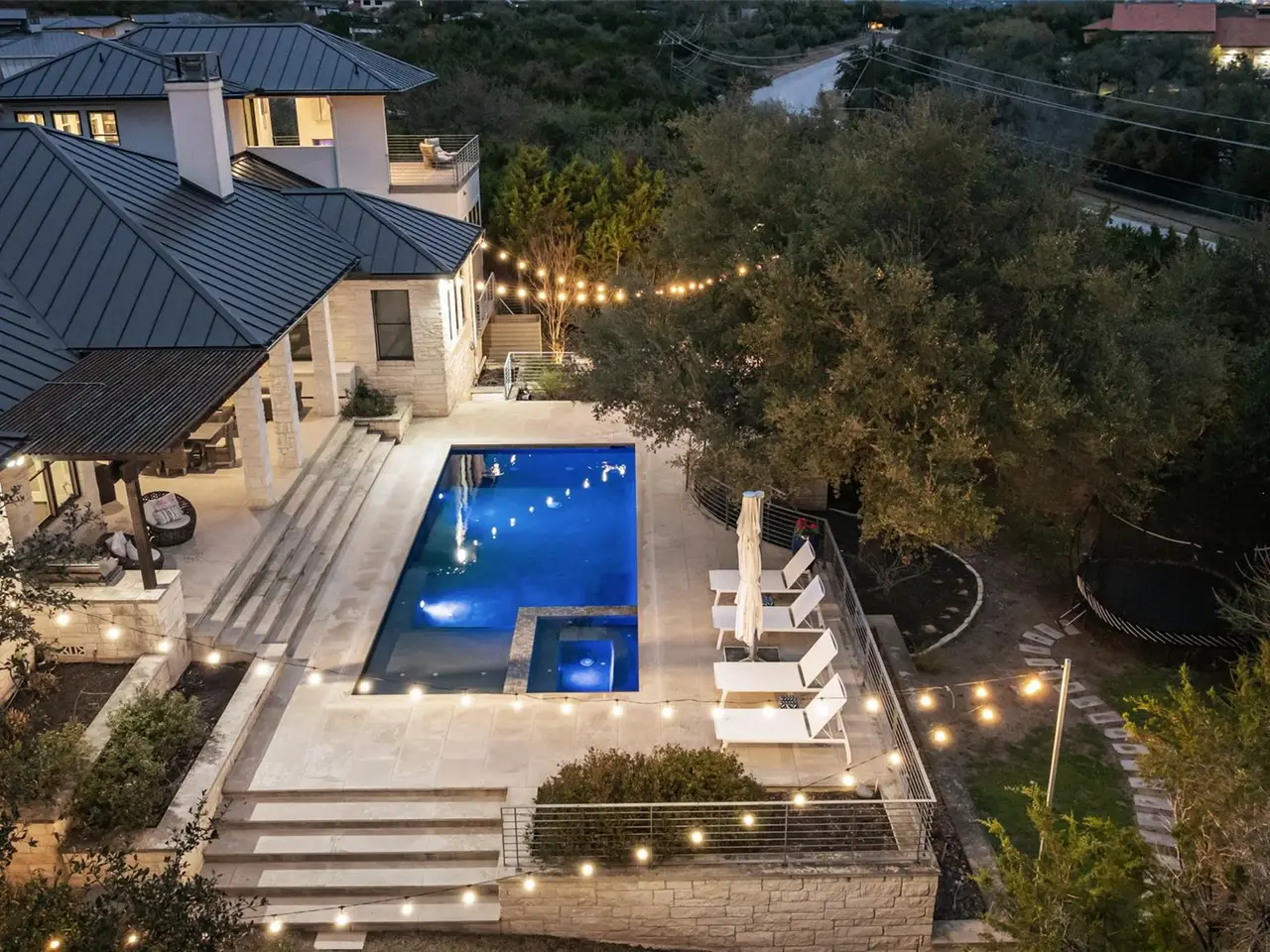 Welcome to this exceptional estate in the prestigious gated community of Verano in Barton Creek. Originally built in 2013, this home was elevated with a remarkable addition in 2023, blending timeless elegance with modern luxury. Situated on 1.087 acres of lushly landscaped grounds, this spacious 6-bedroom, 5 full bath, and 2 half bath residence offers an unparalleled living experience. Every detail of this home is designed for comfort and sophistication, featuring tall ceilings, expansive living areas, and state-of-the-art technology throughout. The main level boasts six generously sized bedrooms, an elegant media room, a dedicated office, and multiple dining and living spaces with 4 fireplaces, perfect for entertaining or family gatherings. Upstairs, an entertainment room with a private balcony provides breathtaking views of downtown. Step outside into a resort-style backyard, complete with a sparkling pool, relaxing spa, outdoor kitchen, and cozy fire pit, all designed for year-round enjoyment. The invisible fence and iron fencing provide both security and seamless aesthetics, while the Tesla charger adds modern convenience. Nestled in the heart of Barton Creek, this wired-to-the-max smart home offers both privacy and proximity to top-tier amenities. Experience the best of Austin living in this one-of-a-kind estate--schedule your private tour today!