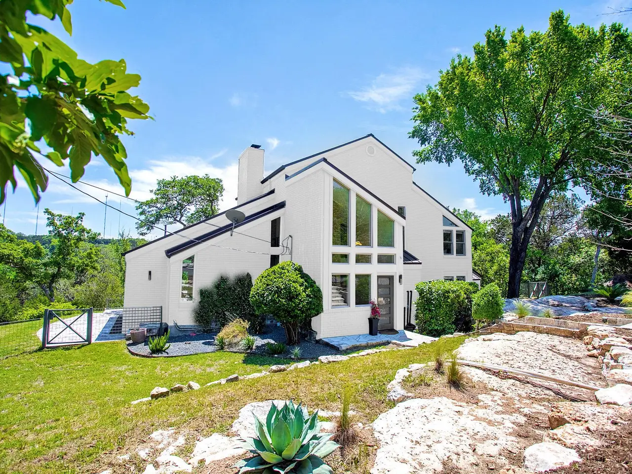 PANORAMIC LAKE AUSTIN VIEWS! Escape to your own private retreat just 30 minutes from downtown Austin in this stunning, one-of-a-kind home. Tucked away on a quiet cul-de-sac with no direct neighbors, this lush, tree-filled acre offers privacy, serenity, and sweeping views of Lake Austin. Unique architectural details--including a dramatic double-sided, two-story fireplace--add character and warmth to the open-concept living space. Walls of Andersen windows and expansive patios blur the line between indoors and out, creating the ultimate setting for lake life. The chef-worthy kitchen is a showstopper, featuring Bosch appliances, refrigerator drawers, a spacious center island, and endless custom storage. The main level includes the main living and dining areas plus two guest bedrooms with a shared Jack-and-Jill bath. Upstairs, the luxe primary suite enjoys jaw-dropping lake views and direct patio access, along with a flexible second living area and a fourth bedroom with en-suite bath. There's plenty of room to add a pool, outdoor kitchen, or anything else you envision. Just 4 minutes to iconic Ski Shores Cafe and the marina--Lake Austin is practically in your backyard. With a super-low 1.5% tax rate, owned solar panels (not shown in photos), and an EV charger included, this home offers luxury, efficiency, and a lifestyle you'll love. Don't miss this rare opportunity to own a slice of Lake Austin paradise!