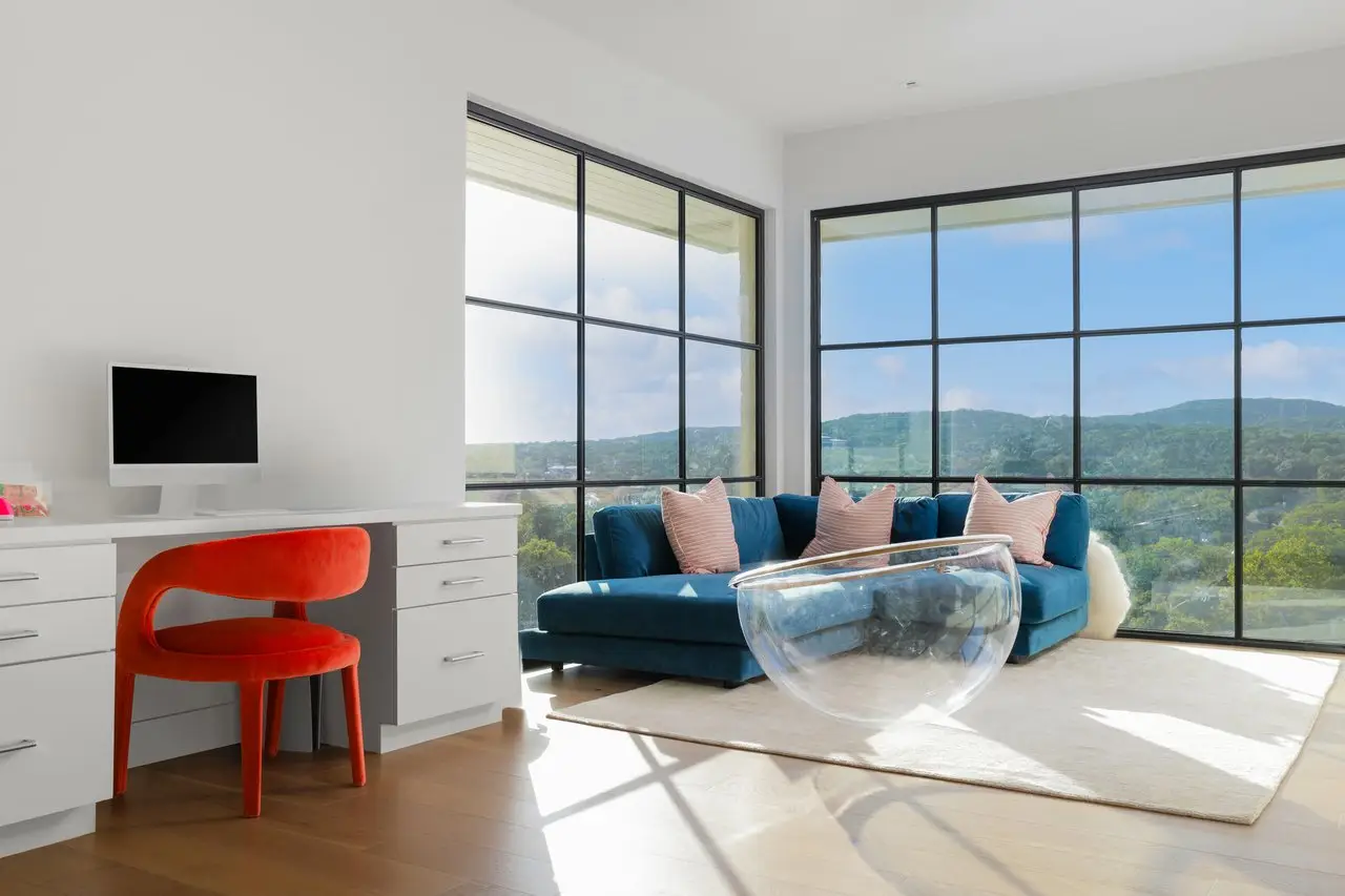 • Floor-to-ceiling glass windows with breathtaking lake views