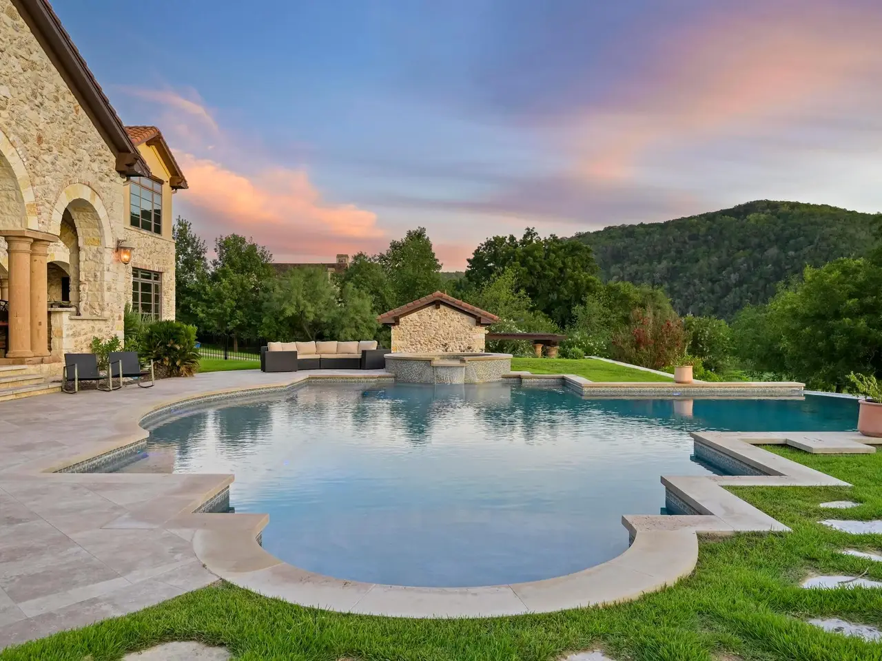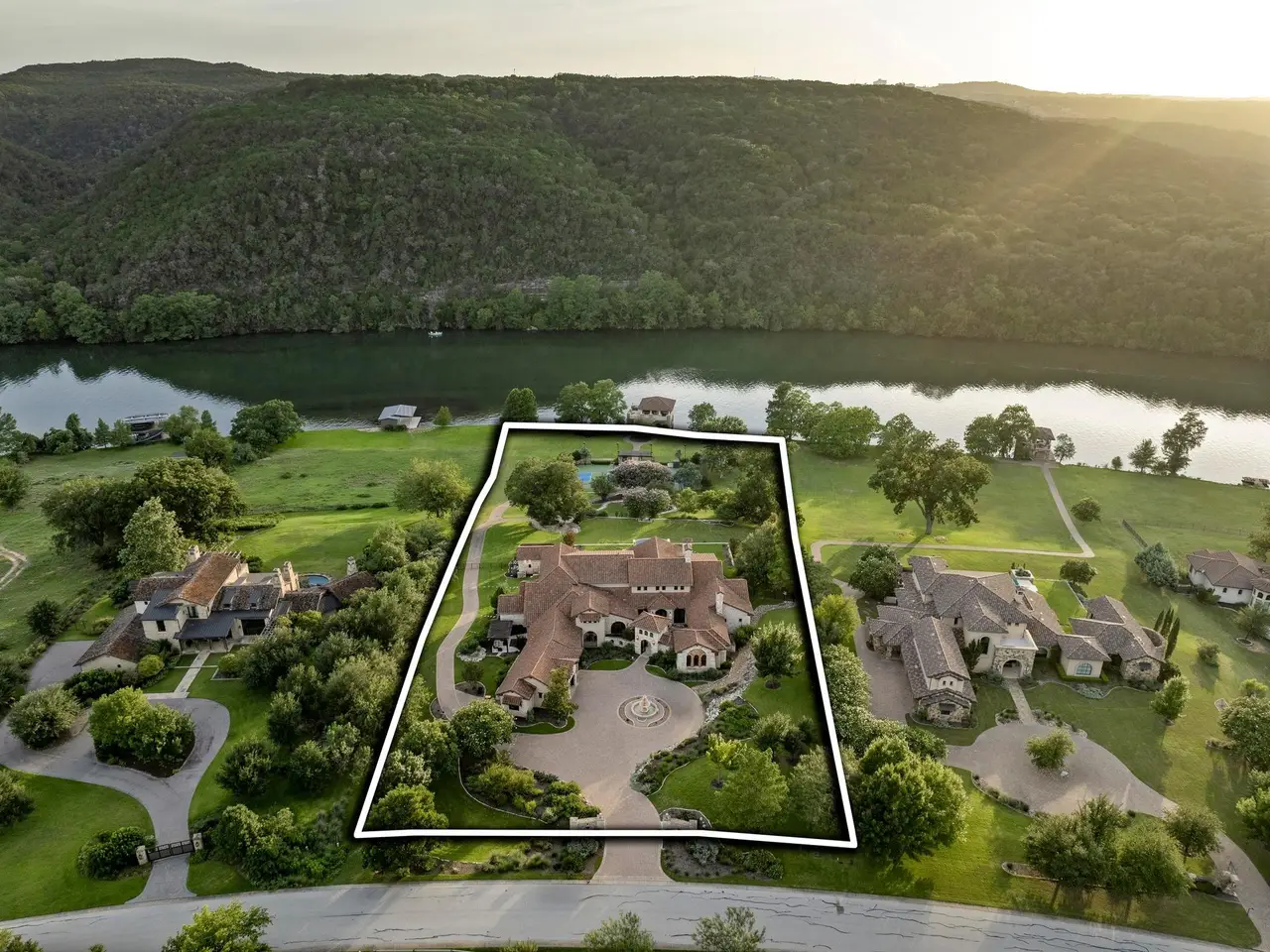 Villa Caslano is a breathtaking Lake Austin estate offering +/- 280' feet of pristine shoreline, directly across from the protected Balcones Nature Preserve. Set behind private gates, this expansive property blends timeless European elegance with resort-style amenities. The grand great room features 30-foot vaulted ceilings and flows into a chef's kitchen outfitted with two Sub-Zero refrigerators, Wolf double ovens, a six-burner gas cooktop with griddle, and dual Miele dishwashers. Rich materials and artisan craftsmanship are found throughout--from hand-carved stone archways and wood beams to custom glass globes and ironwork. Additional highlights include a temperature-controlled wine room for over 200 bottles, a stunning home theater (with blackout shades and lake views), and a luxurious office with private study. Designed for effortless indoor-outdoor living, the home's covered loggia features a full outdoor kitchen and fireplace overlooking the infinity pool, pool house, and full-size lighted tennis court. The two-story boat dock includes two boat slips and a fully integrated outdoor living space with a sun deck, kitchen, and audio/visual system--ideal for entertaining. A mosquito control system, private well, and Italian marble fountain elevate the estate's luxurious lifestyle. The primary suite is a true sanctuary with a domed entry and one of the most spectacular closets in Austin--complete with floor-to-ceiling shoe racks, a sliding ladder, and its own laundry and beverage station. The spa-like bathroom features a Bain Ultra soaking tub, dual rain and handheld shower heads, and six body sprayers. Ideally located just a golf cart ride from the world-class Lake Austin Spa and close to the UT Golf Club, this estate offers exceptional proximity to top-rated schools, restaurants, and retail in one of Austin's most coveted gated neighborhoods. Tax and assessed values are estimates for illustration purposes only. All figures should be independently verified.