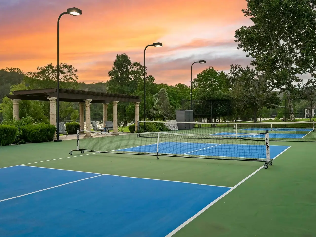Full-size lighted tennis court