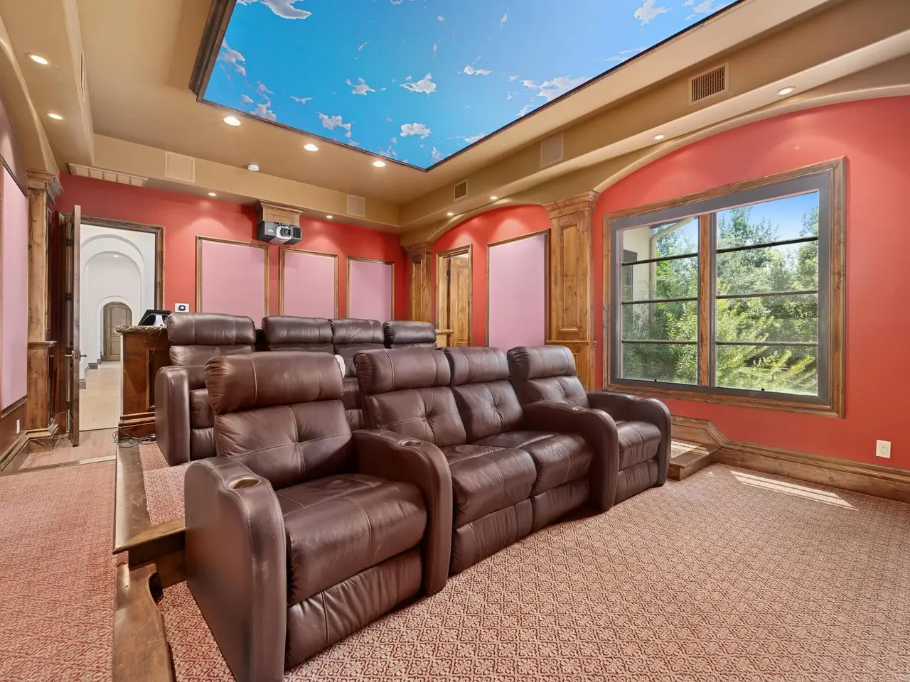 Home theater with lake views