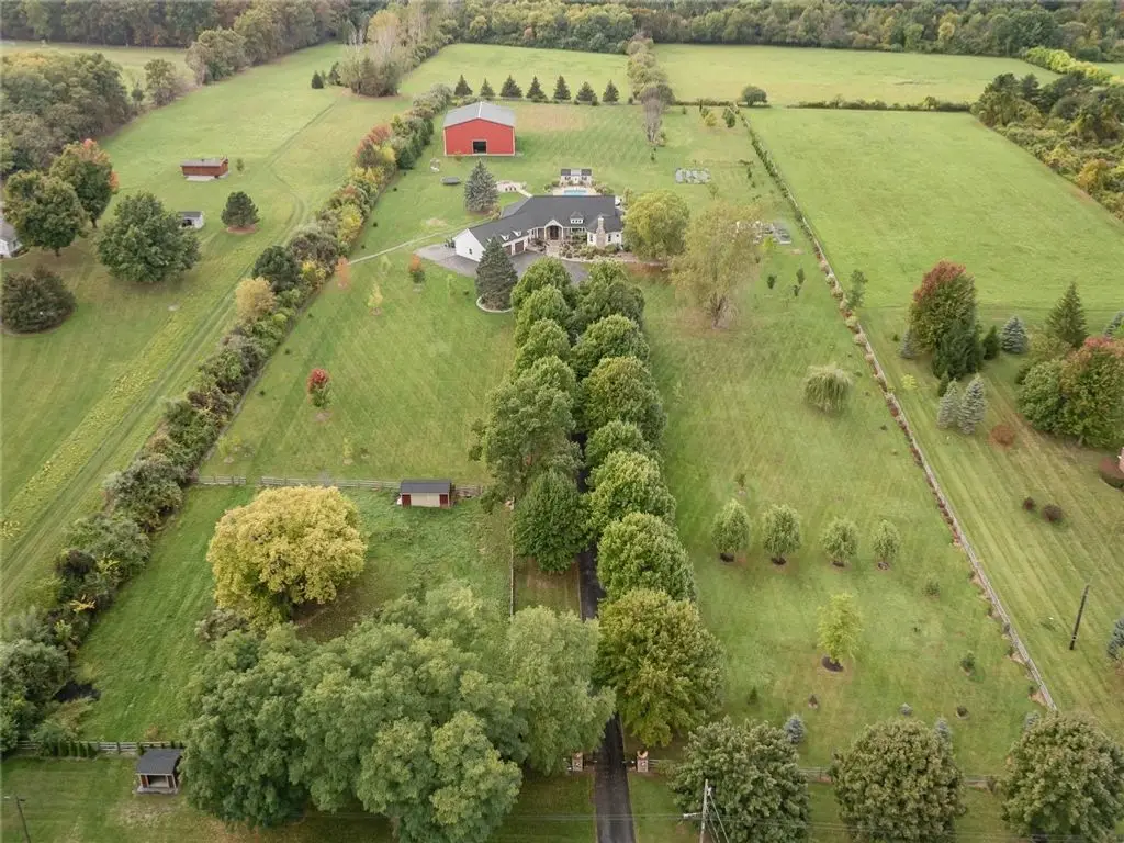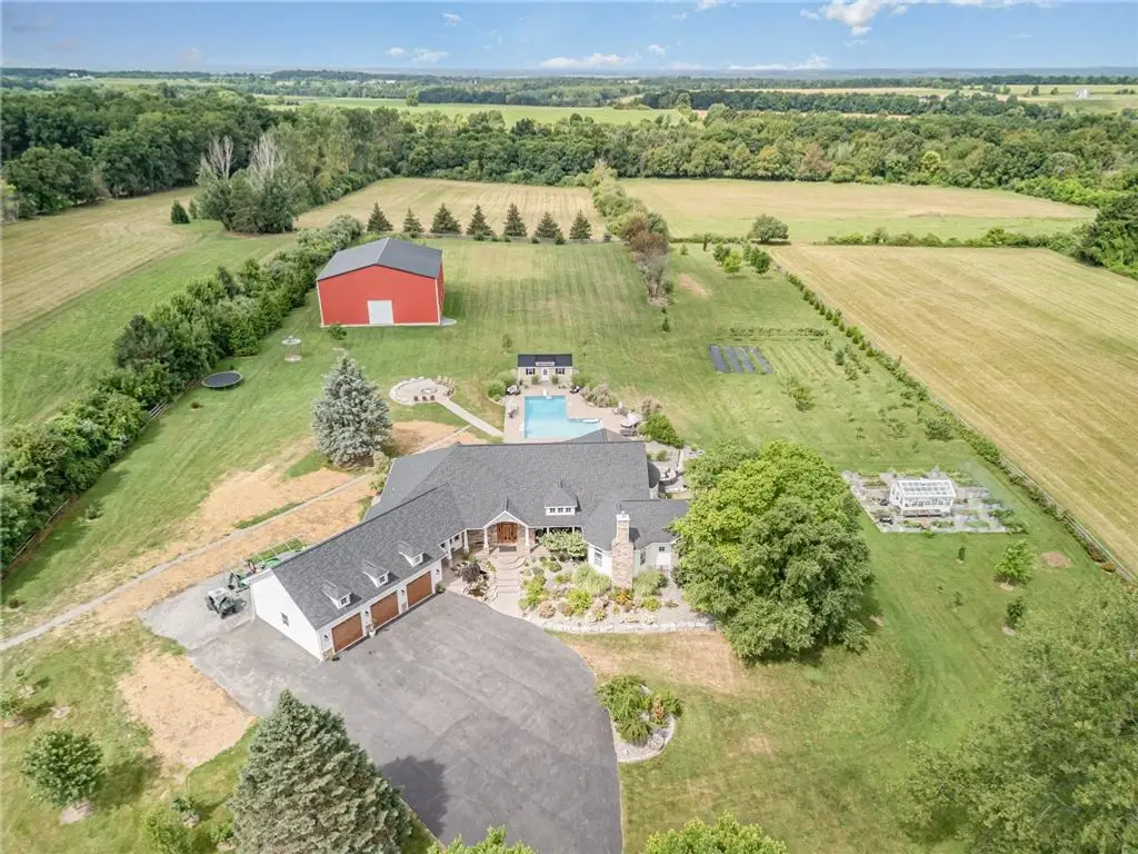 ONE-OF-A-KIND ESTATE IN THE SOUGHT-AFTER HONEOYE FALLS - LIMA CSD. SET ON NEARLY 7 ACRES, COMPLETELY FENCED AND BEAUTIFULLY LANDSCAPED. ENTER THROUGH THE GATED, TREE-LINED DRIVEWAY AND ONCE INSIDE THIS COMPLETELY UPDATED ESTATE, A GRAND FOYER OPENS TO A SPRAWLING KITCHEN WITH EAT-IN BREAKFAST AREA THAT FLOWS INTO THE LIGHT-FILLED GREAT ROOM WITH SOARING CATHEDRAL CEILINGS. THE CHEF'S KITCHEN IS A SHOWPIECE WITH INDUCTION COOKTOP AND BUILT-IN INDOOR PIZZA OVEN, WHILE AN ENTERTAINER'S DREAM AWAITS WITH A HUGE WET BAR. THE EXPANSIVE DINING AREA, WRAPPED IN WINDOWS, CREATES THE PERFECT SPACE FOR FAMILY GATHERINGS. THE OWNER'S SUITE FEATURES A MASSIVE WALK-IN CLOSET AND MASTER BATH UPDATED IN 2025, WITH HIS AND HERS VANITIES, WALK-IN SHOWER, HEATED FLOORS, WHIRLPOOL TUB, AND MODERN FINISHES. THREE ADDITIONAL BEDROOMS INCLUDE WALK-IN CLOSETS AND UPDATED BATHROOMS (ONE WITH PRIVATE BATH, TWO CONNECTED BY JACK & JILL WITH DOUBLE VANITY). PRACTICALITY MEETS STYLE WITH A SPACIOUS MUDROOM WITH FLOOR-TO-CEILING BUILT-INS AND OVERSIZE CUBBIES FOR WINTER GEAR, SPORTS EQUIPMENT, AND MORE. FIRST-FLOOR LAUNDRY WITH OVERSIZED SINK AND AMPLE CABINETRY. THE OVER 2,000 SQ FT FINISHED BASEMENT WITH FULL BATH PROVIDES BONUS SPACE CURRENTLY USED AS THEATRE, GAME ROOM AND WINE ROOM. SPACIOUS 3-CAR GARAGE. OUTSIDE, ENJOY AN EXTRA-LARGE POOL, HOT TUB, AND ENTERTAINING AREA. ADDITIONALLY THERE'S A NEW 4,260 SQ FT FLEX-SPACE BARN, INSULATED AND HEATED, CURRENTLY HOSTS PICKLEBALL, TURF FIELD AND FITNESS EQUIPMENT, WITH ENDLESS POTENTIAL. ADDITIONAL RUN-IN BARN WITH FENCED PASTURE, CHICKEN COOPS, AND GREENHOUSE WITH RAISED BEDS, FRUIT TREE ORCHARD, VINEYARD, AND BERRY PATCH. 20 MINUTES TO THE AIRPORT AND EASY ACCESS TO 390, TUCKED AWAY FOR YOUR PRIVATE OASIS. SINCE 2017, THIS ESTATE HAS BEEN COMPLETELY UPDATED. MORE THAN A HOME - IT'S A LIFESTYLE. TRULY ONE OF THE MOST UNIQUE AND SPECTACULAR PROPERTIES ON THE MARKET.