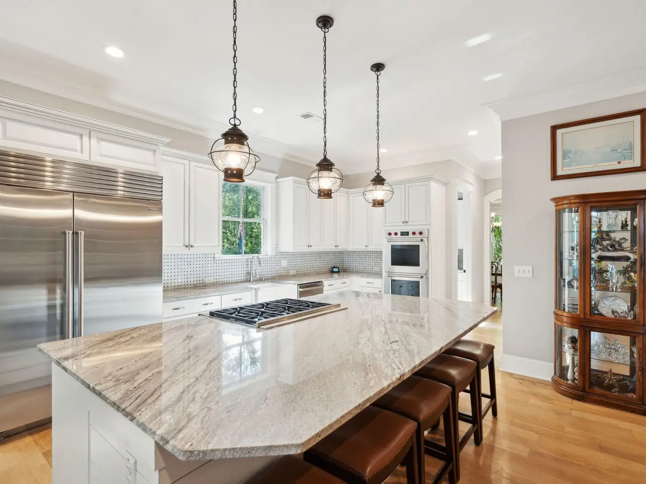 Breathtaking Marsh Views on the Wando River - Private 3-Acre Estate in Gated Pepper Plantation. Enjoy the ultimate Lowcountry lifestyle on 3 private acres overlooking the Wando River in the gated community of Pepper Plantation. Tucked at the end of a quiet cul-de-sac, this 5-bedroom, 5-bath custom-built home delivers elegance, privacy, and sweeping marsh-to-river views. The elevated, three-story home is designed for easy living and effortless entertaining. As you approach, a beautifully landscaped yard and wooded entry offer unmatched seclusion. The solid mahogany front door opens into a sun-drenched interior featuring white oak hardwood floors, high ceilings, and a seamless flow of space. A formal dining room and study flank the foyer, while the expansive great room and chef's kitchen span the rear of the home, capturing spectacular views. The kitchen is outfitted with top-tier appliances including a 48" Sub-Zero refrigerator, Wolf double ovens and gas cooktop, farmhouse sink, and granite countertops. A generous breakfast nook is wrapped in windows and overlooks the water, the perfect spot for family meals or morning coffee. The main-level primary suite is a private sanctuary with panoramic views of the Wando River, dual walk-in closets, and a spa-inspired bathroom with double vanities, walk-in shower with rain head, and soaking tub. An additional guest suite and full bath are also located on the ground floor. Upstairs are three additional bedrooms, one with an en suite bath, and two sharing a Jack & Jill, plus a large bonus room ideal for a media room, playroom, office or sixth bedroom. The ground level features a climate-controlled bonus space with a full bath, ideal for a home gym, artist's studio, or guest suite. The 3-car garage offers epoxy-coated floors, a workshop area, and ample storage. Step outside to your own private oasis. The screened-in porch with wood-burning fireplace opens to a spacious backyard with a travertine-surround saltwater pool, all framed by moss-draped oaks and uninterrupted marsh views. Enjoy outdoor dining, evening sunsets, or weekend gatherings in this truly exceptional setting. Additional features include: - 3-stop elevator - Whole-home generator - Standing seam metal roof - Impact-rated windows and doors - Fenced backyard with direct bathroom access from pool area Pepper Plantation is an exclusive enclave of custom homes offering privacy, natural beauty, and unique amenities. Residents enjoy an equestrian-style setting with a training track, riding trails, and a picturesque pavilion overlooking a freshwater lake, perfect for weddings, events, or community gatherings. Located just 12.5 miles from Isle of Palms beach and 15 miles from downtown Charleston, this community offers the perfect blend of quiet Lowcountry living with Charleston convenience.
