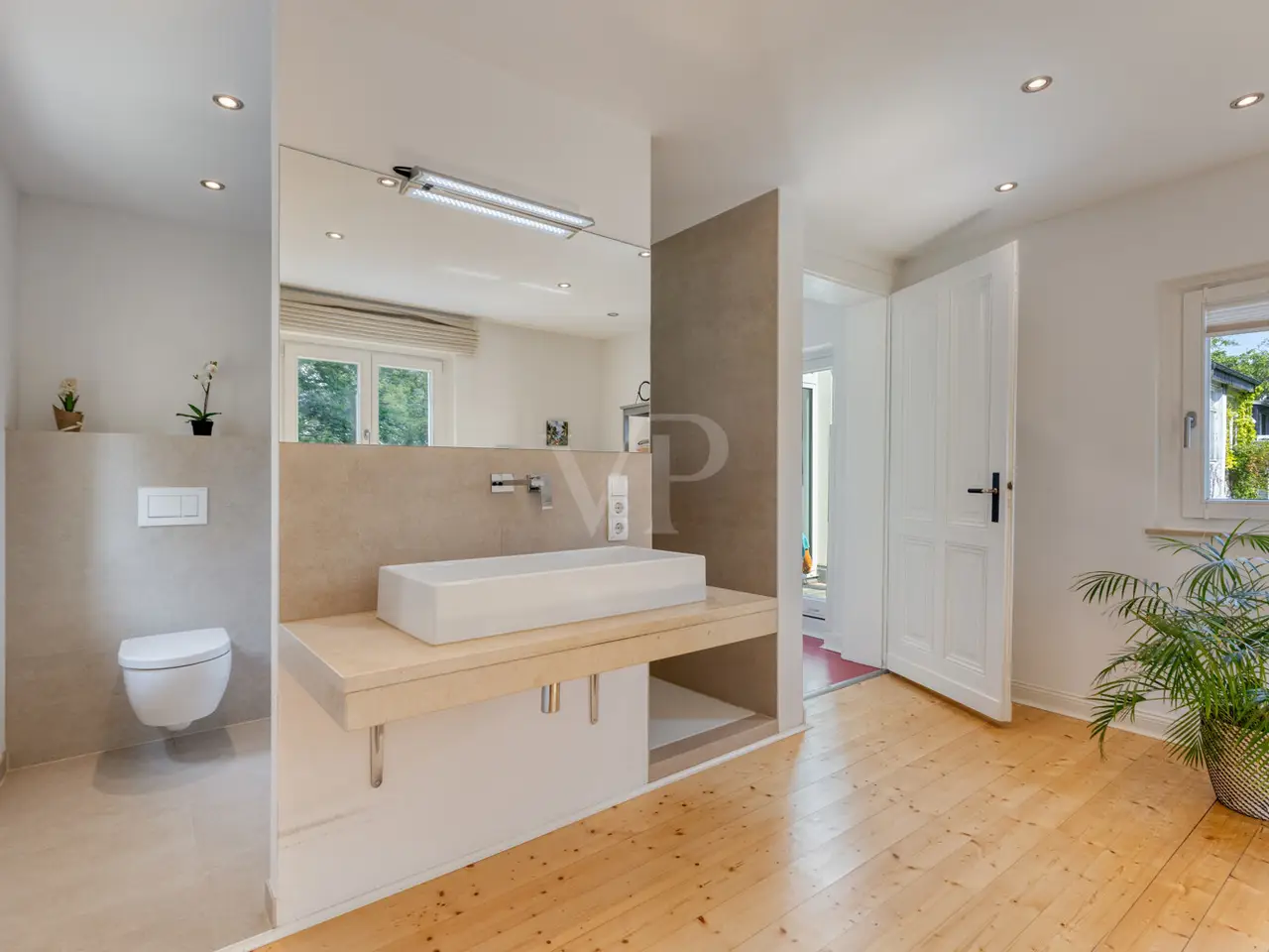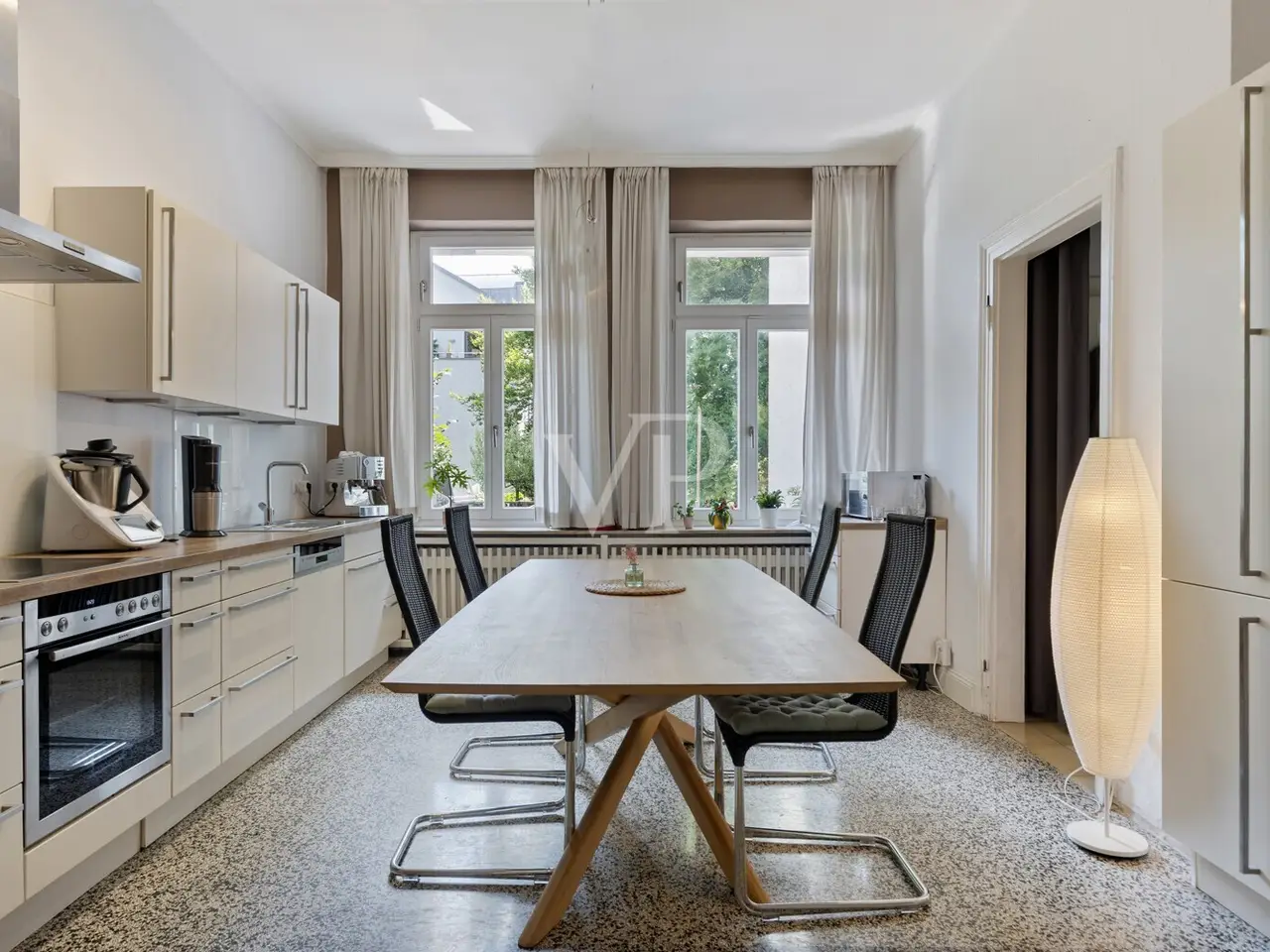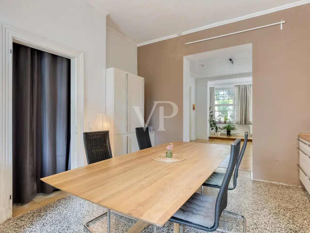 This attractive villa, built in 1897, combines historical charm with contemporary living comfort. With a generous living space of approx. 284 m² and a total of 9 living rooms and bedrooms, the house offers numerous possibilities for individual use - whether for families, couples with space requirements or for prestigious living and working under one roof. The listed villa is situated on a plot of approx. 615 m² and was last extensively modernized in 2017. Numerous aspects of the property were renovated to a high standard, including the roof (including skylights), both bathrooms, most of the windows, the wooden floors and the characteristic terrazzo floor in the kitchen. In addition, the sewage pipes in the basement were renovated, including the associated backflow protection, so that the property is as technically impressive as it is visually. The natural stone flooring catches the eye as soon as you enter the entrance hall and creates a prestigious first impression. The original staircase and many other lovingly preserved stylistic elements underline the special character of this house. The space is spread over three floors: a total of 9 rooms allow for flexible living concepts and offer plenty of room for individual design ideas. The two modernized bathrooms impress with their high-quality fittings and timeless design. There is also a guest WC. The central gas heating ensures cozy temperatures on cool days and rounds off the energy and comfort concept. Another highlight of the villa is the spacious fitted kitchen, which impresses with modern appliances and ample storage space. It directly adjoins the terrace - a pleasant place for socializing in the open air. The well-kept garden offers many possibilities for use, whether for gardening enthusiasts, children playing or relaxing hours outdoors. The house is technically up to date. A doorbell and intercom system is installed on each floor, which increases both security and living comfort. The high-quality furnishings extend to all rooms: parquet and wooden floors in the living and sleeping areas, stylish wallpaper and paintwork as well as carefully refurbished details. This well-kept property impresses with its successful combination of historical architecture and comprehensive modernization. It offers discerning residents contemporary living with a special flair - combined with the certainty of moving into a house with substance and history. If you value spaciousness, timeless stylistic elements and high-quality fittings, this villa is a convincing choice. If you have any questions or would like to arrange a viewing appointment, please do not hesitate to contact our team.