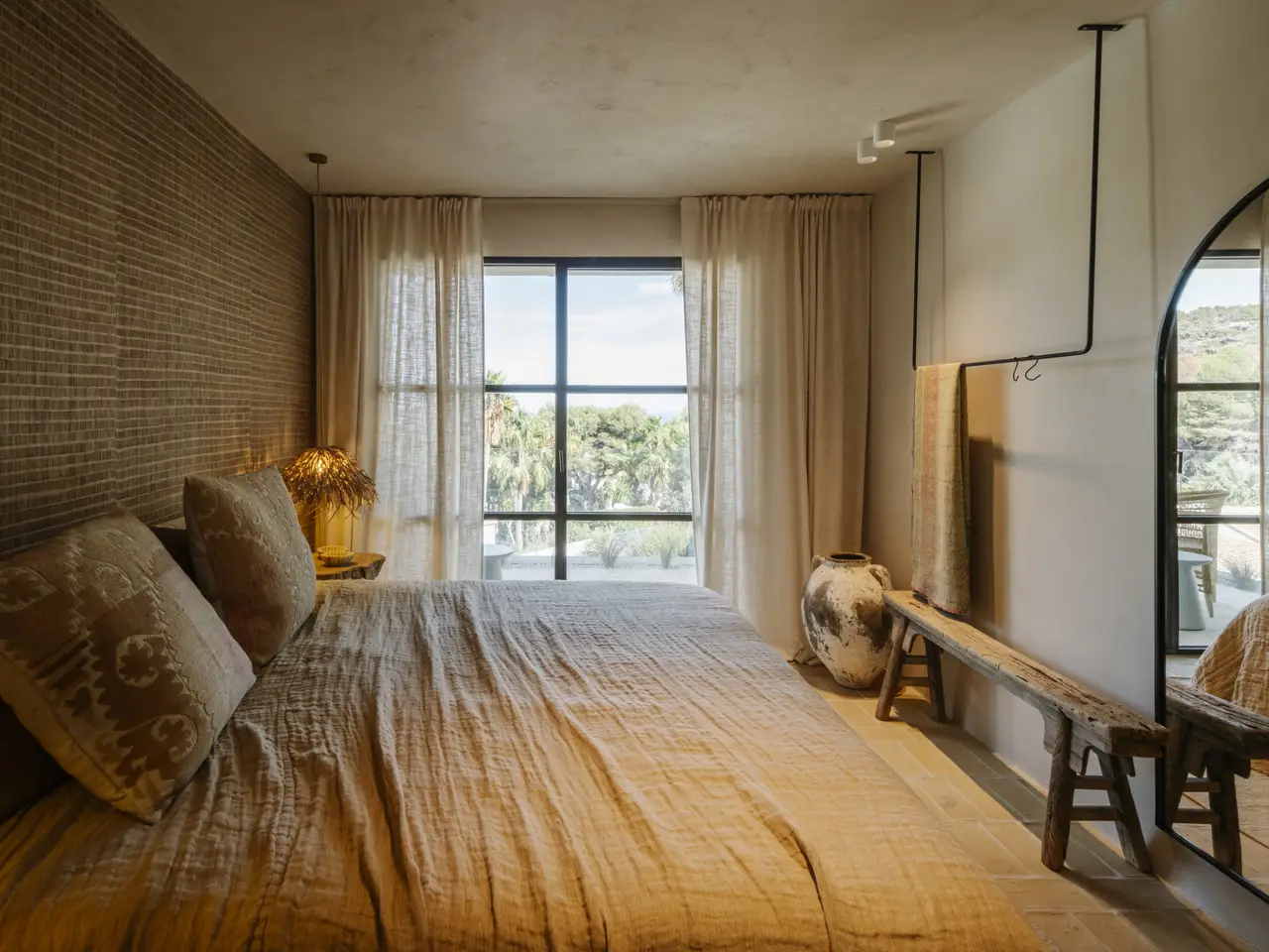 Garrofer House with four bedrooms with bathroom and guest toilet, including a separate apartment with private garden complete with a charming Alberca, a fountain style pool. The villa has an infinity pool, outdoor barbecue and lift. The house has stunning sea views and several climate control systems, including air conditioning through ducts, ventilation, solar panels, and an electric charger for bicycles and bicycles and cars. It also has a closed garage for a car. This elegant villa is designed for both entertainment and relaxation, as the open and airy spaces flow perfectly.