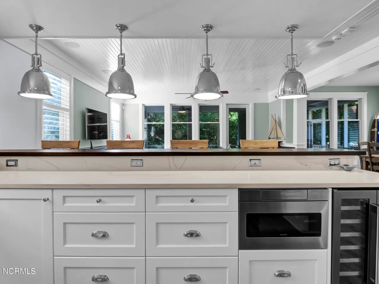 Welcome to 15 Surfboat Court, an exceptional home in the sought-after Keepers Landing neighborhood on Bald Head Island. Since 2015, this three bedroom, three full bath property has seen extensive upgrades, making it a true coastal retreat. The fully renovated kitchen, designed by Chris Lokey, includes a Thermador 6-burner stove, Bosch appliances with professional handles, a custom vent hood, and Restoration Hardware pendant lighting. A wine and beverage refrigerator, Sharp microwave drawer, and mini freezer in the pantry elevate convenience. The home's transformation continues with a brand-new roof installed in Spring 2024, new exterior siding, and fresh paint inside and out. All bathrooms have been fully updated with Kohler fixtures, designer lighting, and luxurious new towels. Thoughtful details include custom TV cabinets in each bedroom, a new king-size Pottery Barn bed, and surround sound in the living area with a Denon receiver for added entertainment. Enjoy peace of mind with a new tankless water heater, a recently replaced washer and dryer (2021), and a new upstairs HVAC system (2020). A 6-seater golf cart, new in 2020, offers convenient island transportation. Outside, a custom-built dining table invites you to enjoy meals in the coastal breeze. With a history of never being rented, this home has been carefully maintained for private enjoyment. Located in Keepers Landing, you're surrounded by Bald Head Island's tranquil beauty, with convenient access to all the island has to offer including the private saltwater marsh dock exclusive to Keepers Landing owners only. Experience the perfect blend of modern updates and island charm at 15 Surfboat Court. Shoals Club Membership available for separate purchase. Home conveys furnished (with noted exclusions) and with a 6 passenger golf cart.